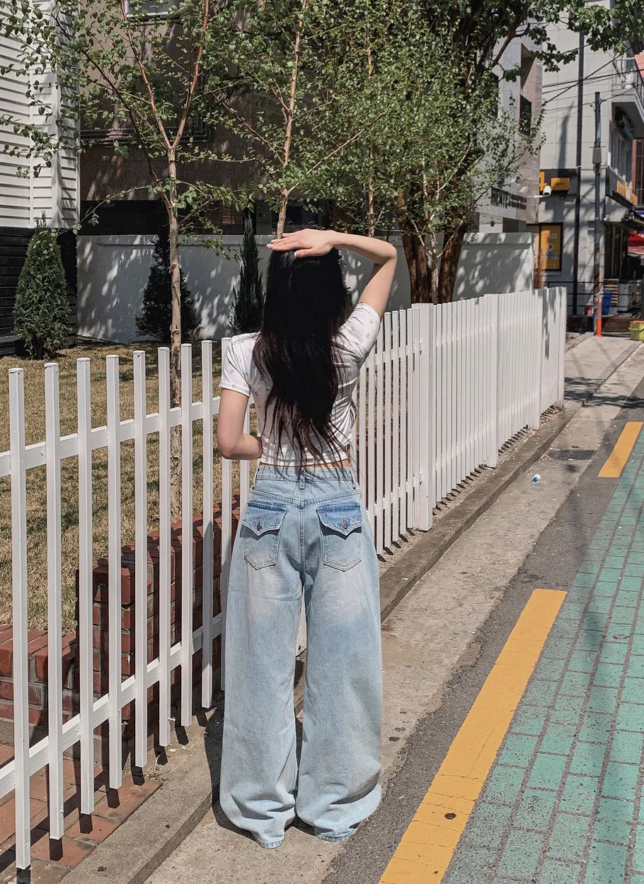 ノンフェードノンウォッシュデニムジップアップポケットローライズステッチストレートリベットワイドシークレットボタンループスナップボタンバックポケットデニムパンツ