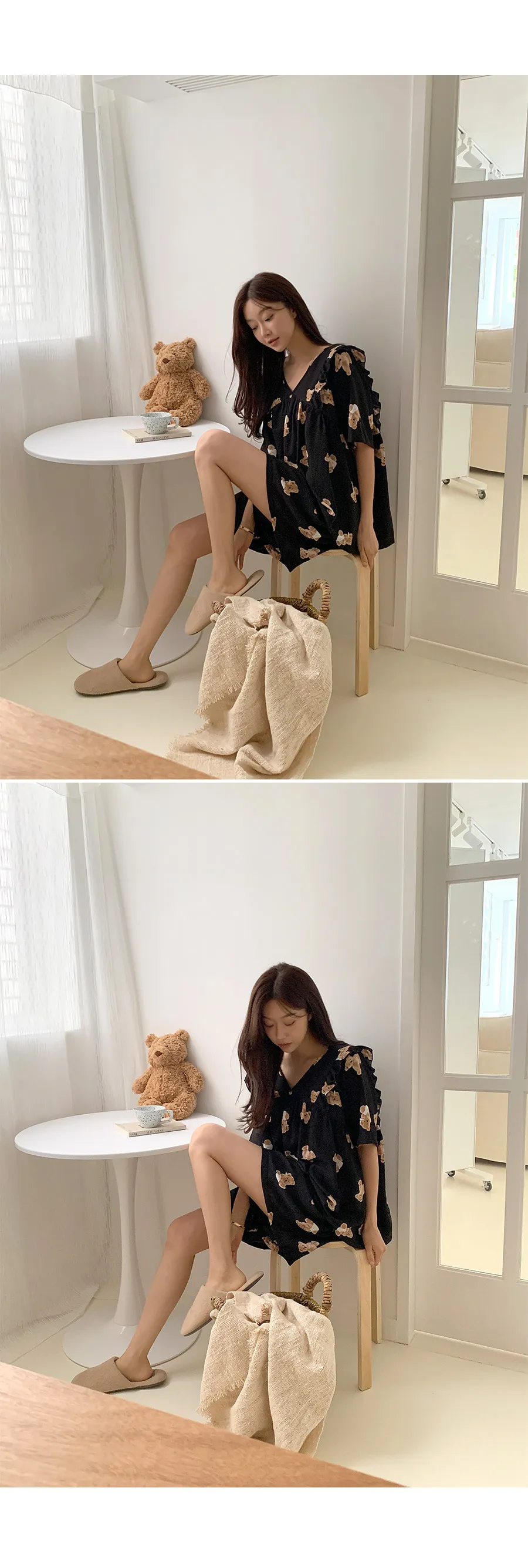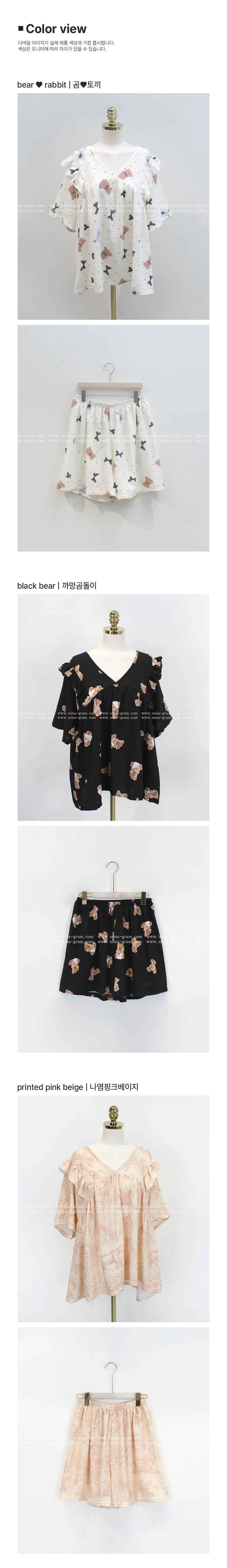 着用 : アイボリー / FREE,プリントブルー/PRINTED BLUE / FREE,PLAINPINK / FREE,PRINTED PINK BEIGE / FREE,까망ベア / FREE