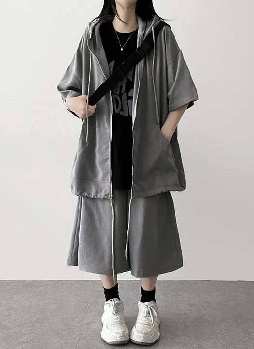 両起毛フードオーバーサイズゴム長袖カンガルーポケットドローコードドローストリングウエストゴムロングストレートバックポケットベーシック無地ツーピース(トップス、ボトムス)パーカーパンツ
