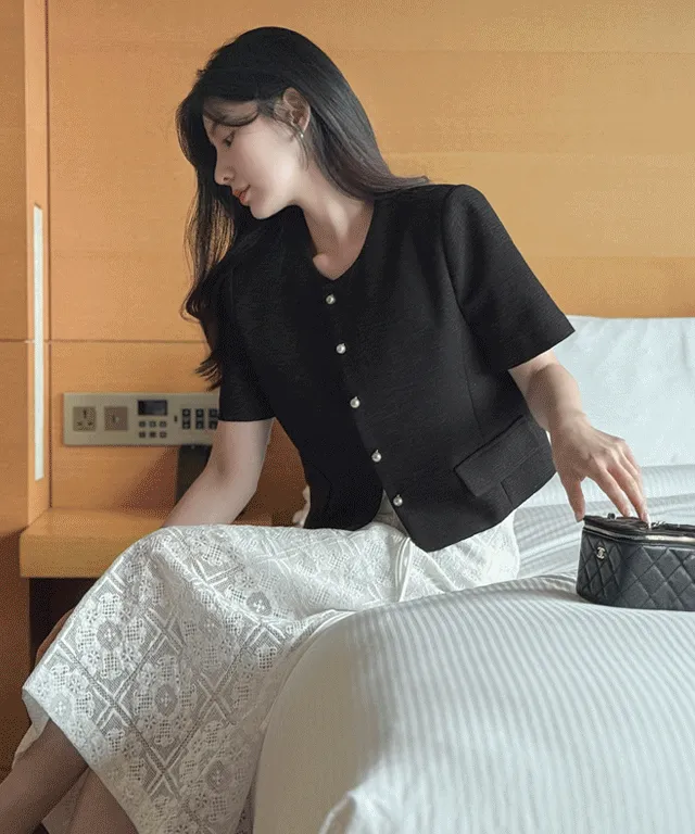 ツイード半袖パール調ボタンジャケット・S1915738