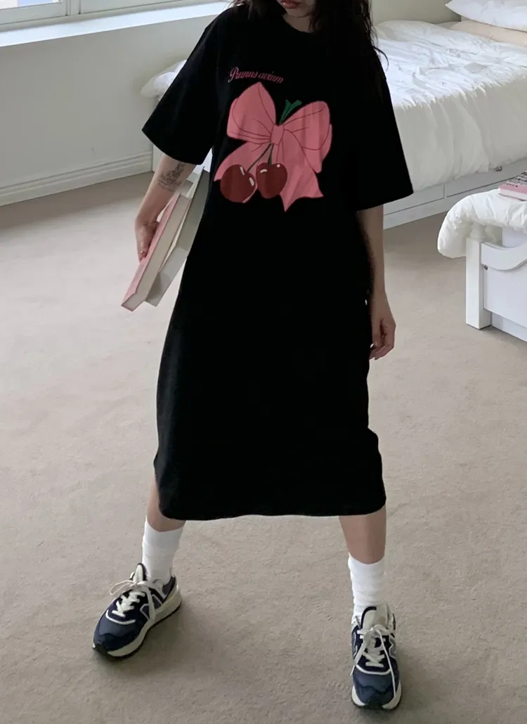 シャーリングスリット7分袖ワンピース