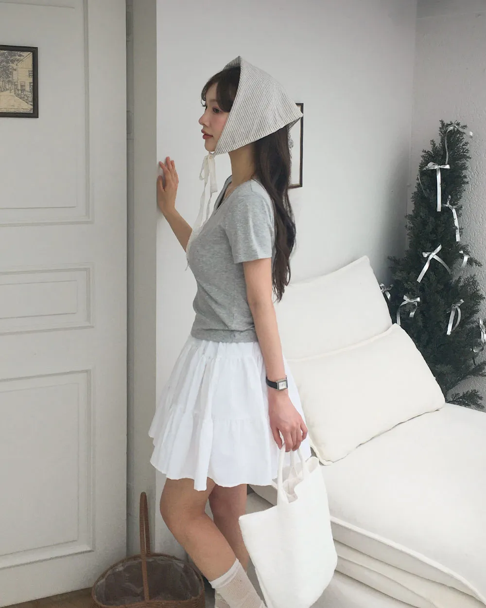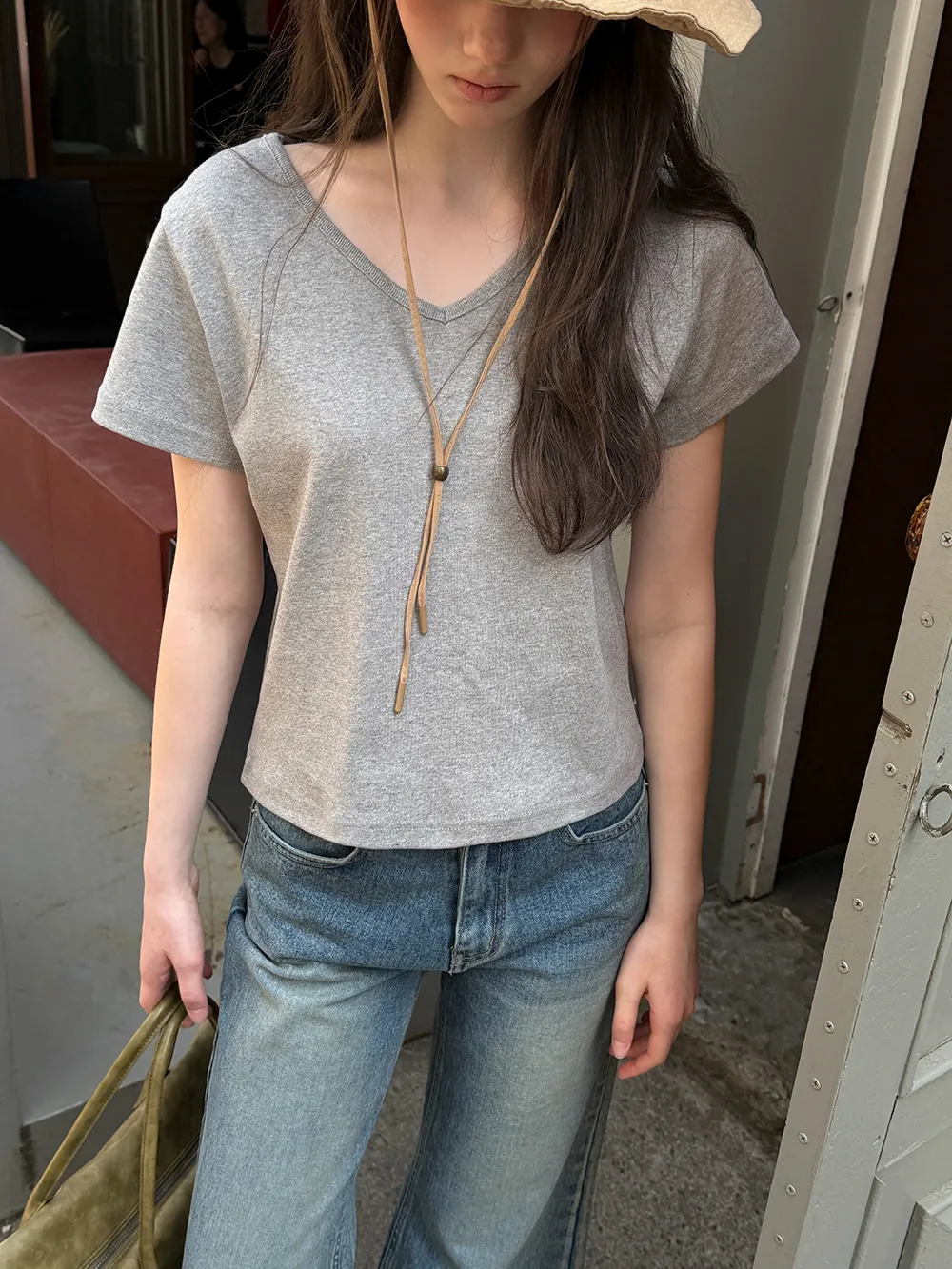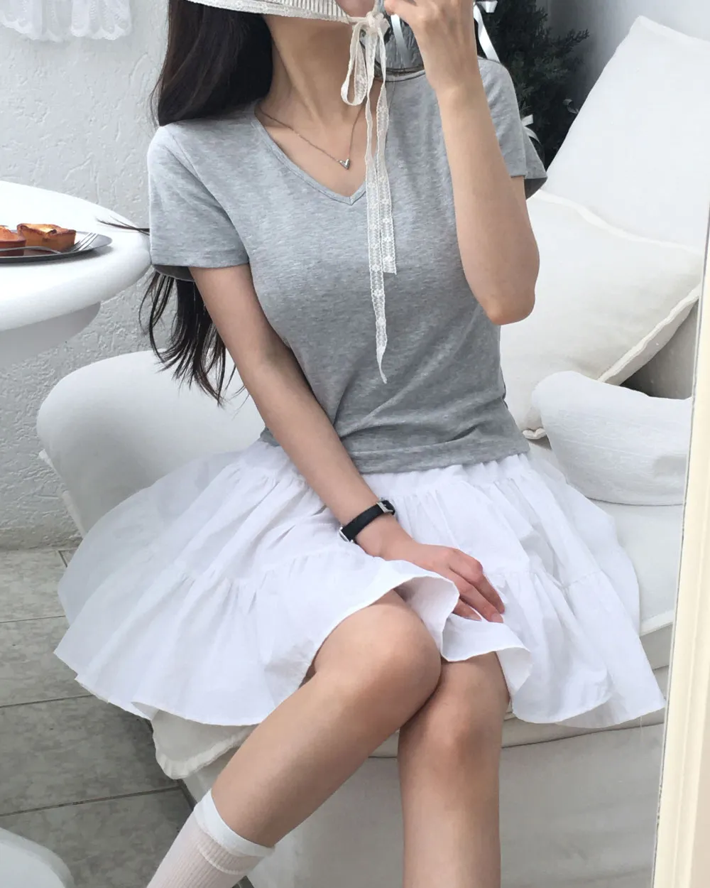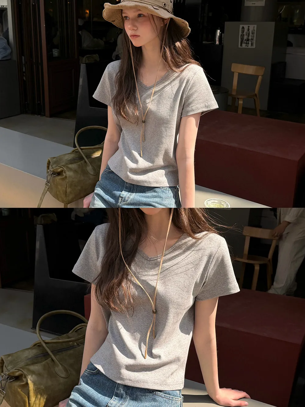 着用 : ホワイト/Uネック / 1SIZE,グレー/Uネック / 1SIZE,オートミール/Vネック / 1SIZE