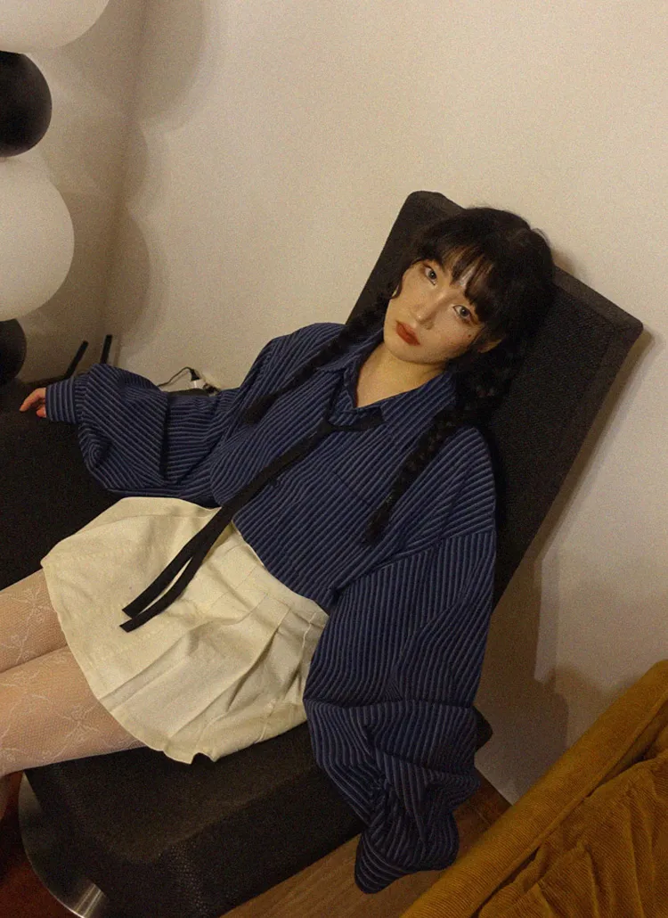 ボタンVネッククロップドスリム長袖カーディガン