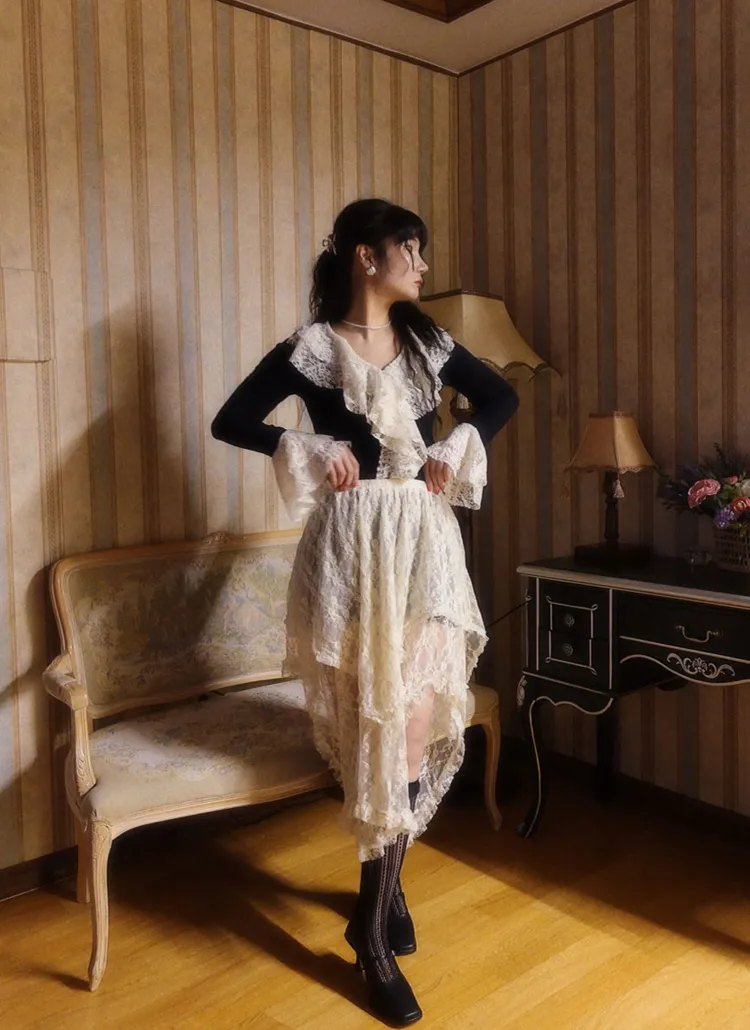 Uネックリブニットマーメイドワンピース