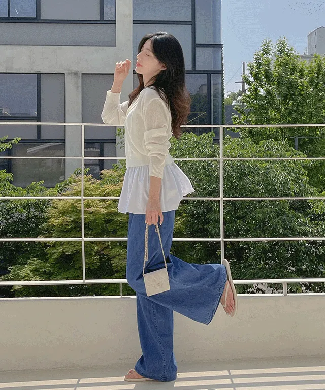 デニムベーシックショートループリベットジップアップリボン(固定)ワイドバックポケットポケットフラップポケットウォッシングディープブルーデニムパンツ[選べる丈]