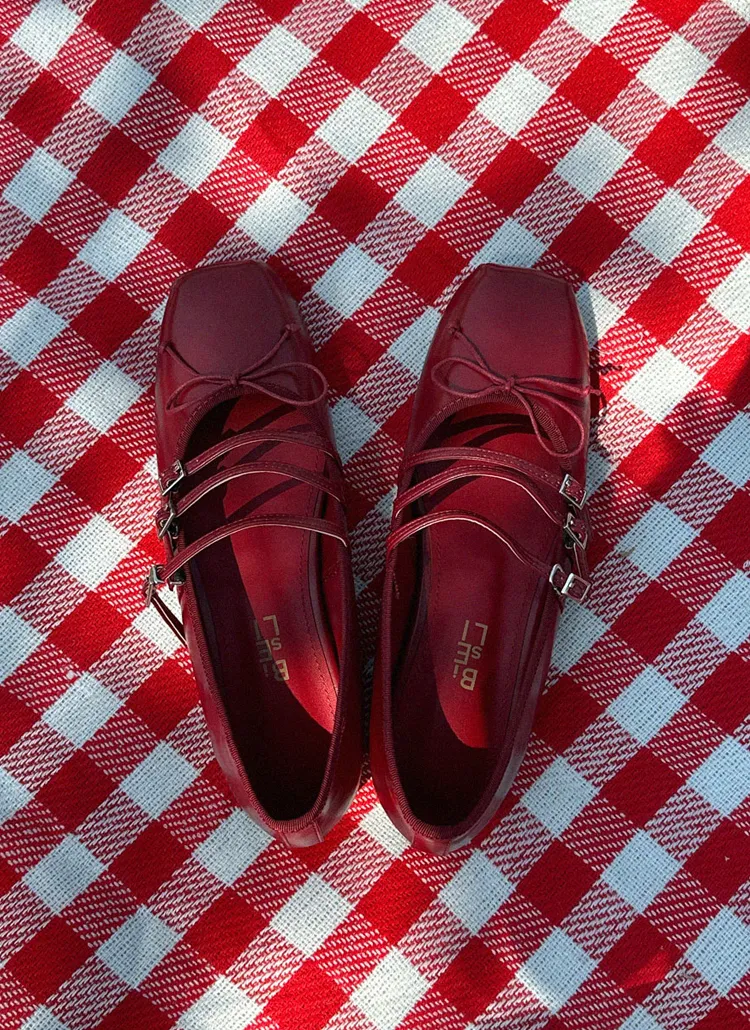 リボンバックルポイントフラットシューズ