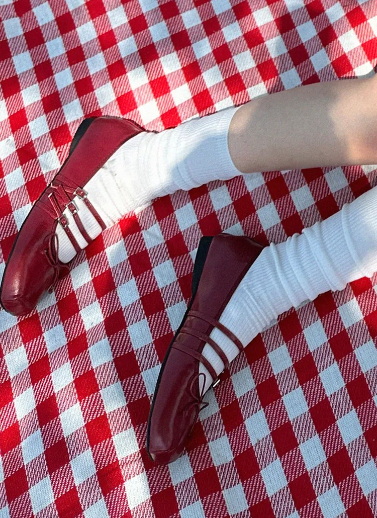 配色エナメルトゥリボンフラットシューズ