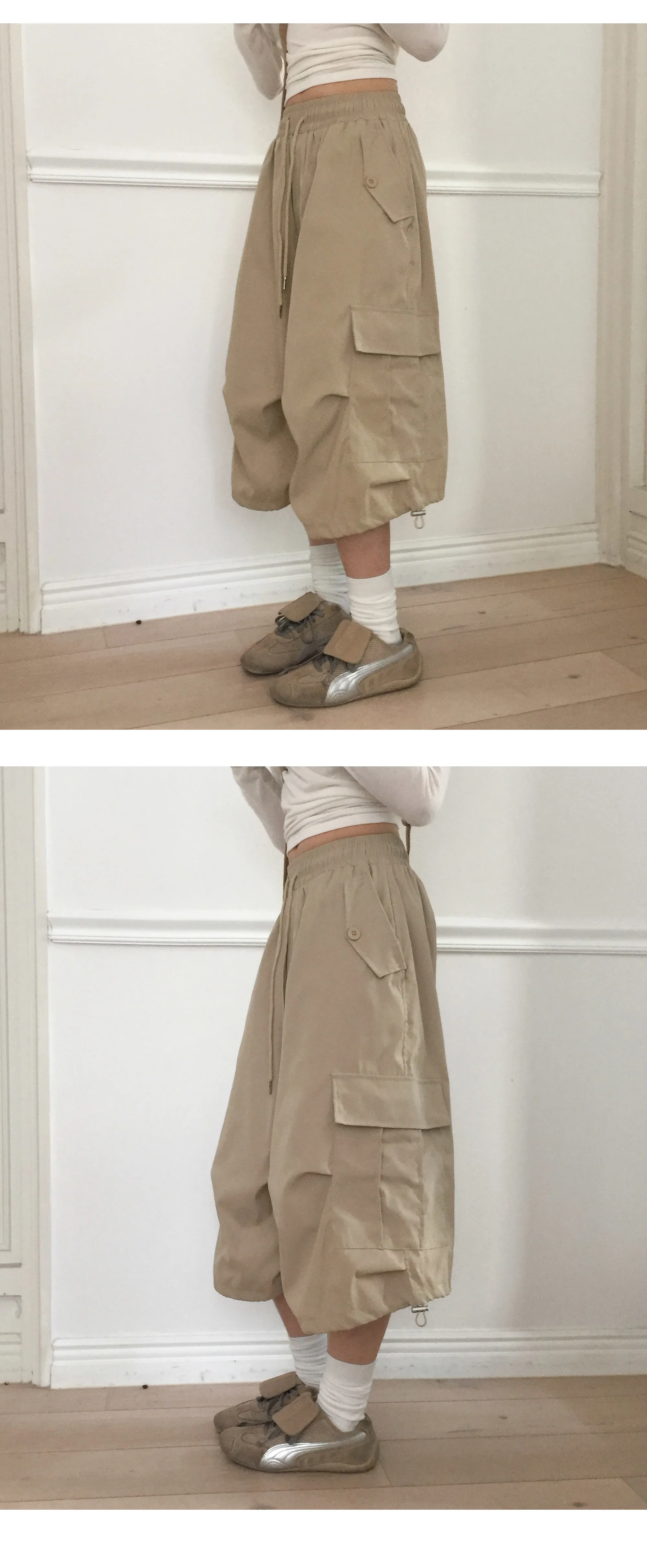 | Size | ウエスト | ヒップ | 裾幅 | わたり | 股上 | 着丈 |