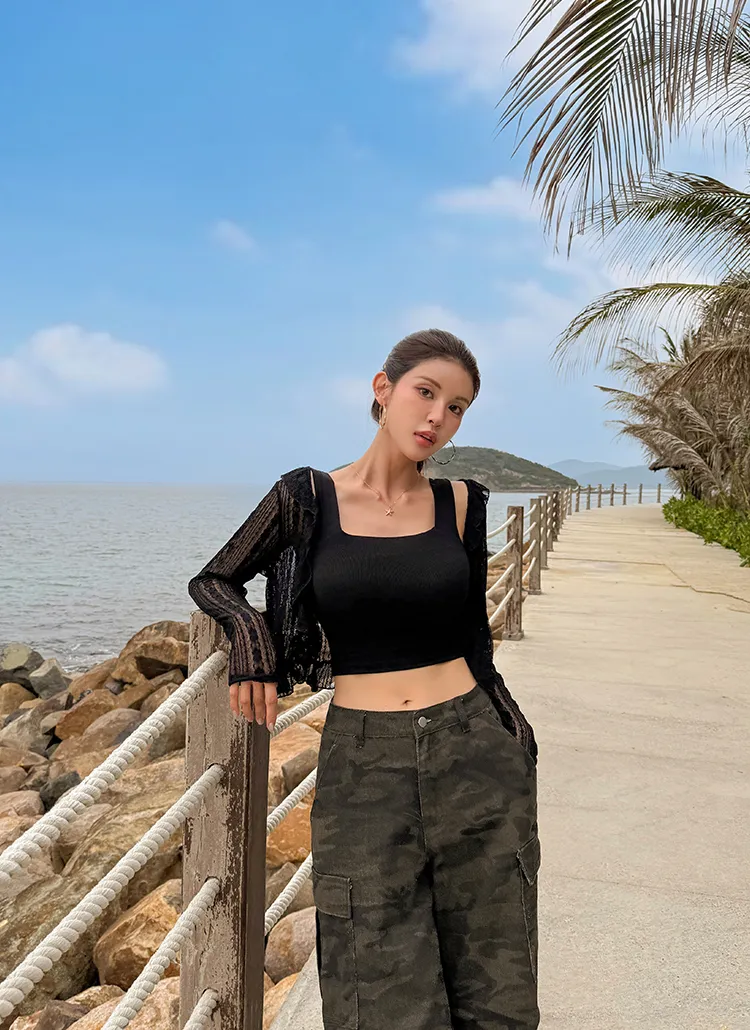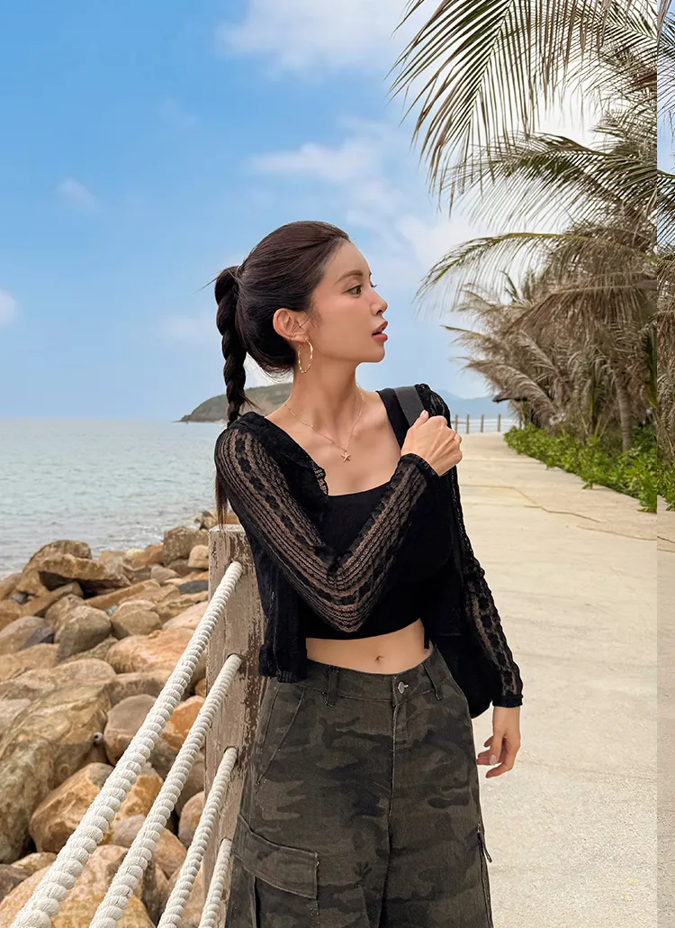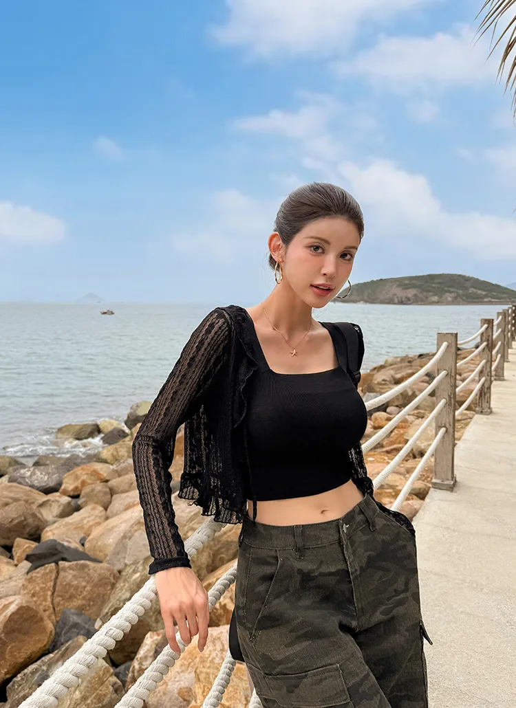 シースルーフリルクロップド長袖レースカーディガン・S1926849