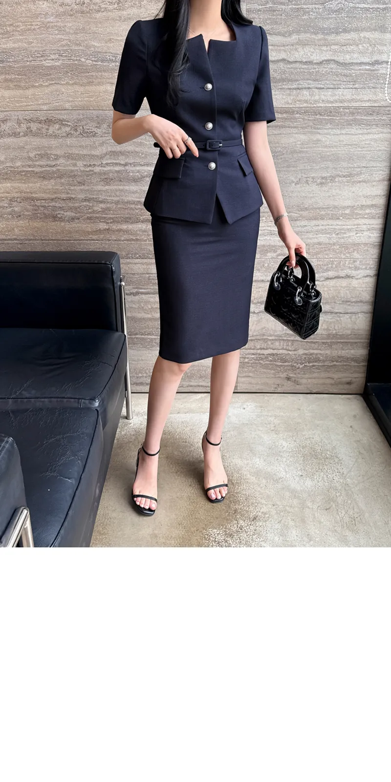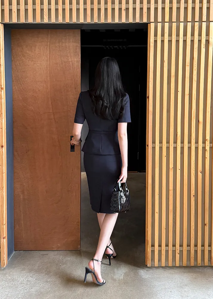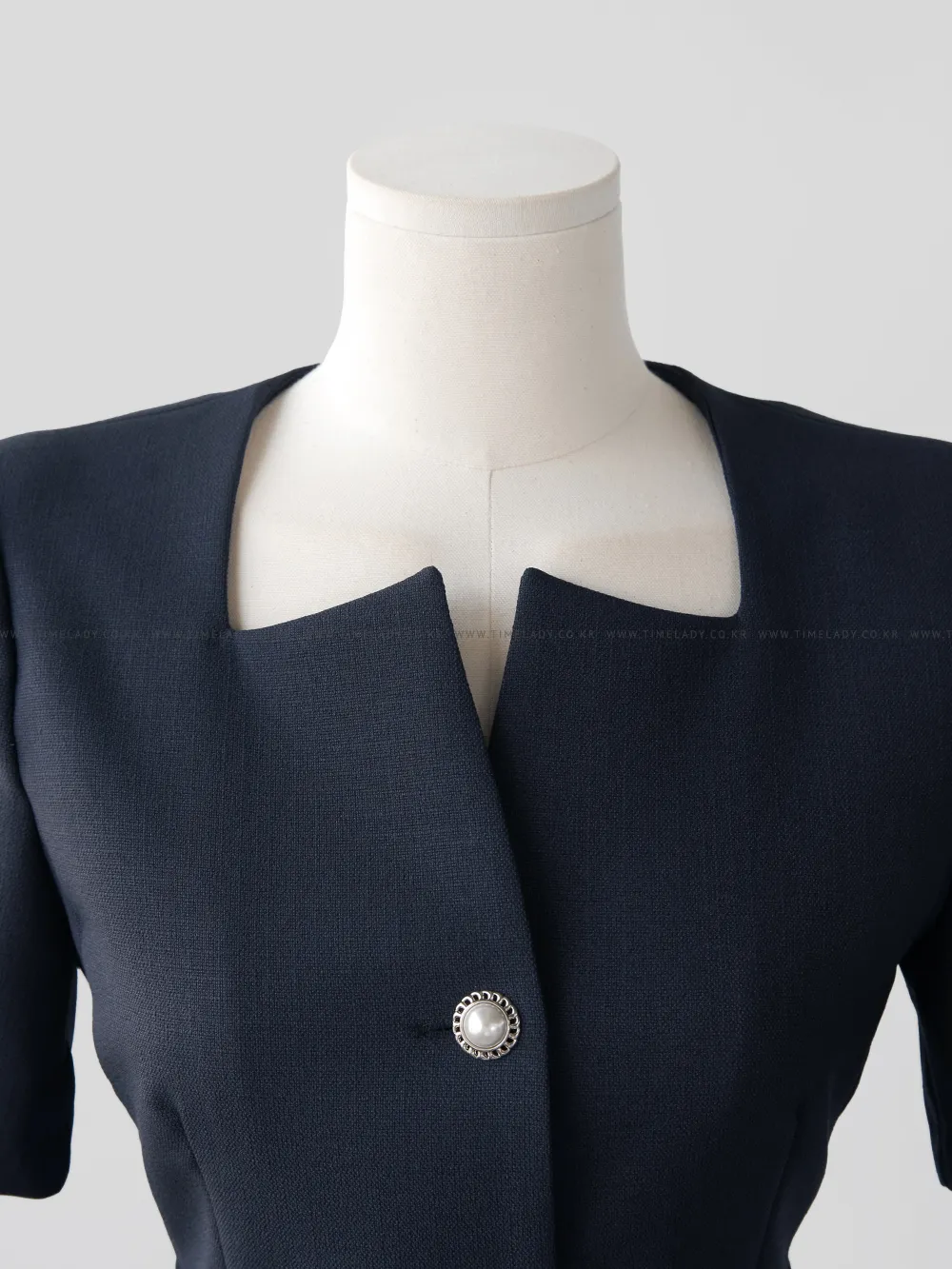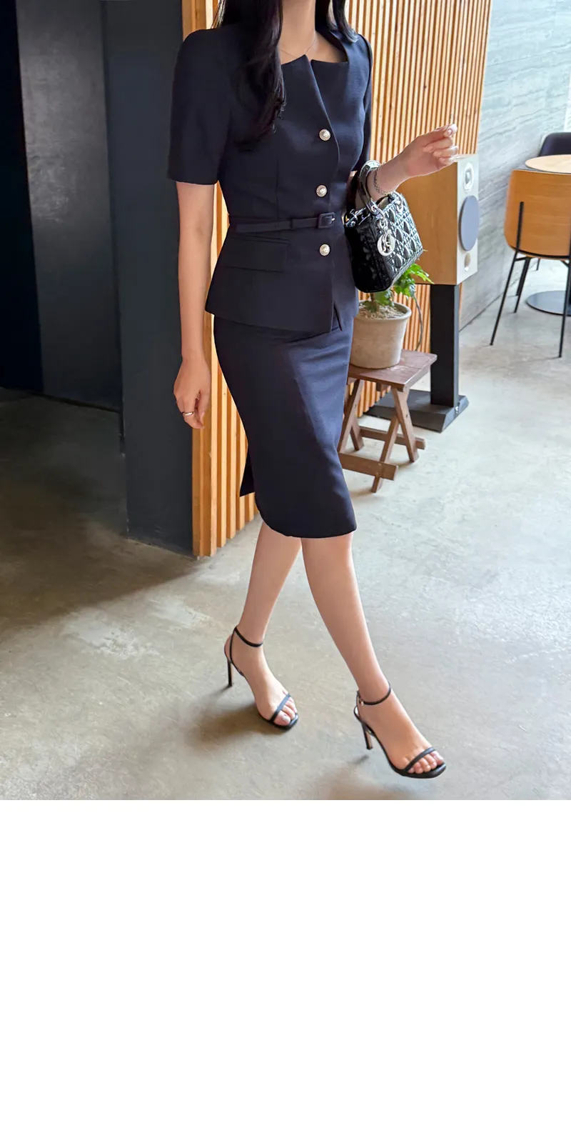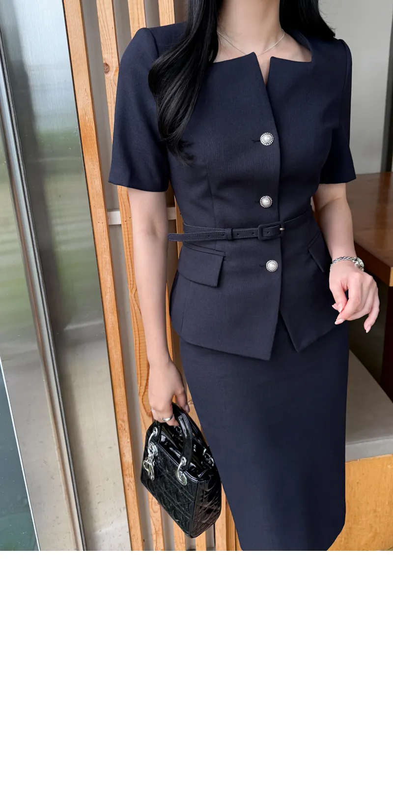 ツイードボタンラウンドネックノーカラーポケット肩パッドクロップド長袖フェイクポケットHライン(ロング丈)ヒドゥンジッパー無地ツーピース(トップス、ボトムス)スカートジャケット