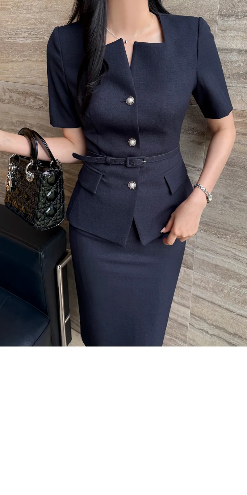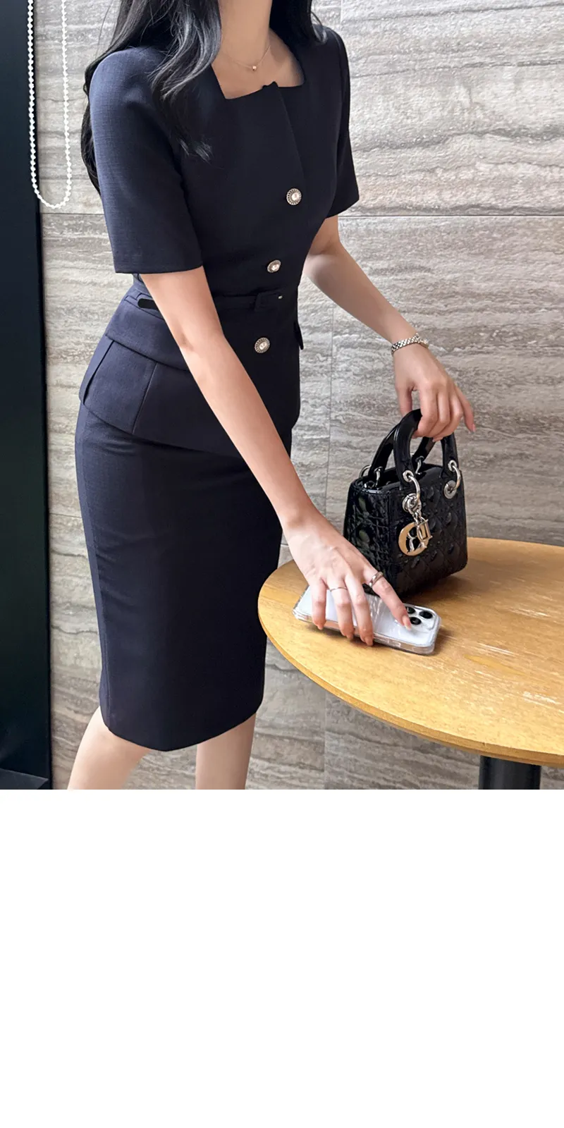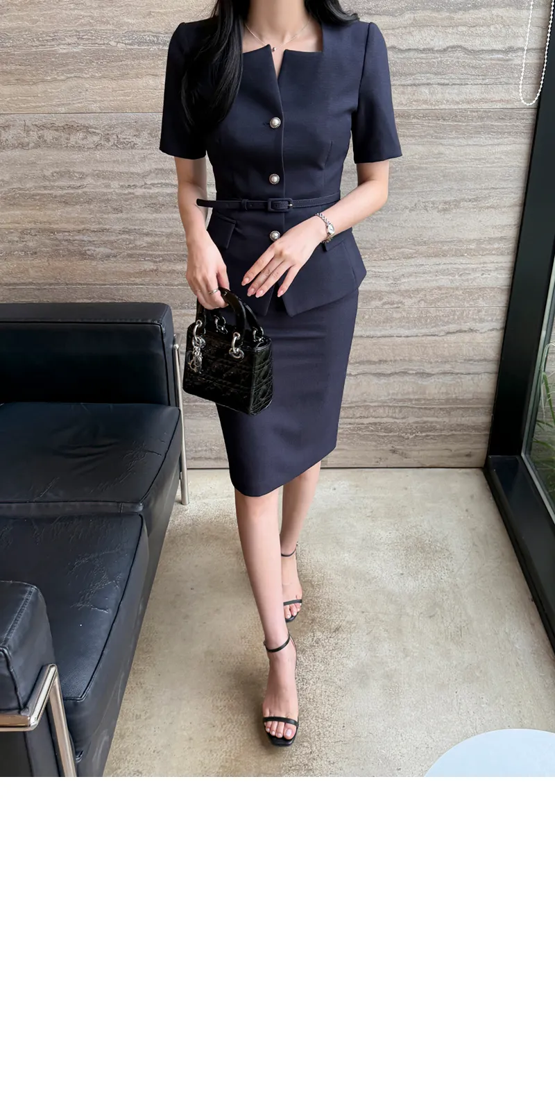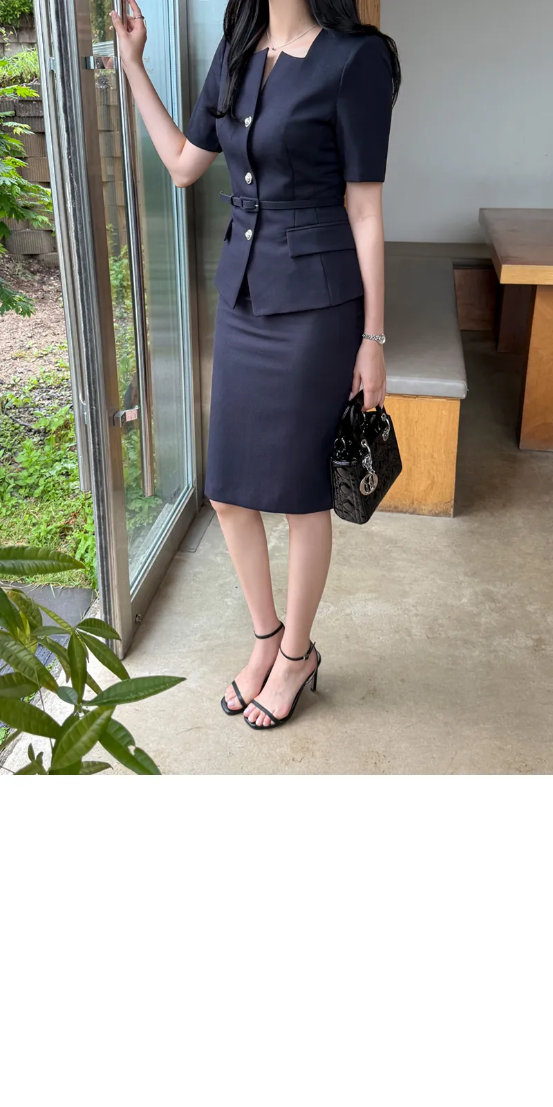 ツイードボタンラウンドネックノーカラーポケット肩パッドクロップド長袖フェイクポケットHライン(ロング丈)ヒドゥンジッパー無地ツーピース(トップス、ボトムス)スカートジャケット