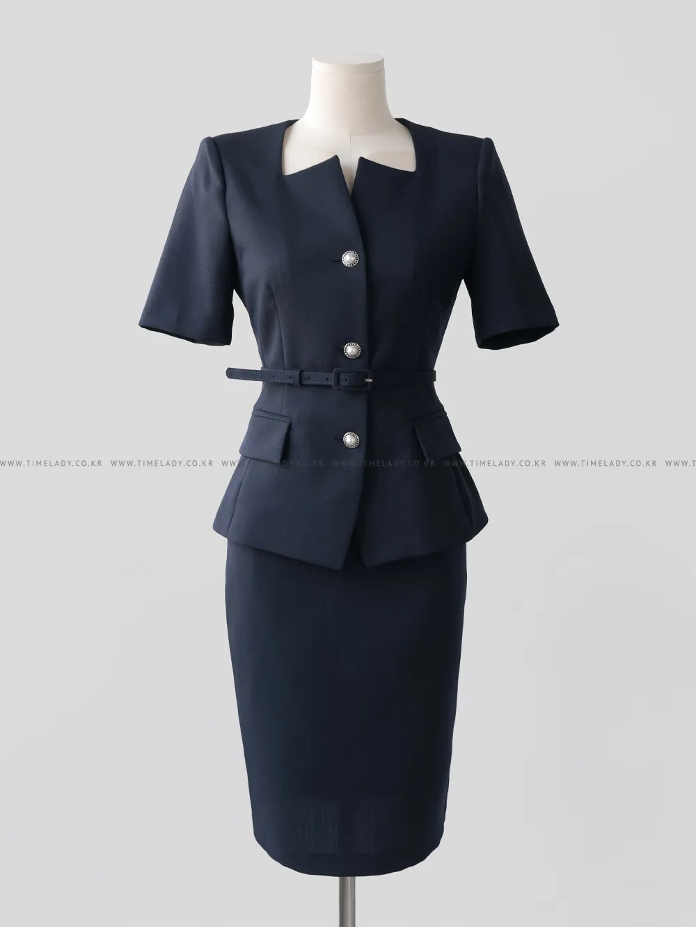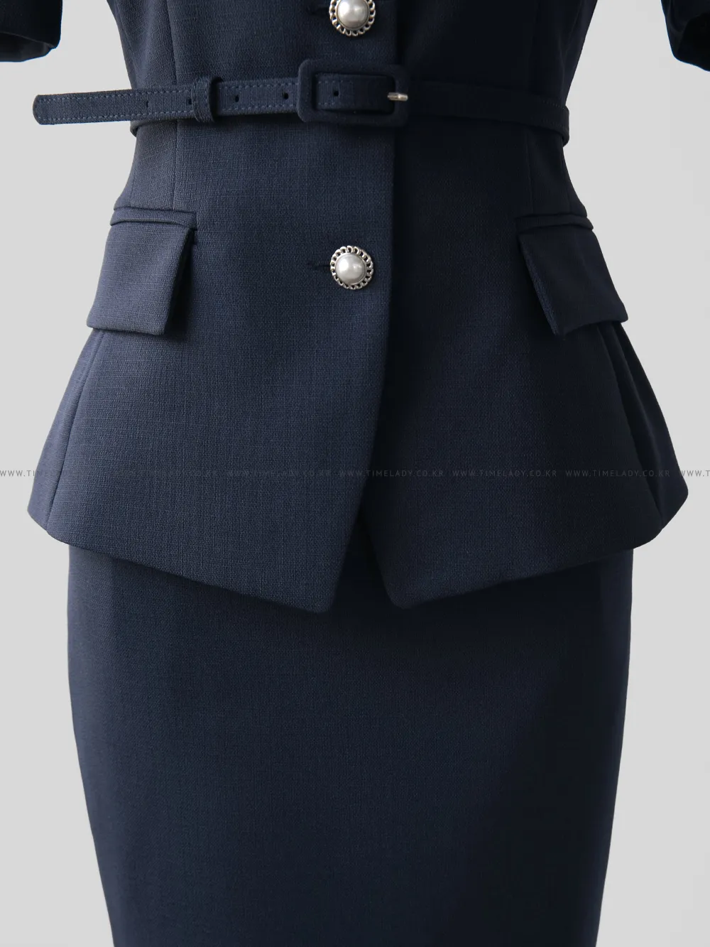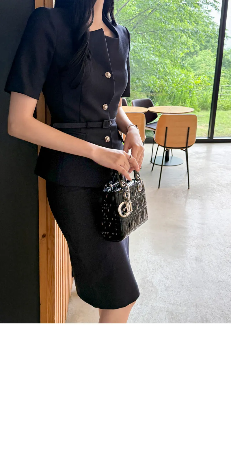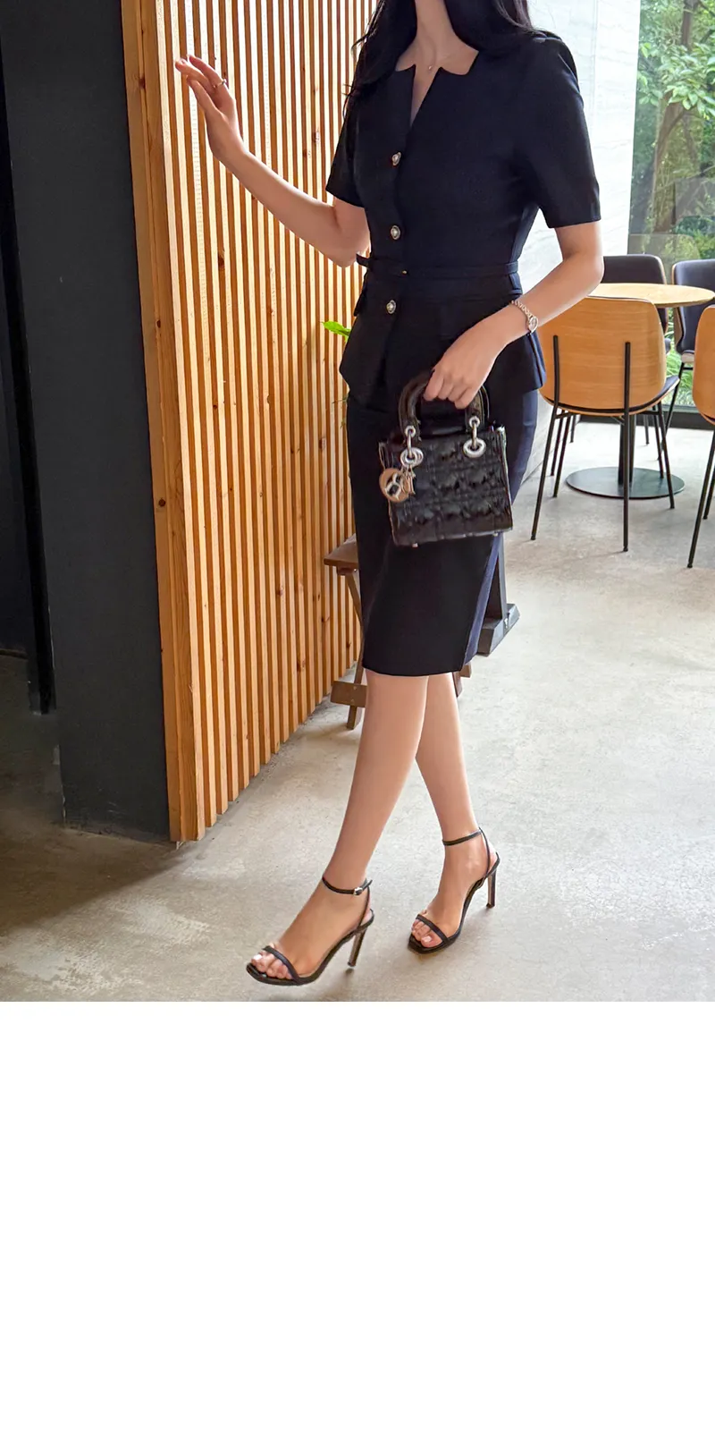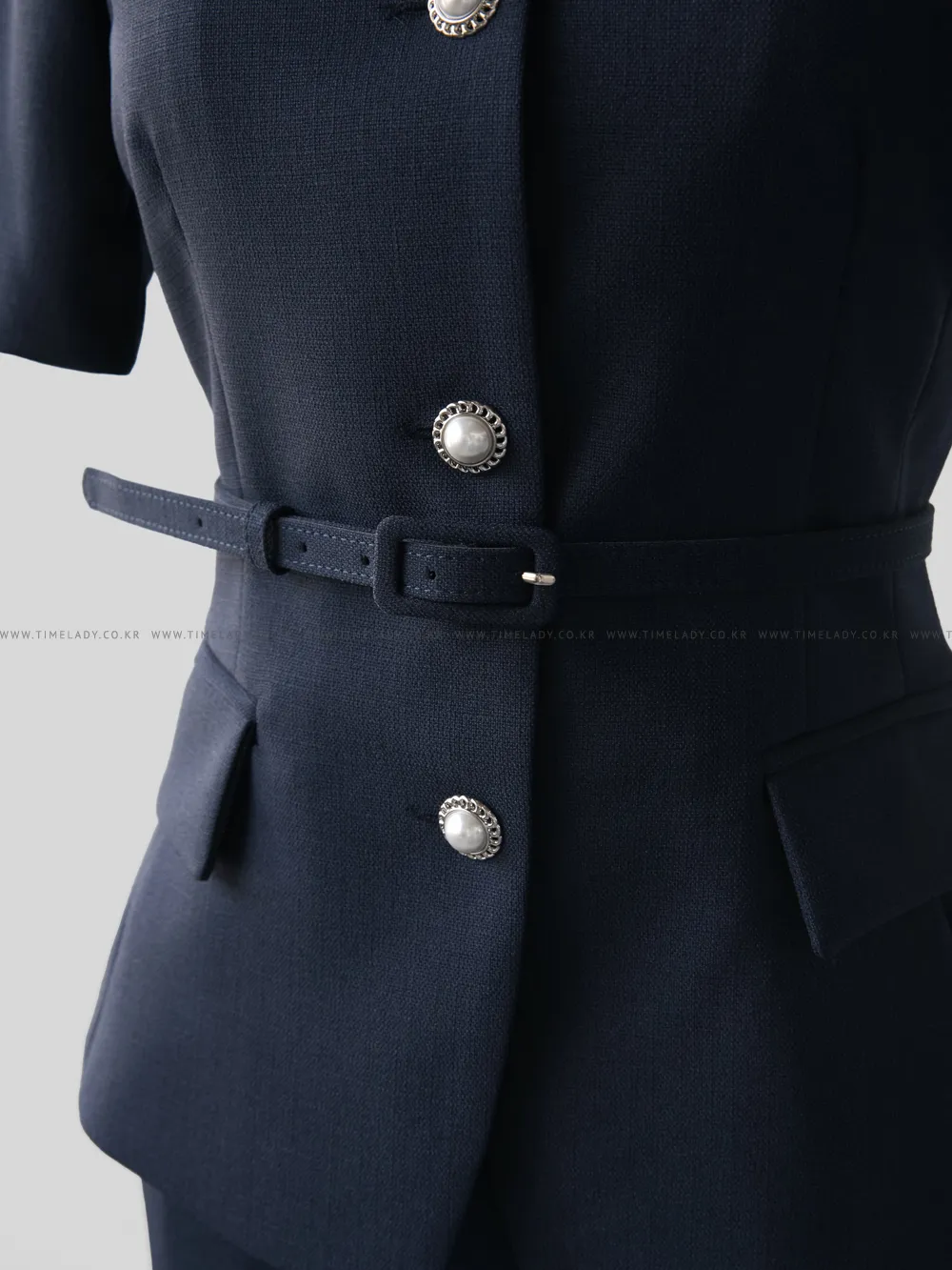 ツイードボタンラウンドネックノーカラーポケット肩パッドクロップド長袖フェイクポケットHライン(ロング丈)ヒドゥンジッパー無地ツーピース(トップス、ボトムス)スカートジャケット