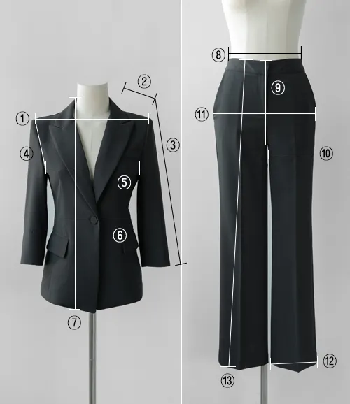 | Size | ウエスト | ヒップ | 裾幅 | わたり | 股上 | 着丈 |