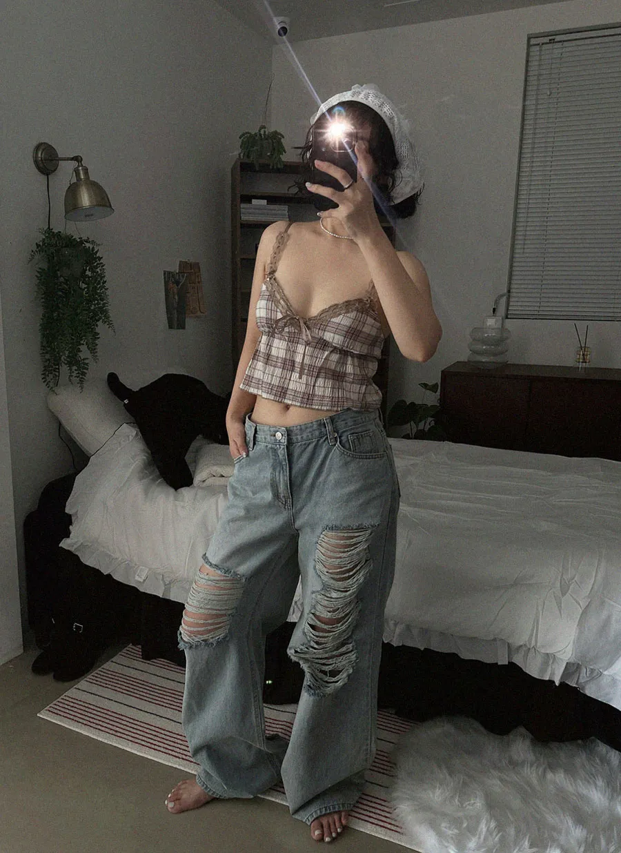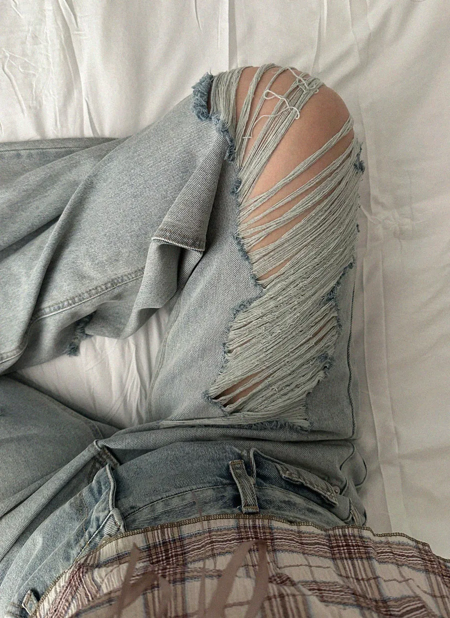 リネン混デニムジップアップバックルウォッシングポケットハイウエストウエストゴムリベットワイドループバックポケットライトブルーディープブルーデニムパンツ[選べる丈]