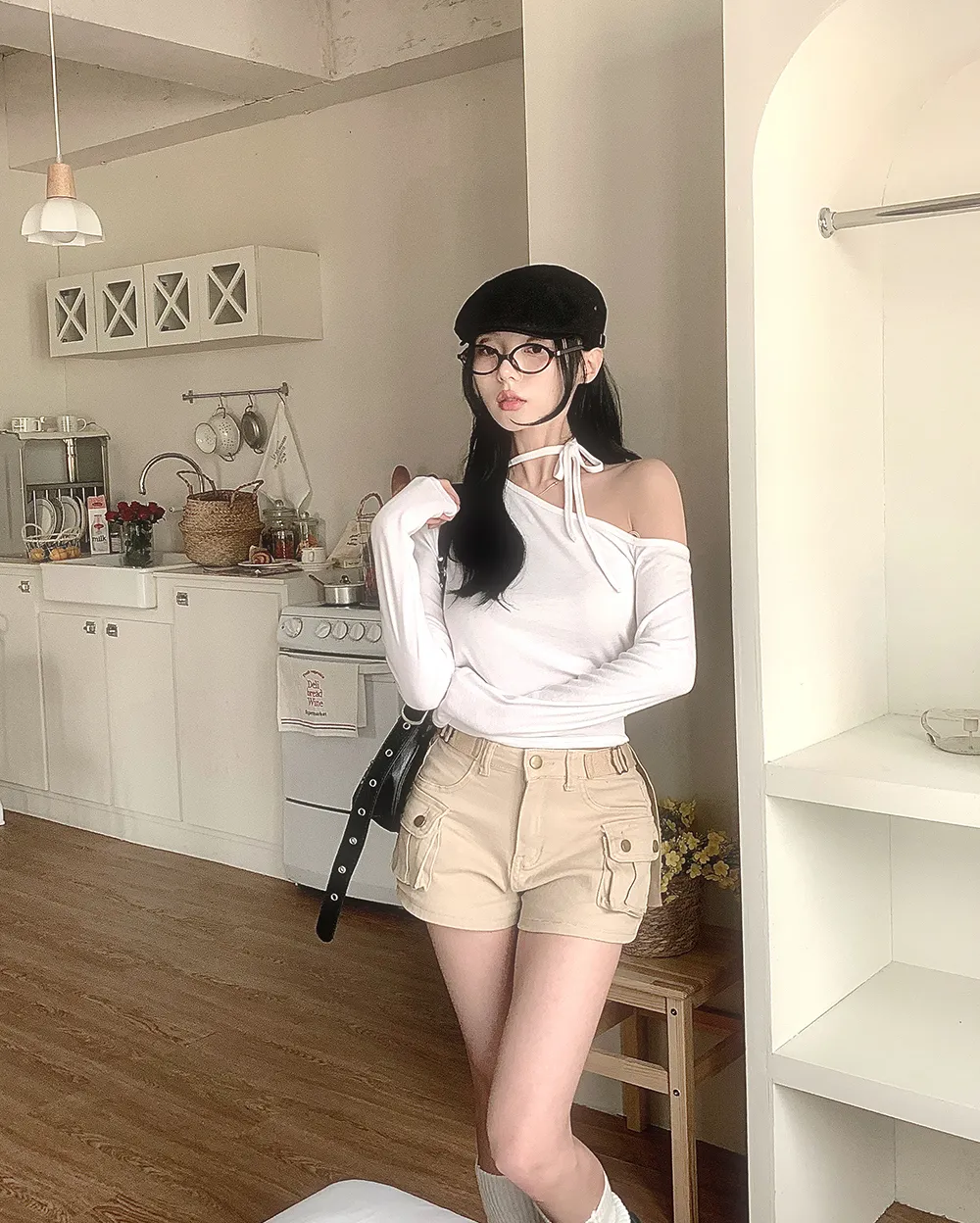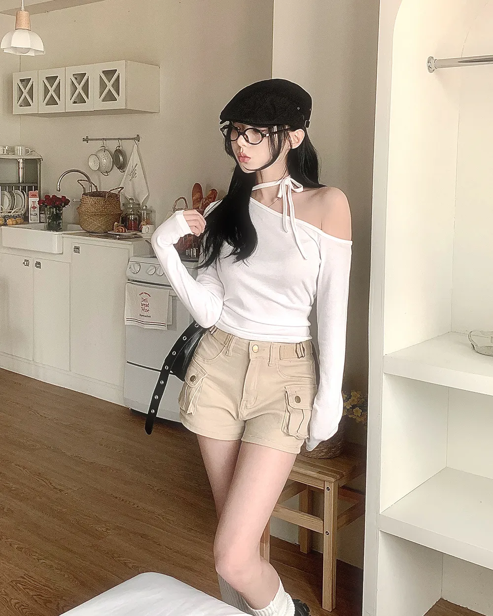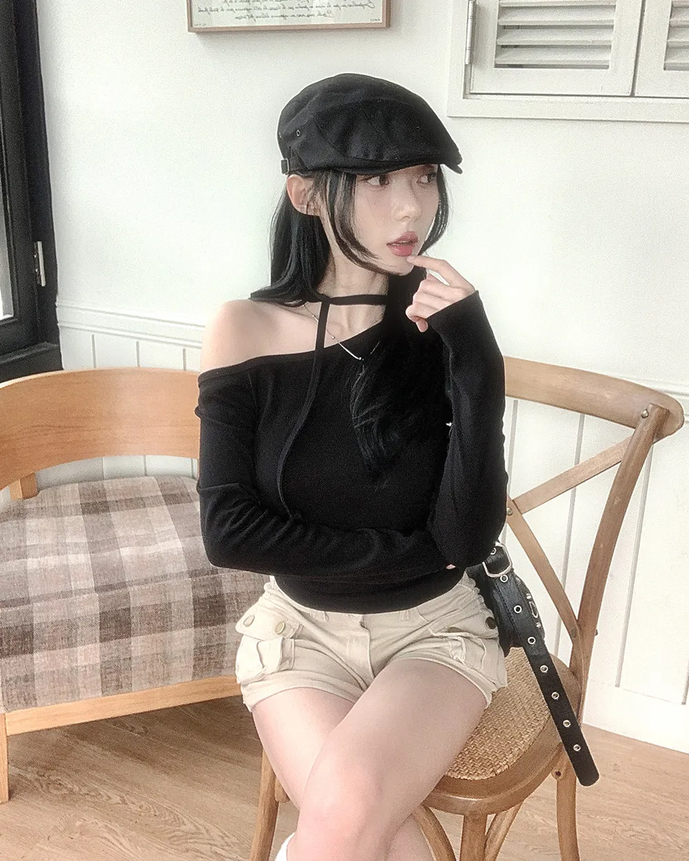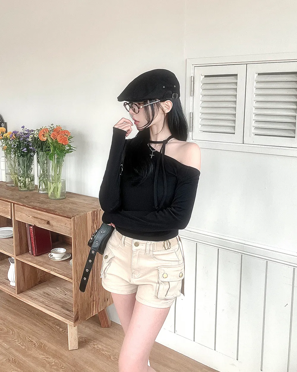 着用 : ブラック / FREE,アイボリー / FREE