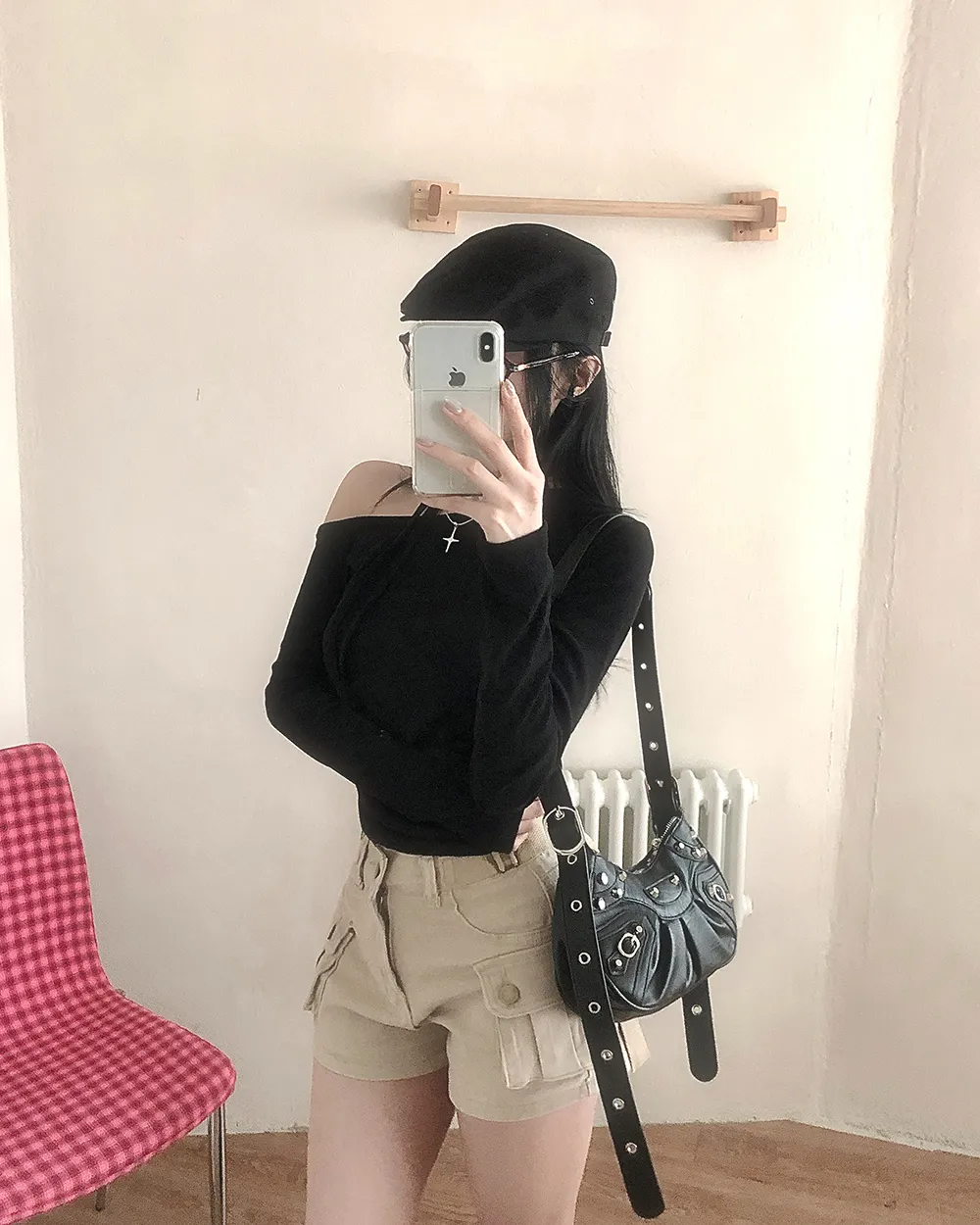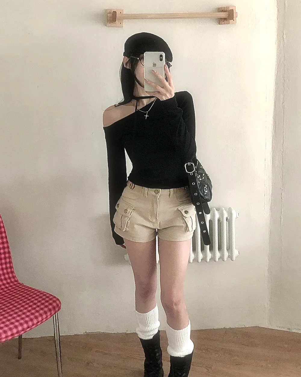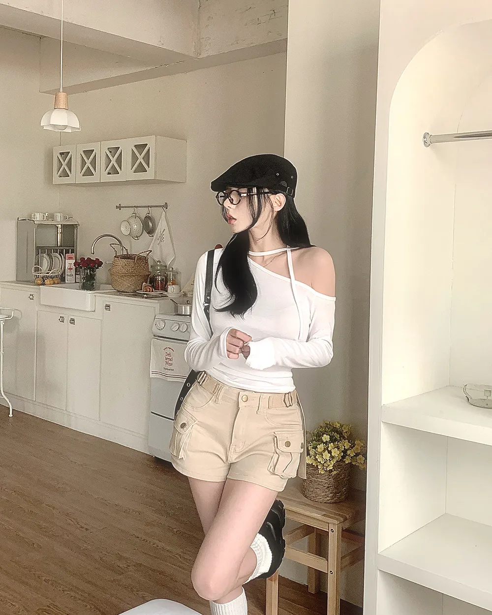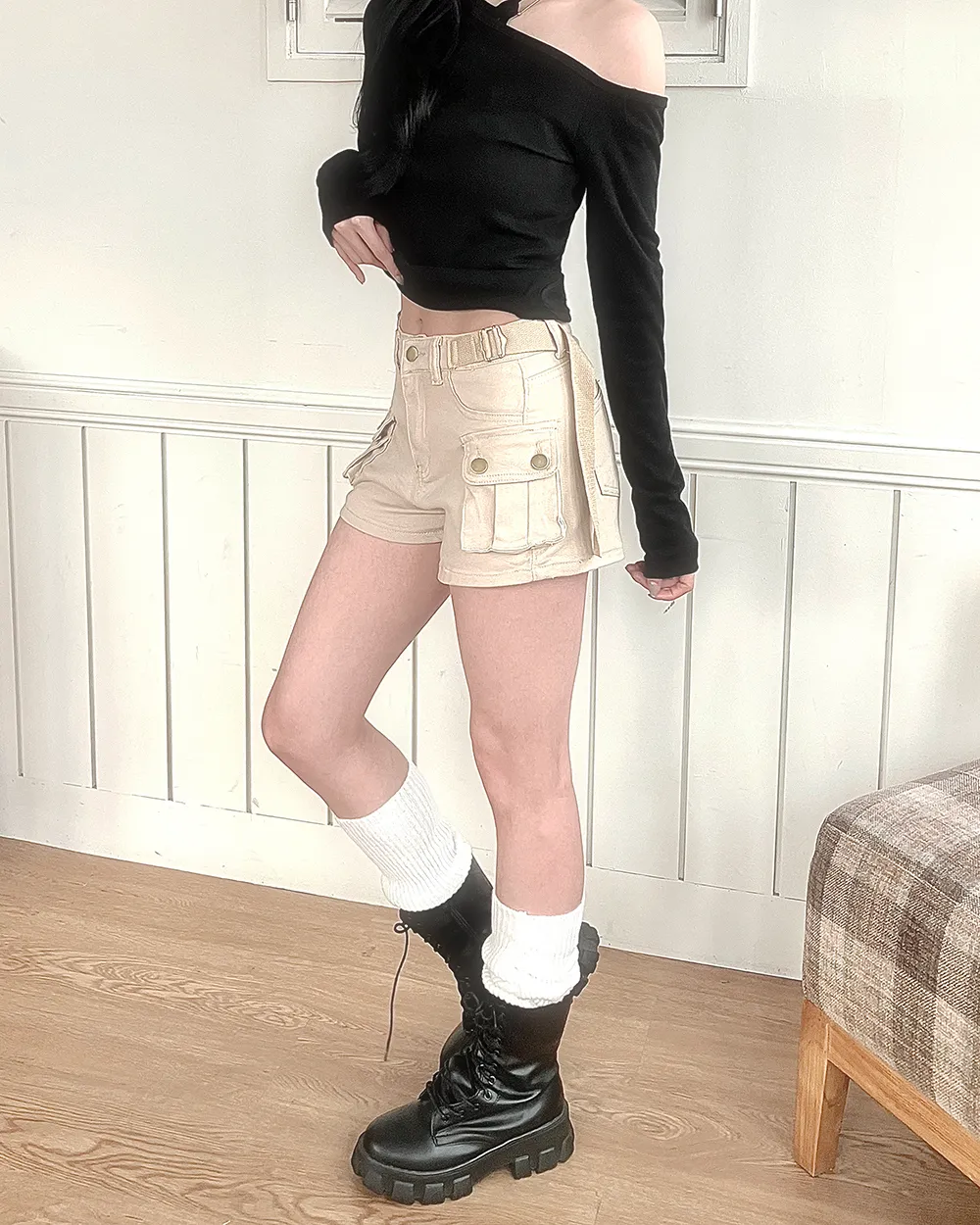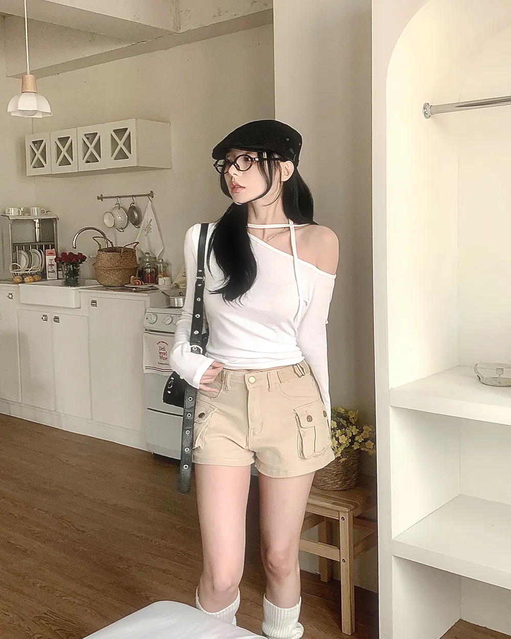 着用 : ブラック / FREE,アイボリー / FREE