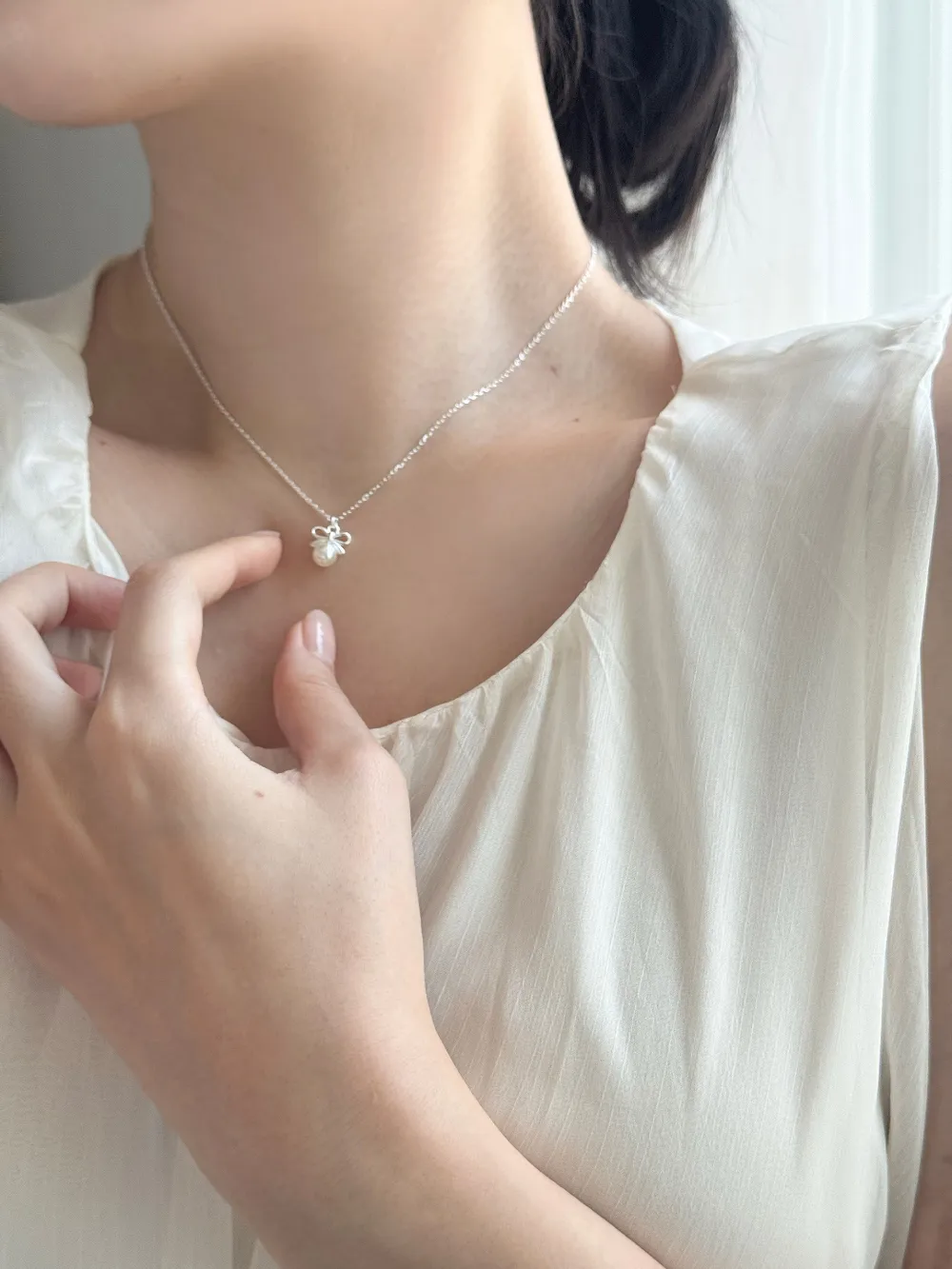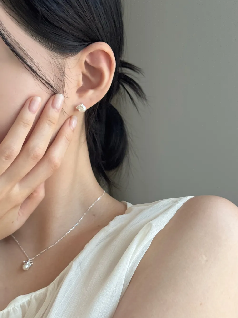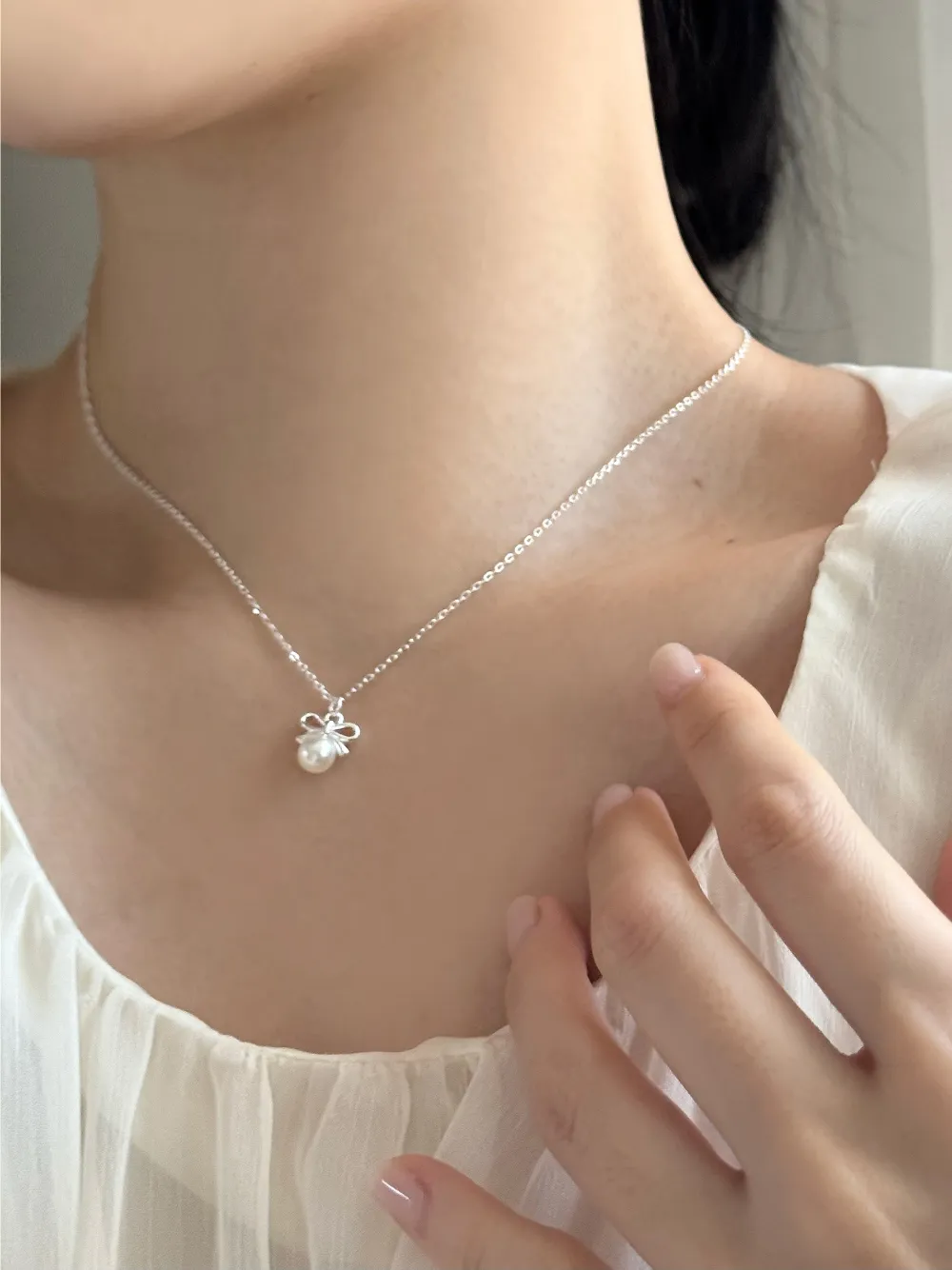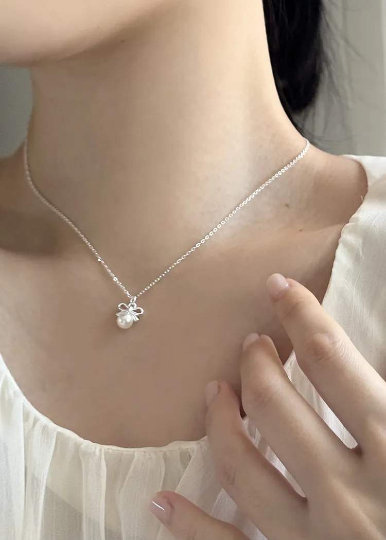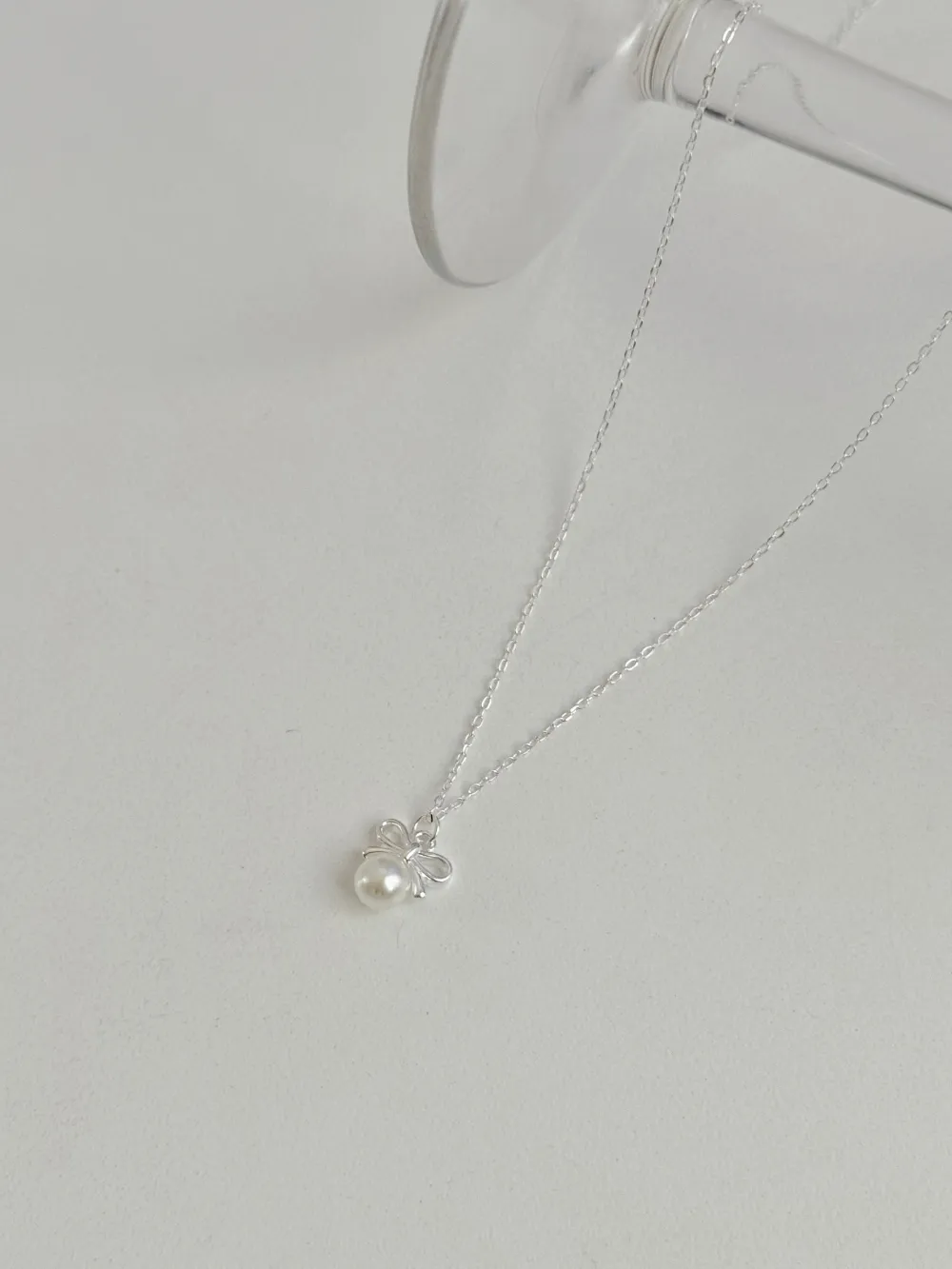 エコパールリボンレイヤードネックレス