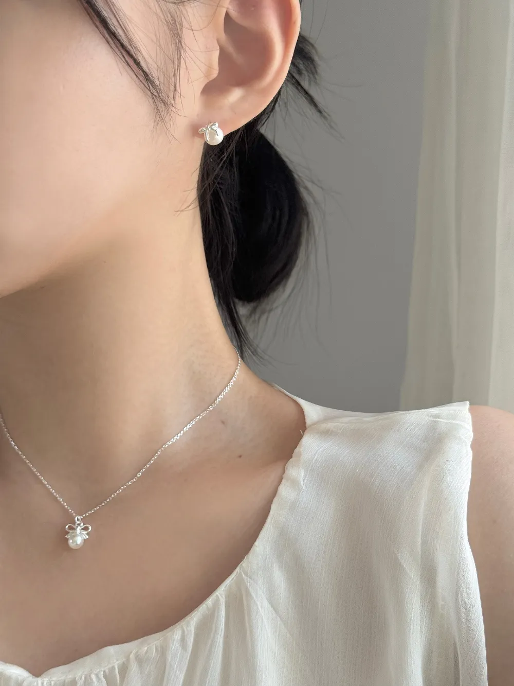 エコパールシンプルピアスネックレス・S1935228