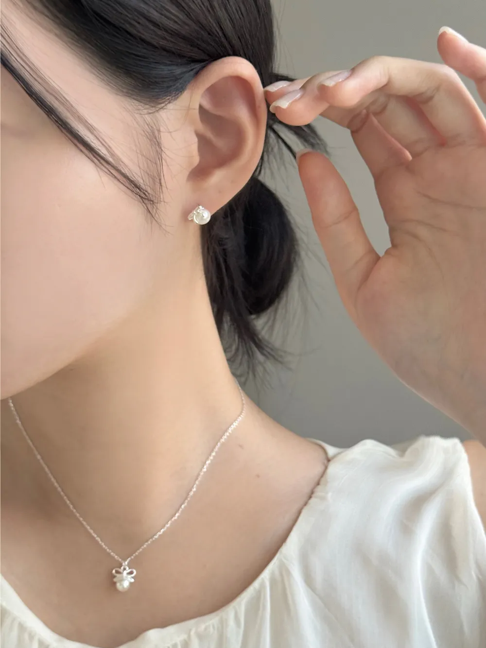 エコパールシンプルピアスネックレス