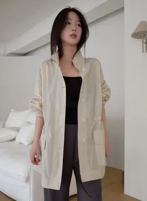 コットンハイネック長袖ドロップショルダールーズオーバーサイズゴムダブルジップフラップポケットアウトポケットウォッシング無地ジャンパー・S1959504