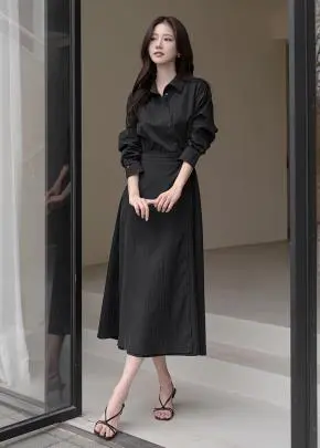 肩パッド長袖ビジューボタンスリットヒドゥンジッパーラインノーカラーラウンドネックペプラム無地ジャケットスカートツーピース(トップス、ボトムス)・S1959956