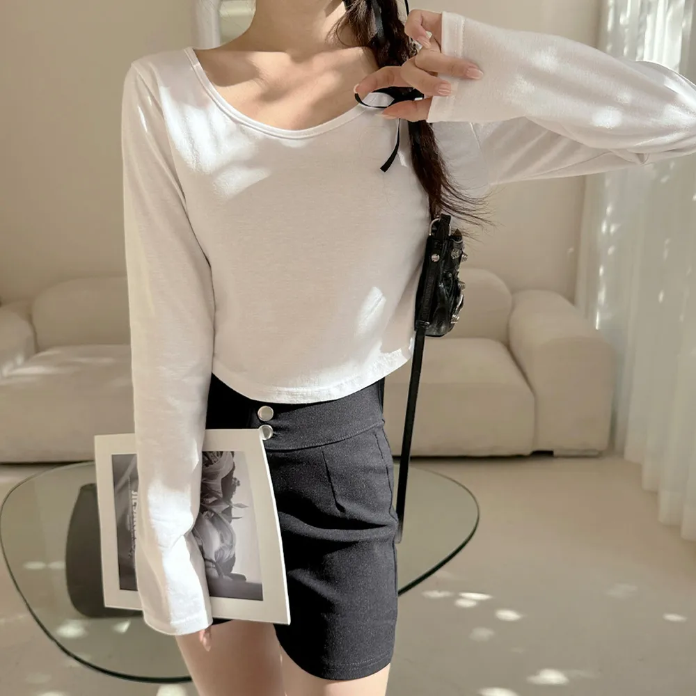 1枚でもおしゃれに着られるクロップドTシャツをご紹介します:)
