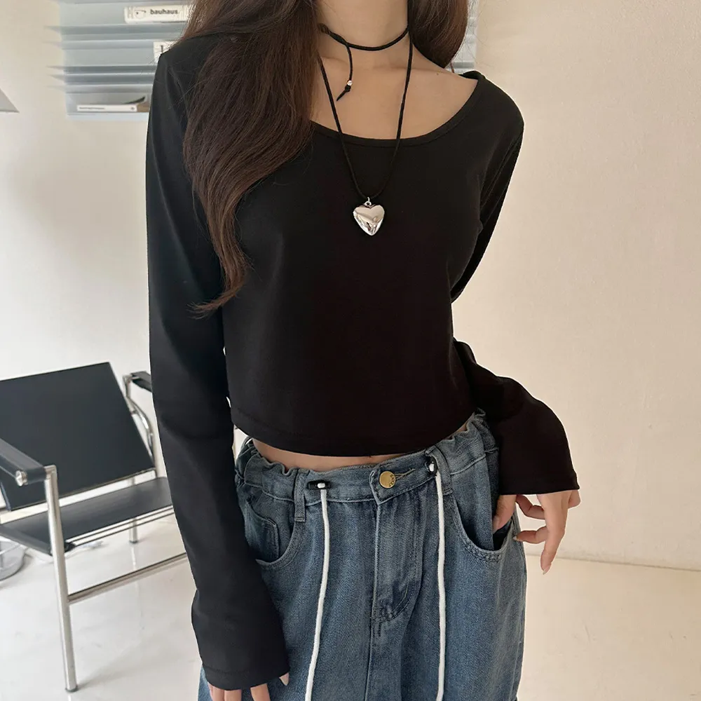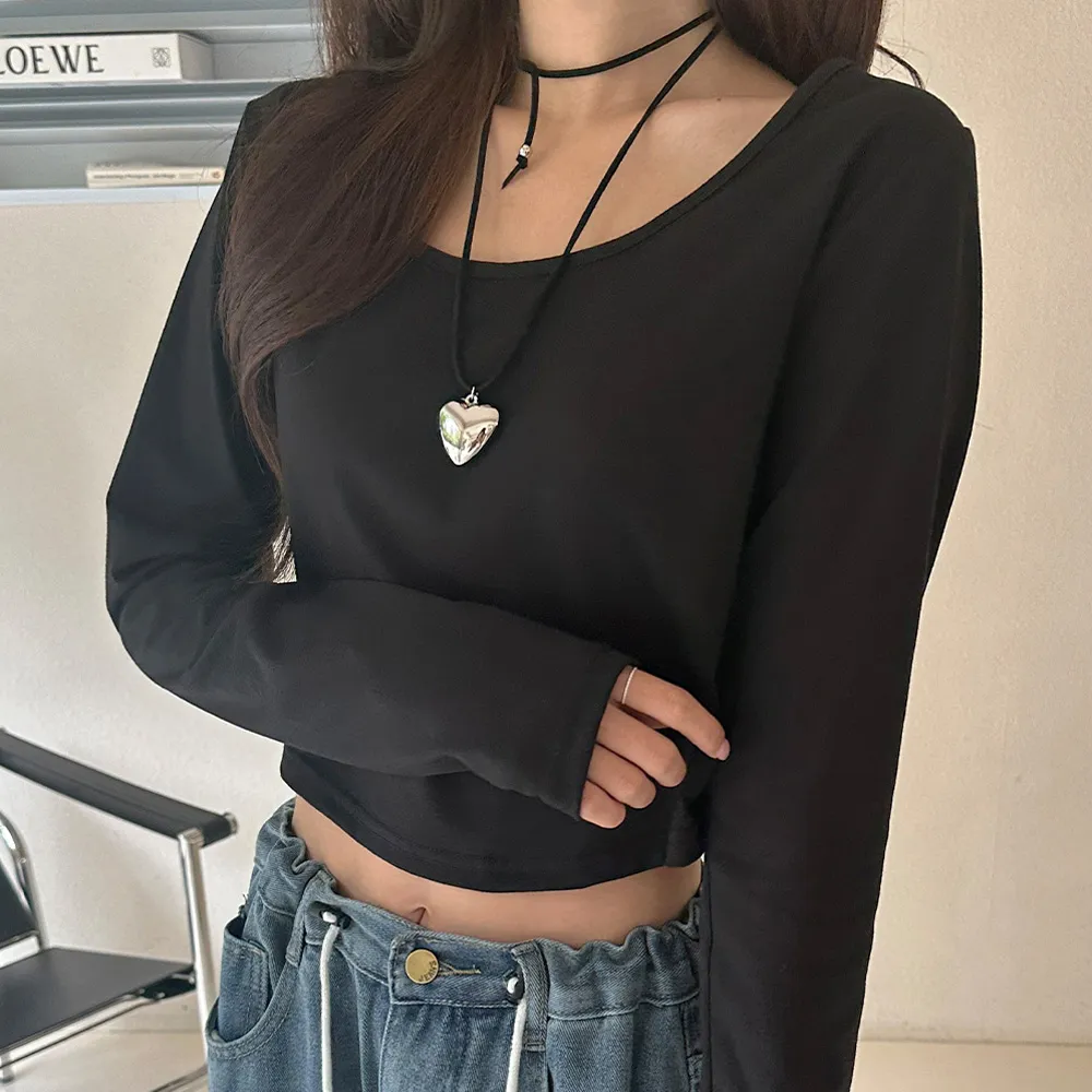 ユニークに密着したラウンドネックで仕上げられ、