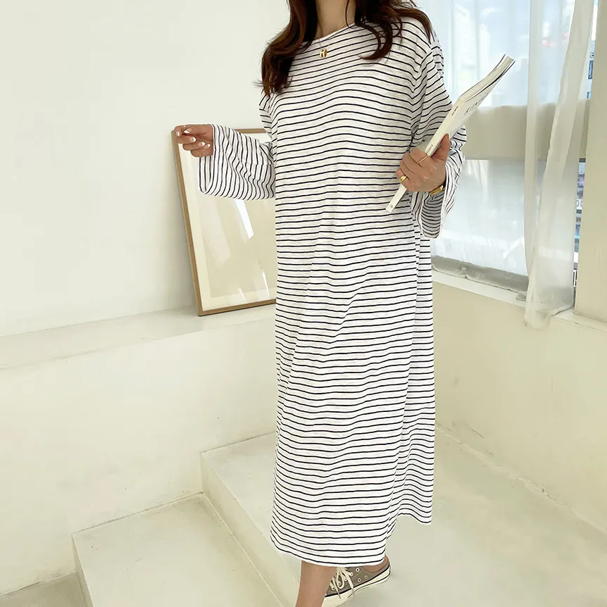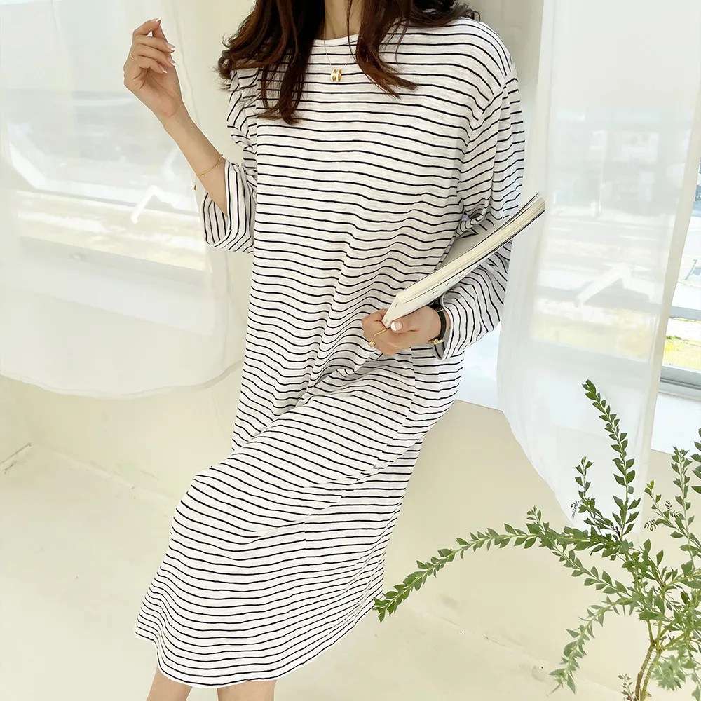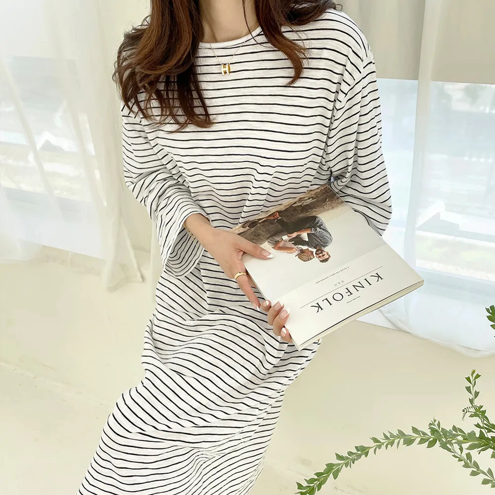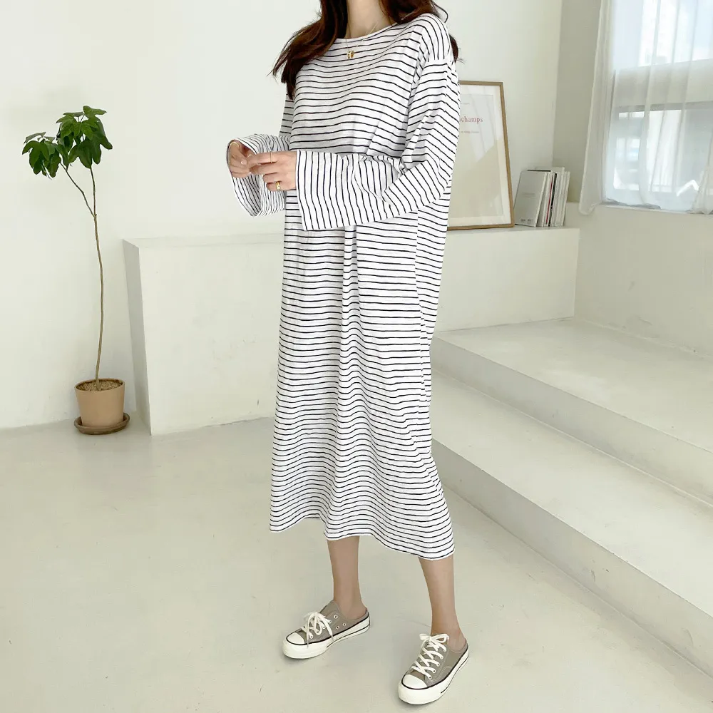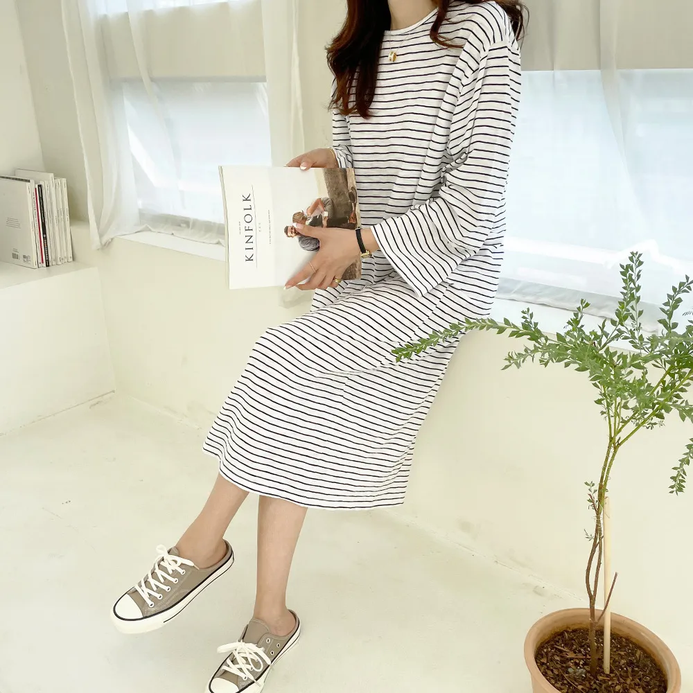 ホームウェアにもおすすめしたい快適な着心地のゆったりシルエットで、 細いストライプ柄がポイント。
