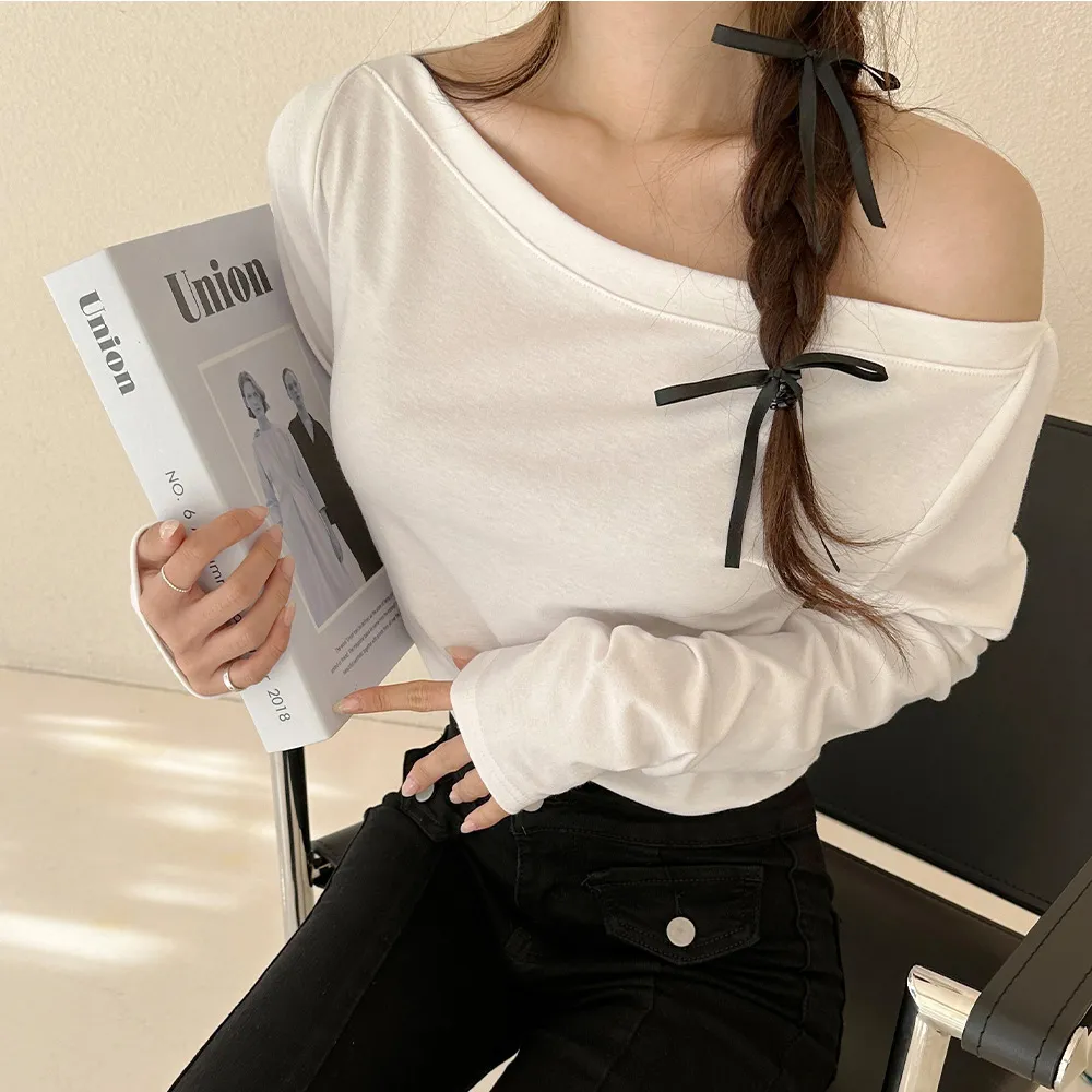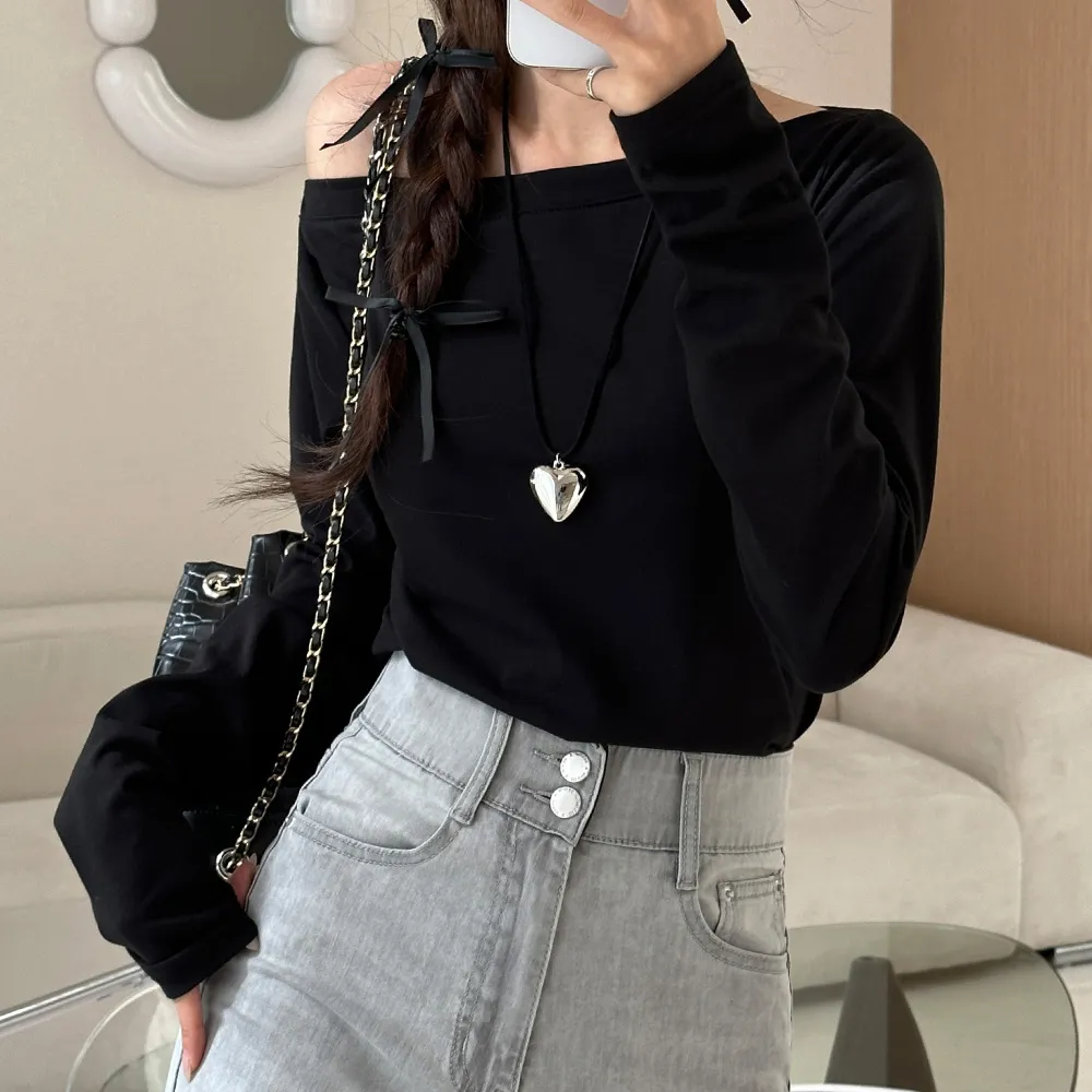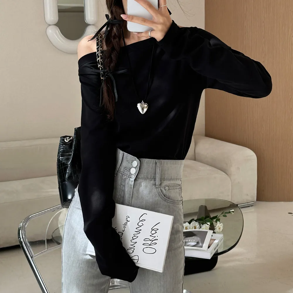 広めに開いたネックラインで、オフショルダー風にも着こなせるので