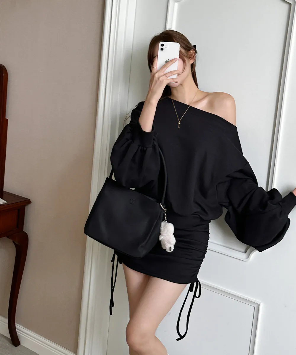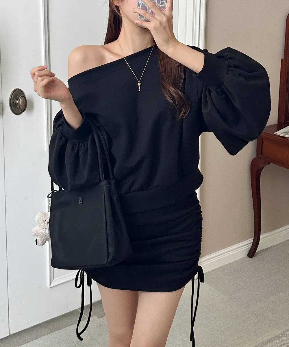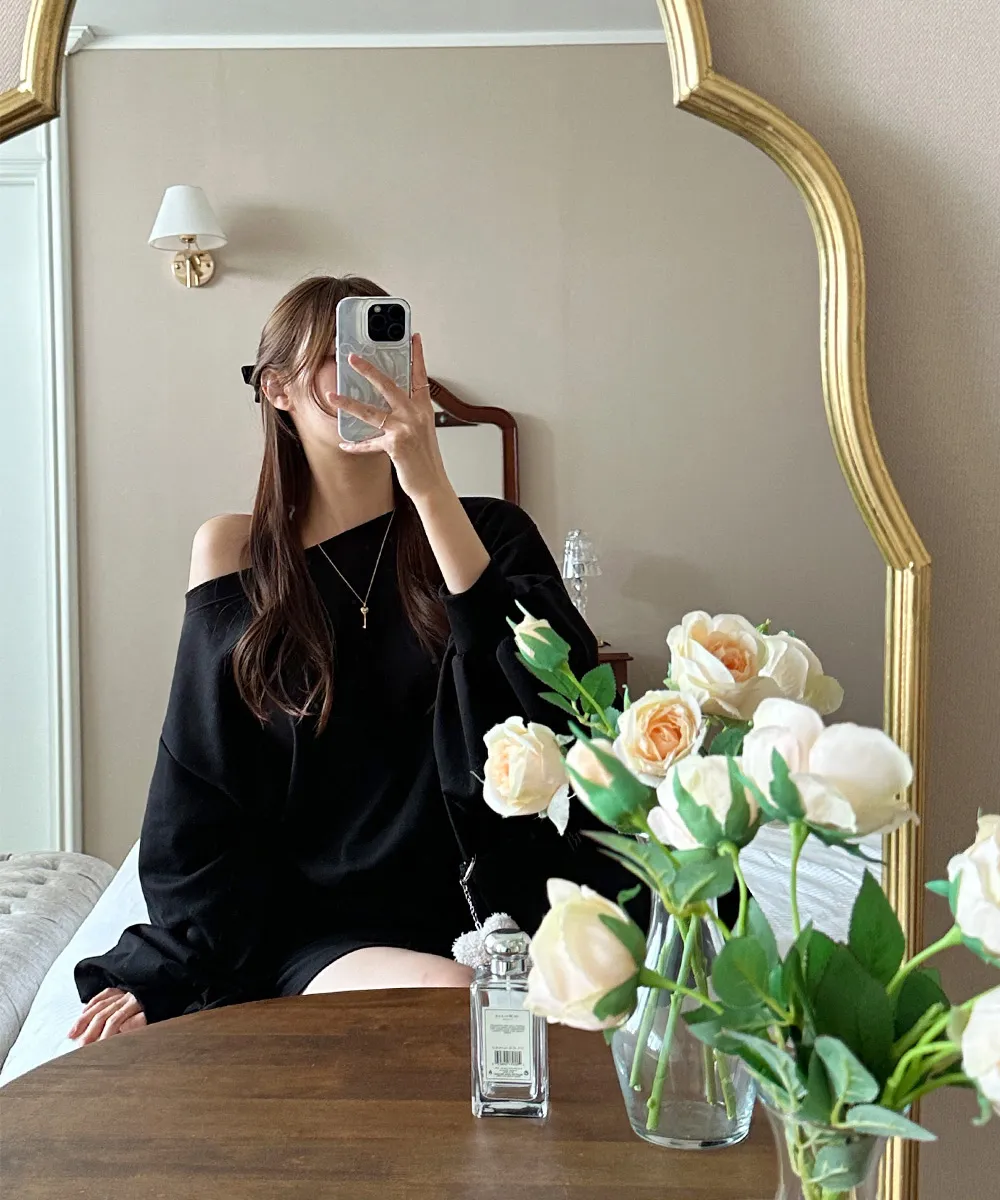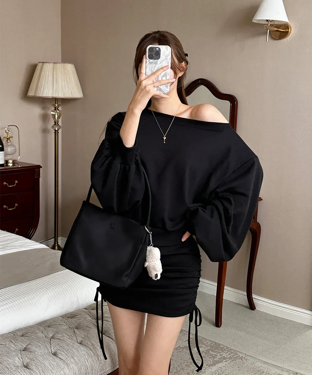 肩ラインはボートネックデザインを加えてオフショルダーとしても着られるようにして、