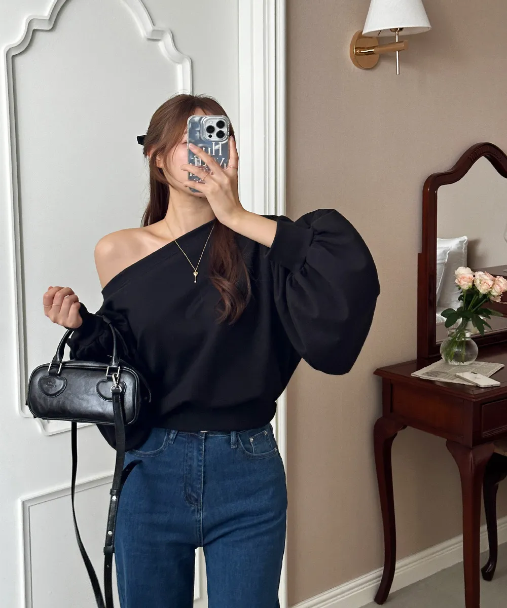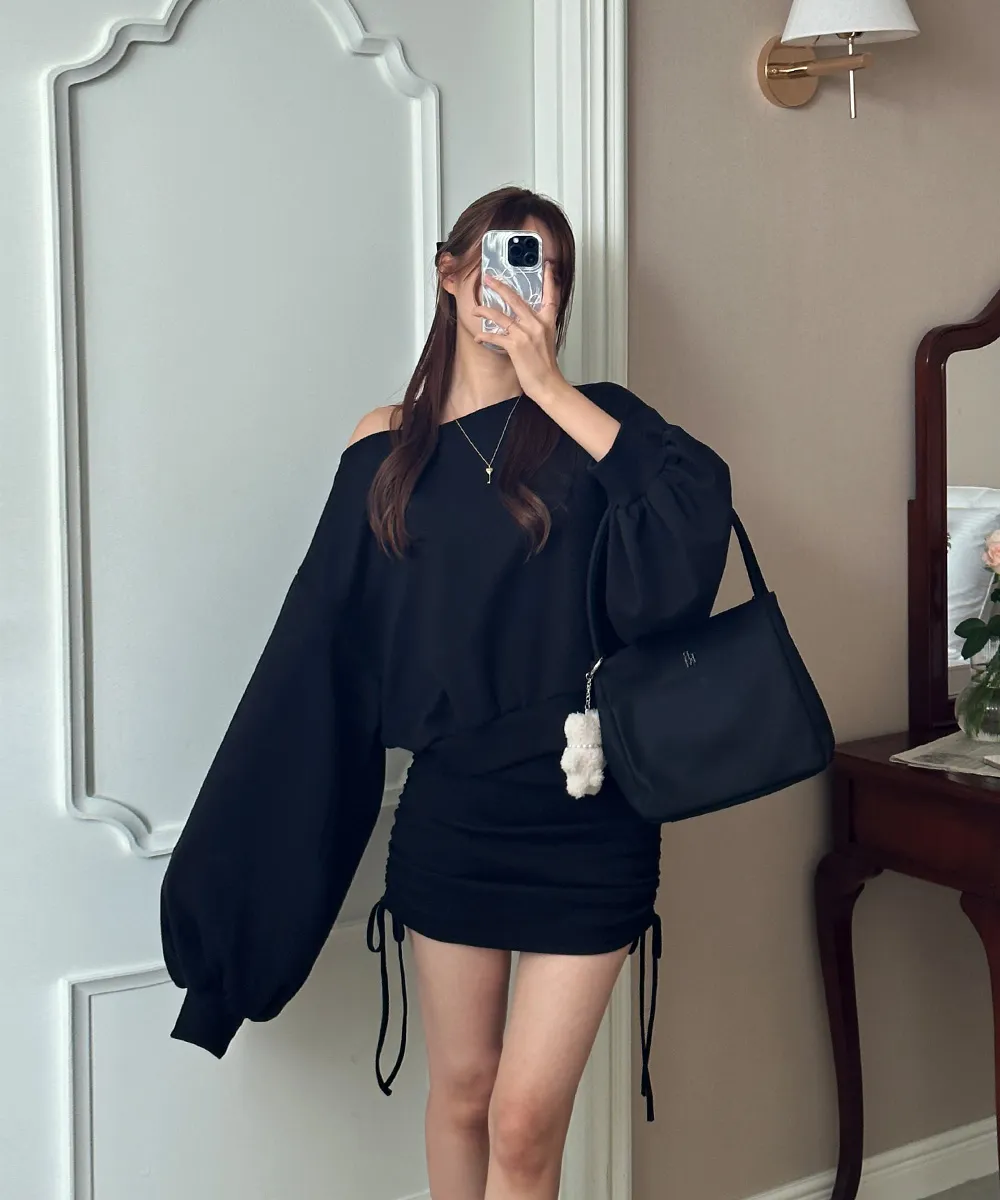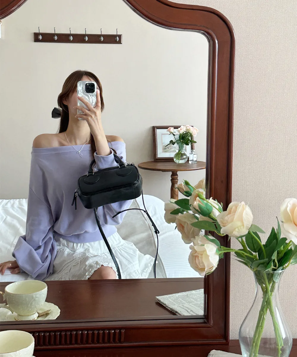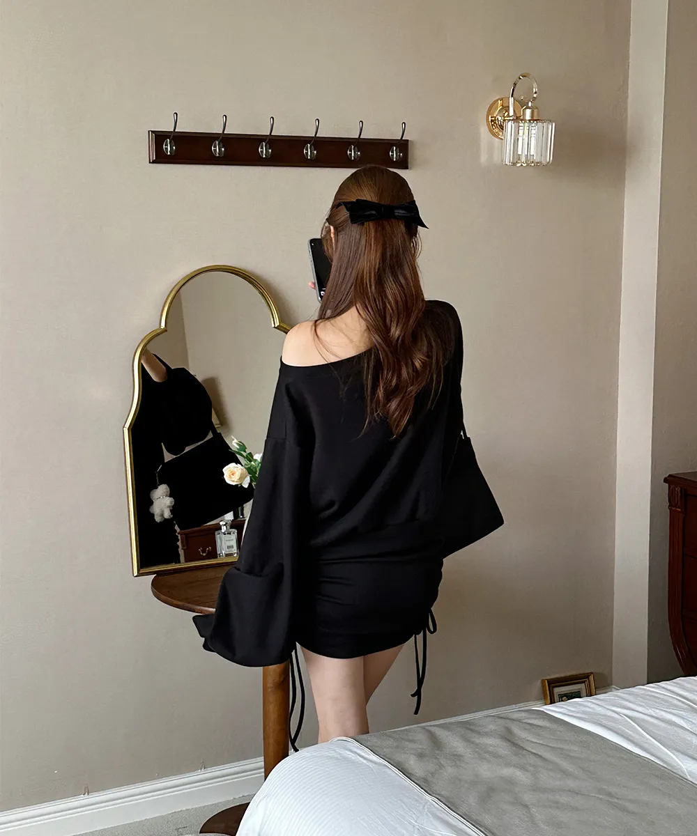 肩ラインはボートネックデザインを加えてオフショルダーとしても着られるようにして、