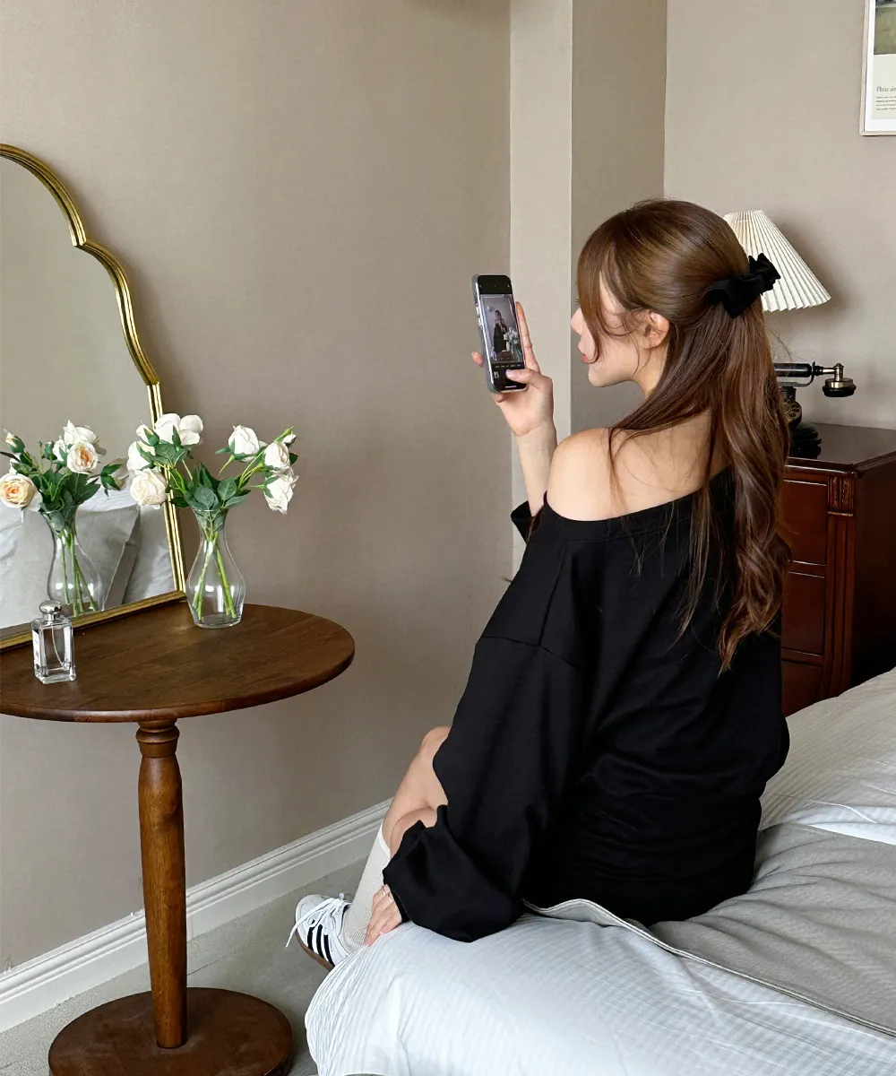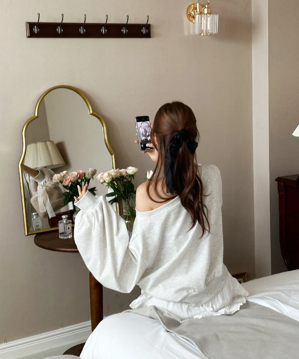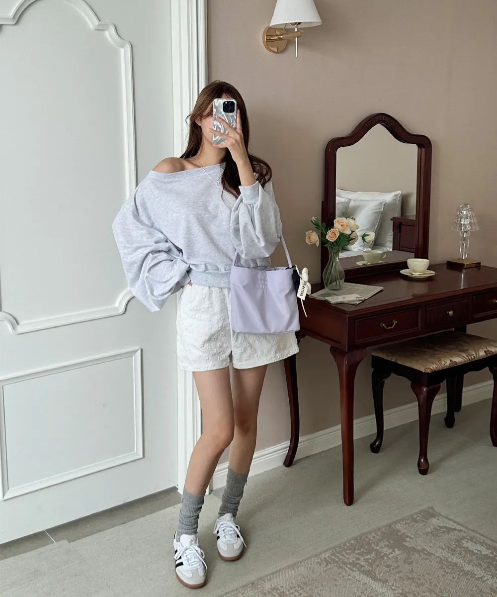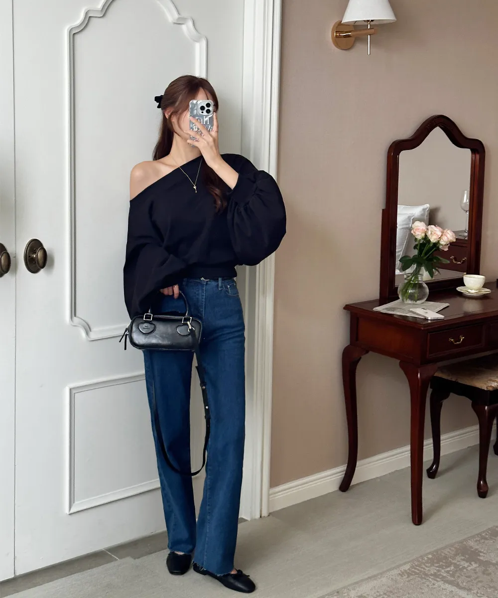 肩ラインはボートネックデザインを加えてオフショルダーとしても着られるようにして、