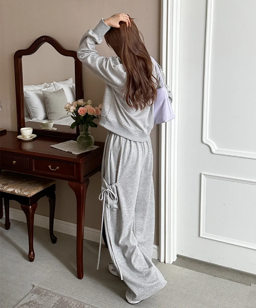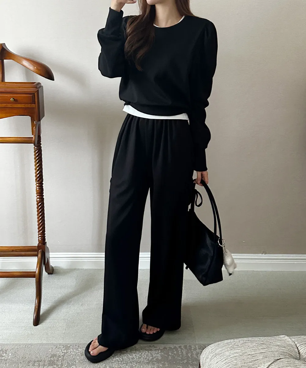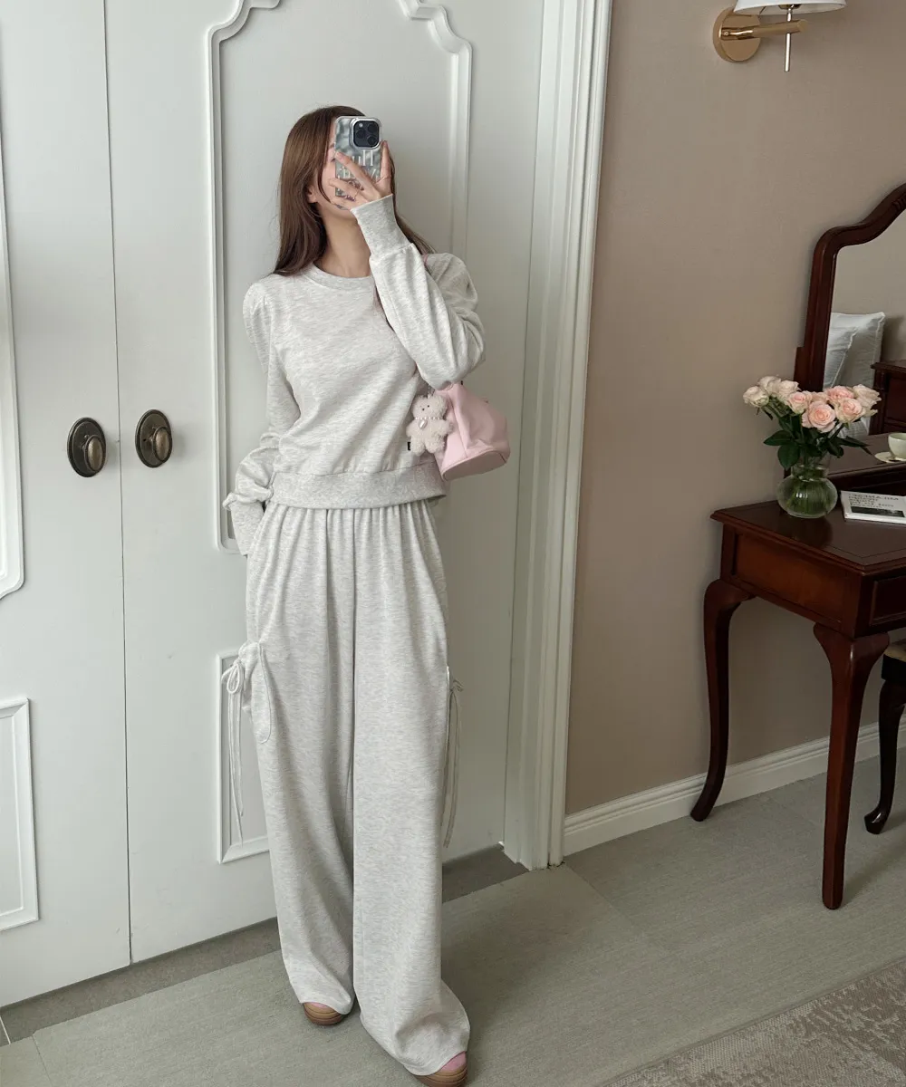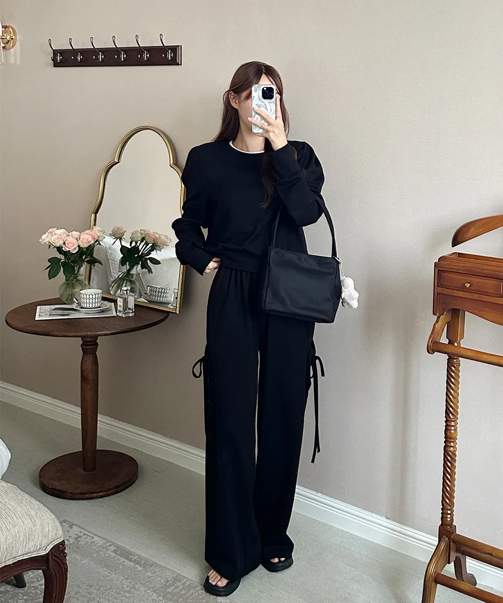 ラウンドネックゴムルーズブーツカットセットアップ