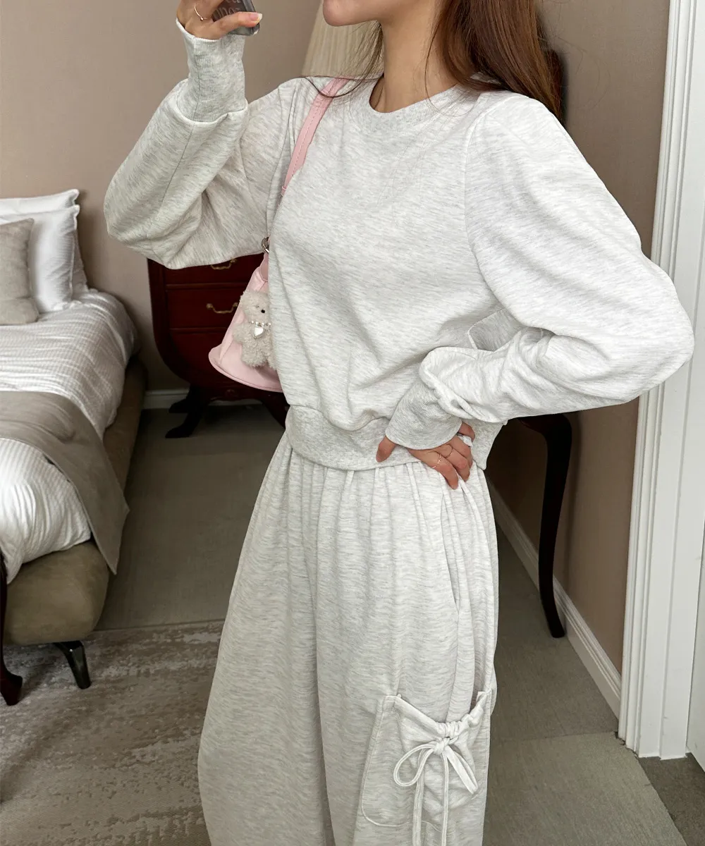 リボンゴムパフスリーブクロップドセットアップ・K1936937