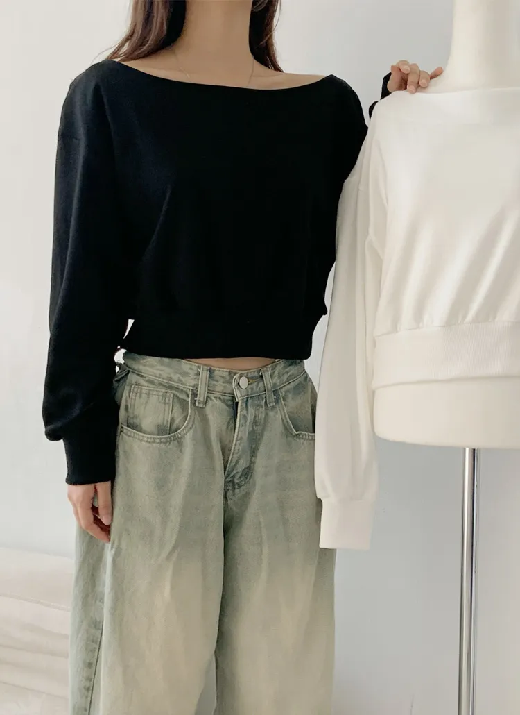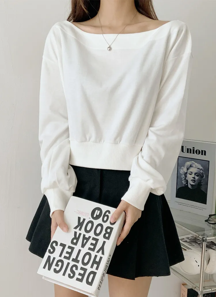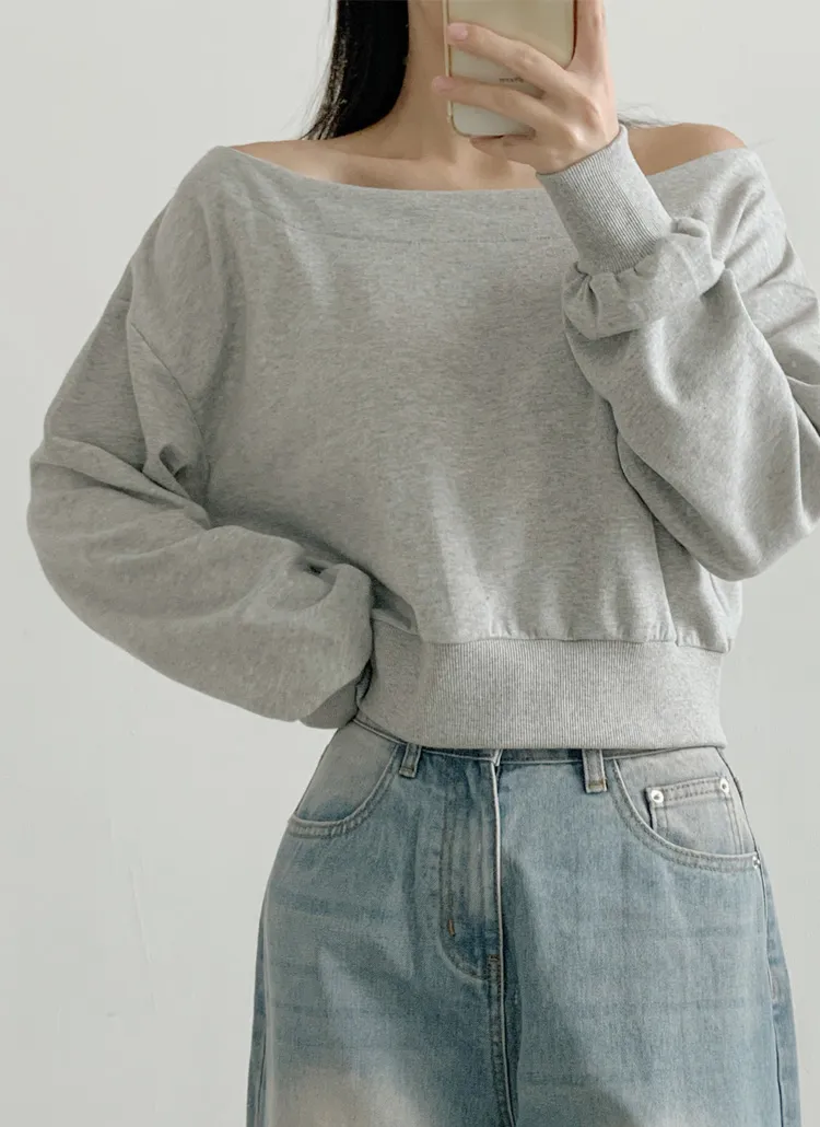 ボートネックオフショルダークロップドバルーンスウェット