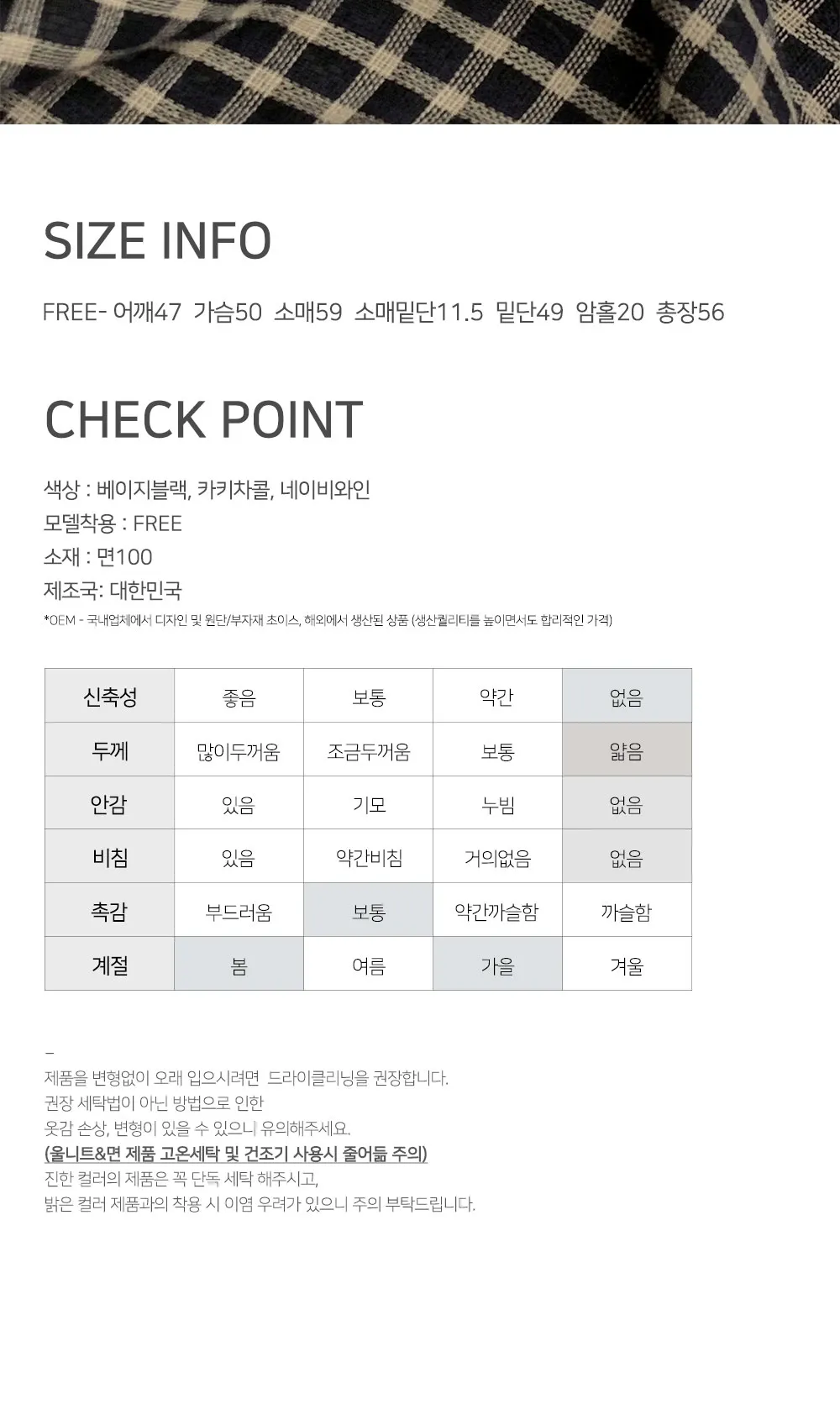 着用 : ベージュブラック / FREE