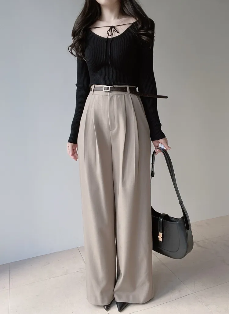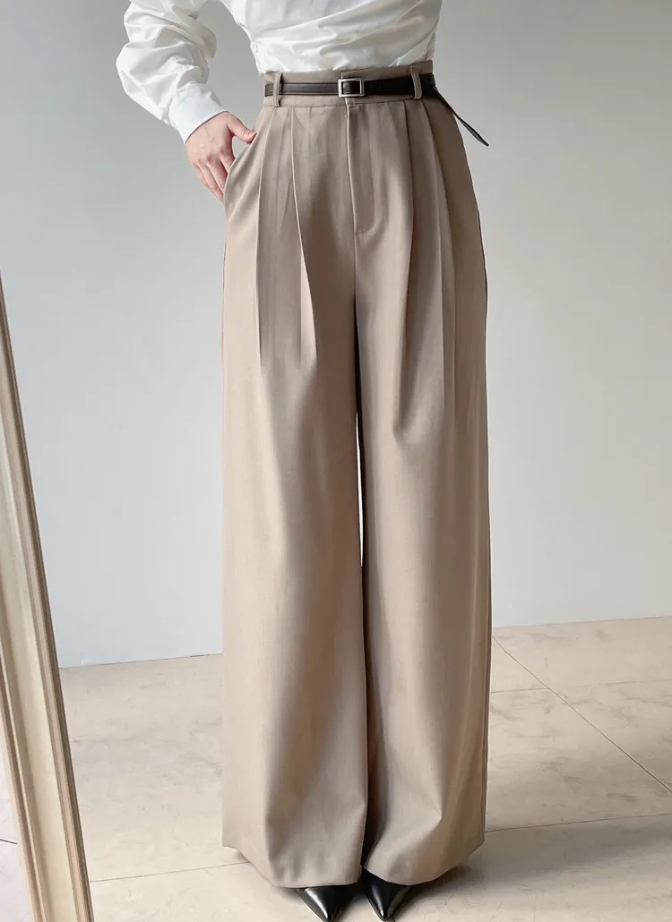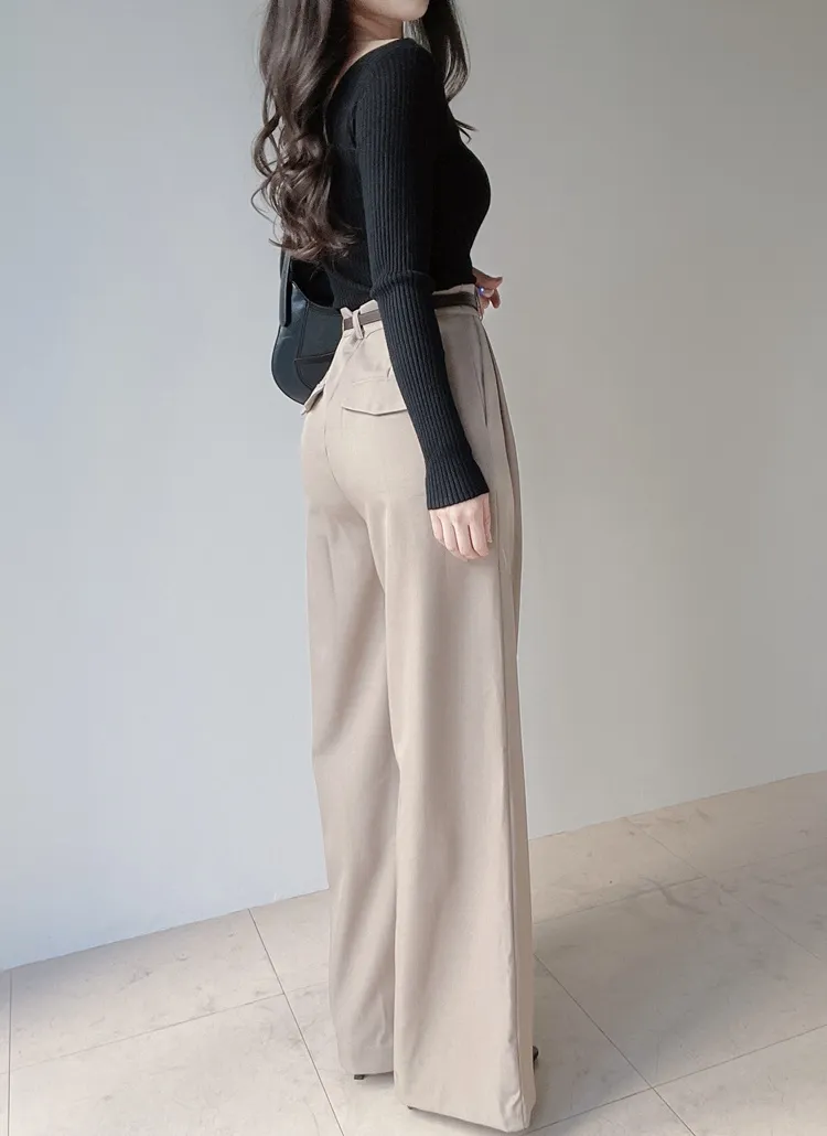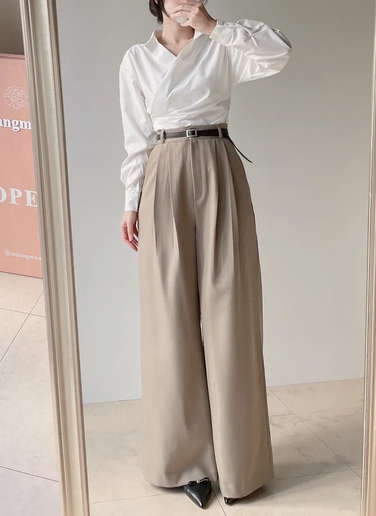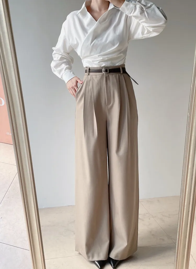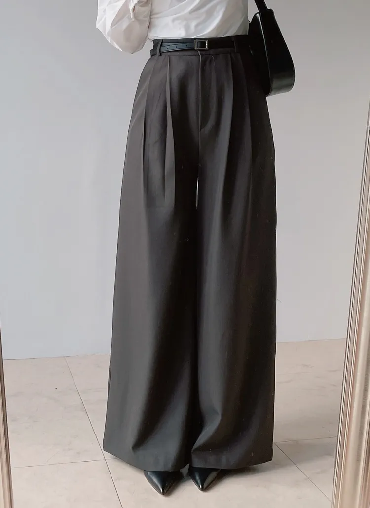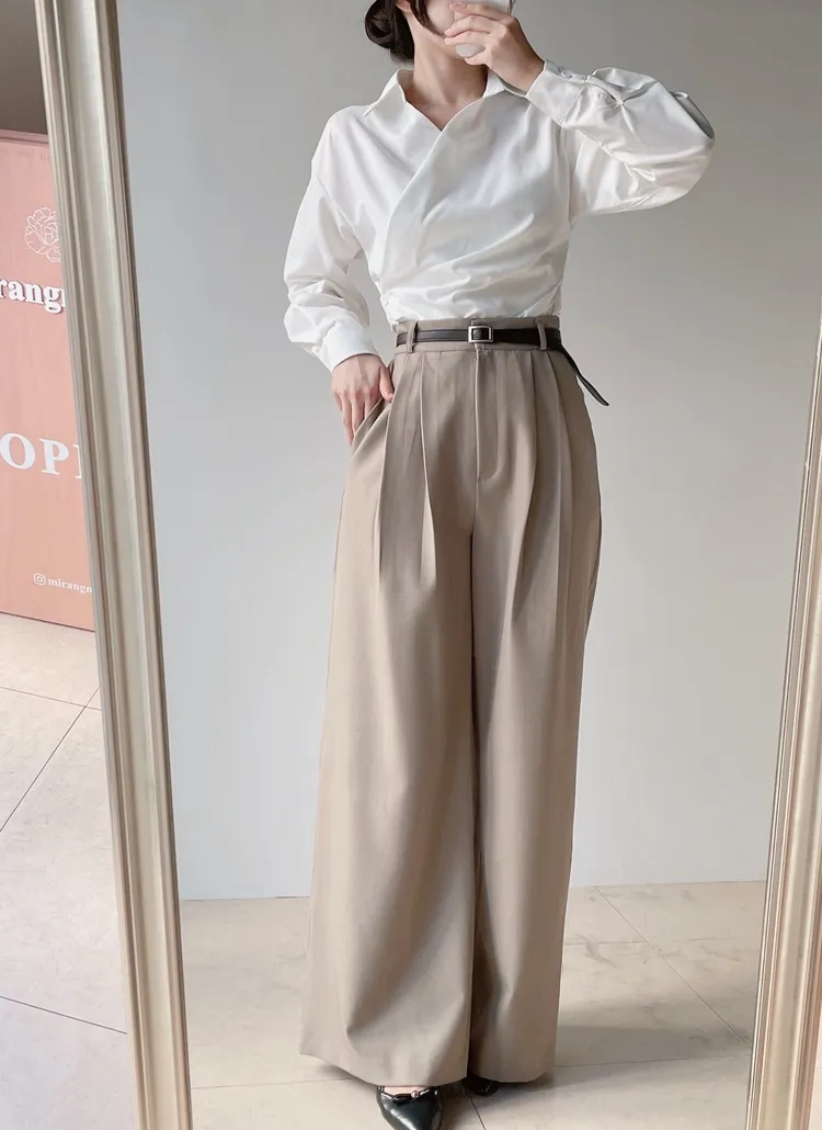[選べる丈]バックルハイウエストワイドスラックス