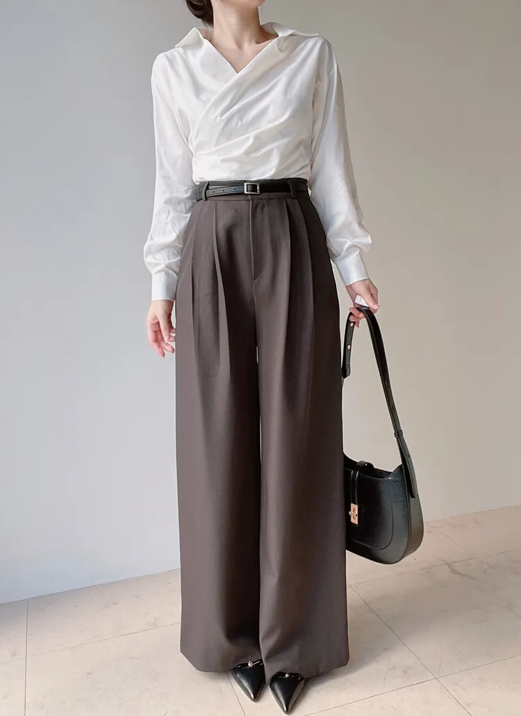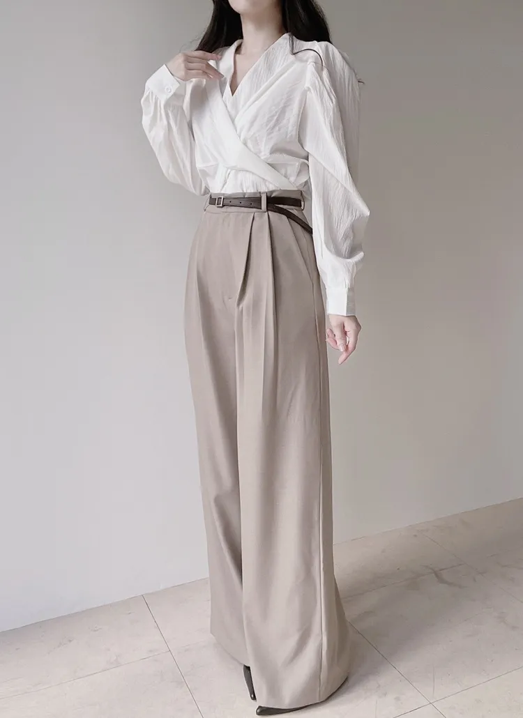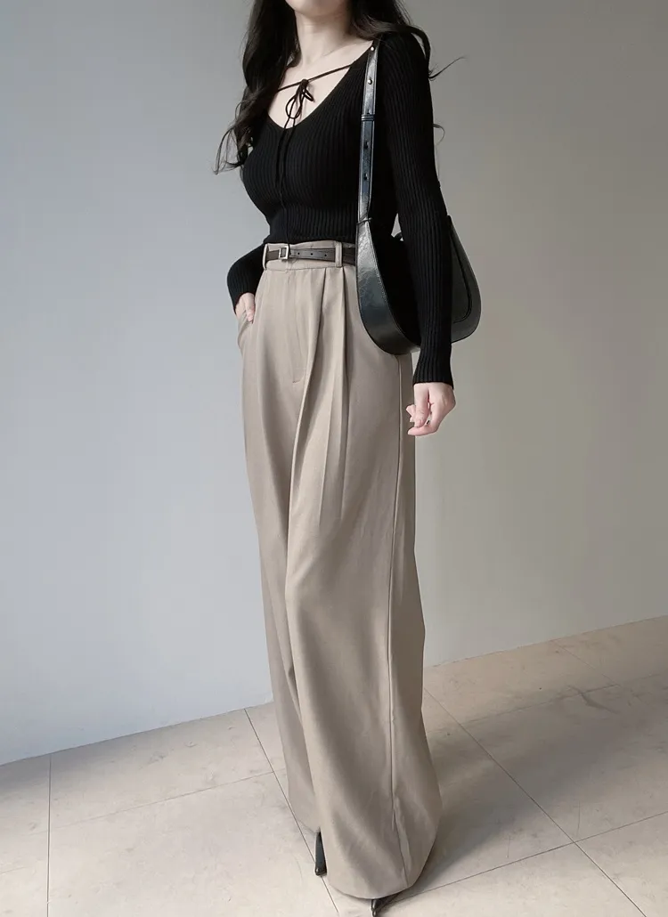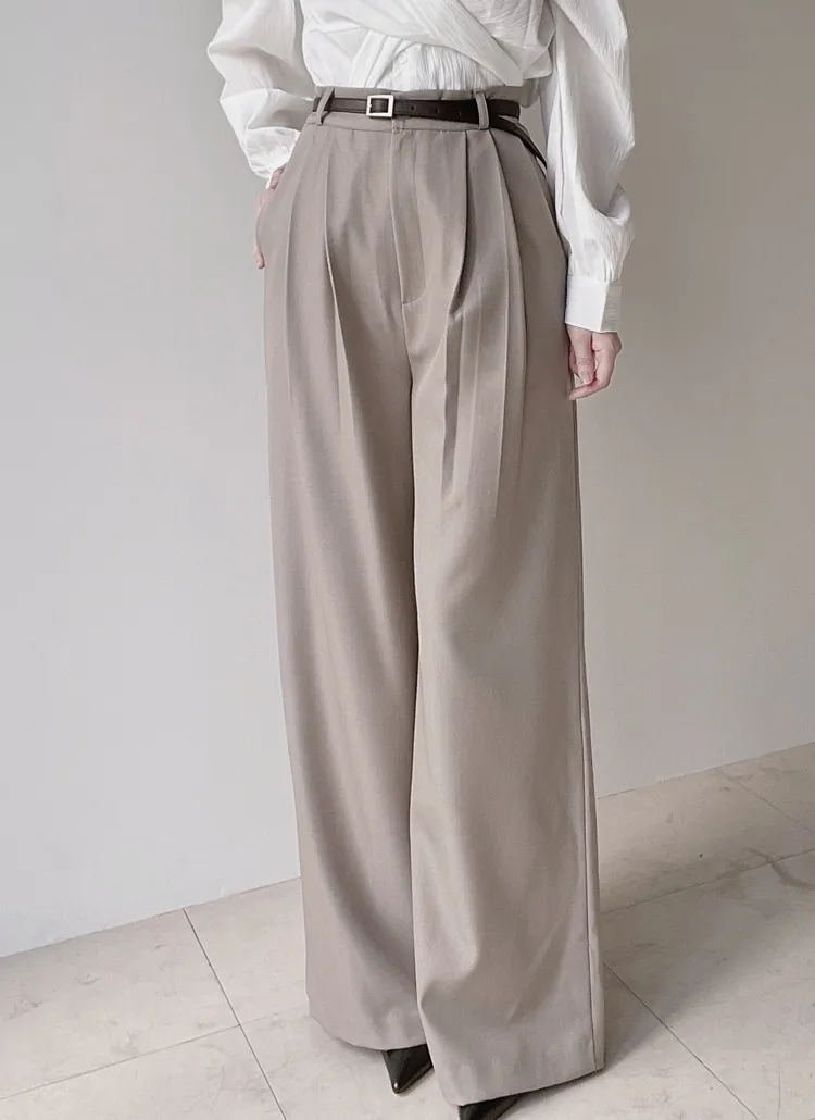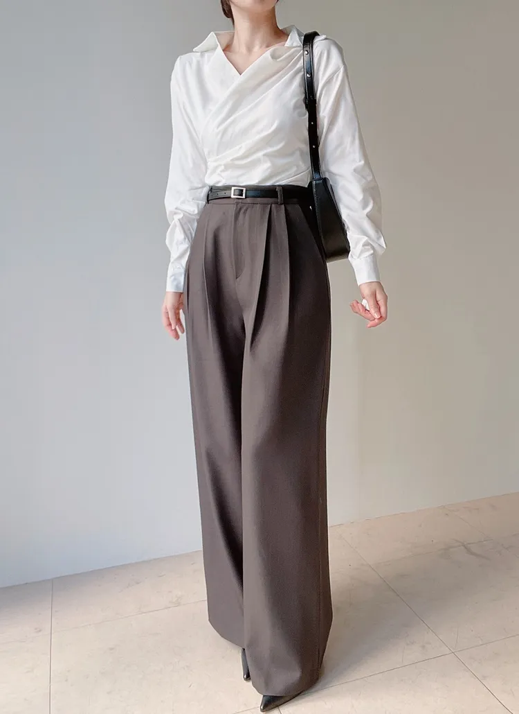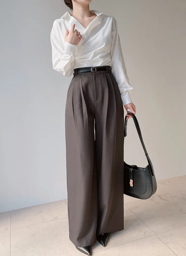 [選べる丈]バックルハイウエストワイドスラックス