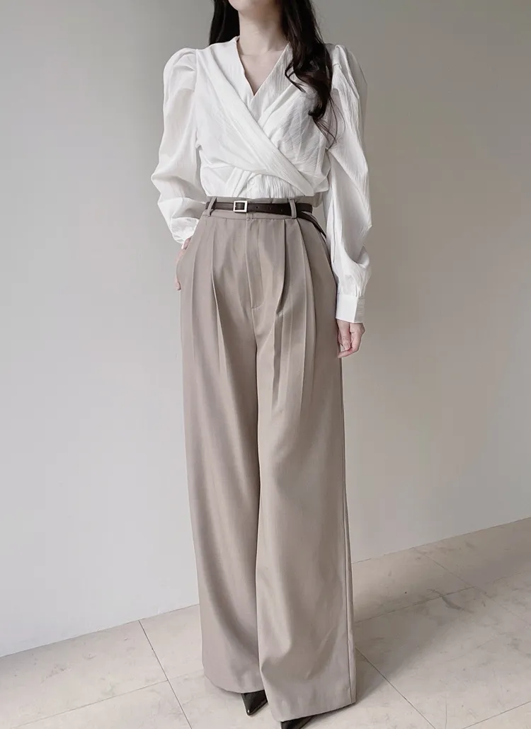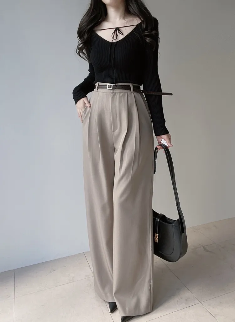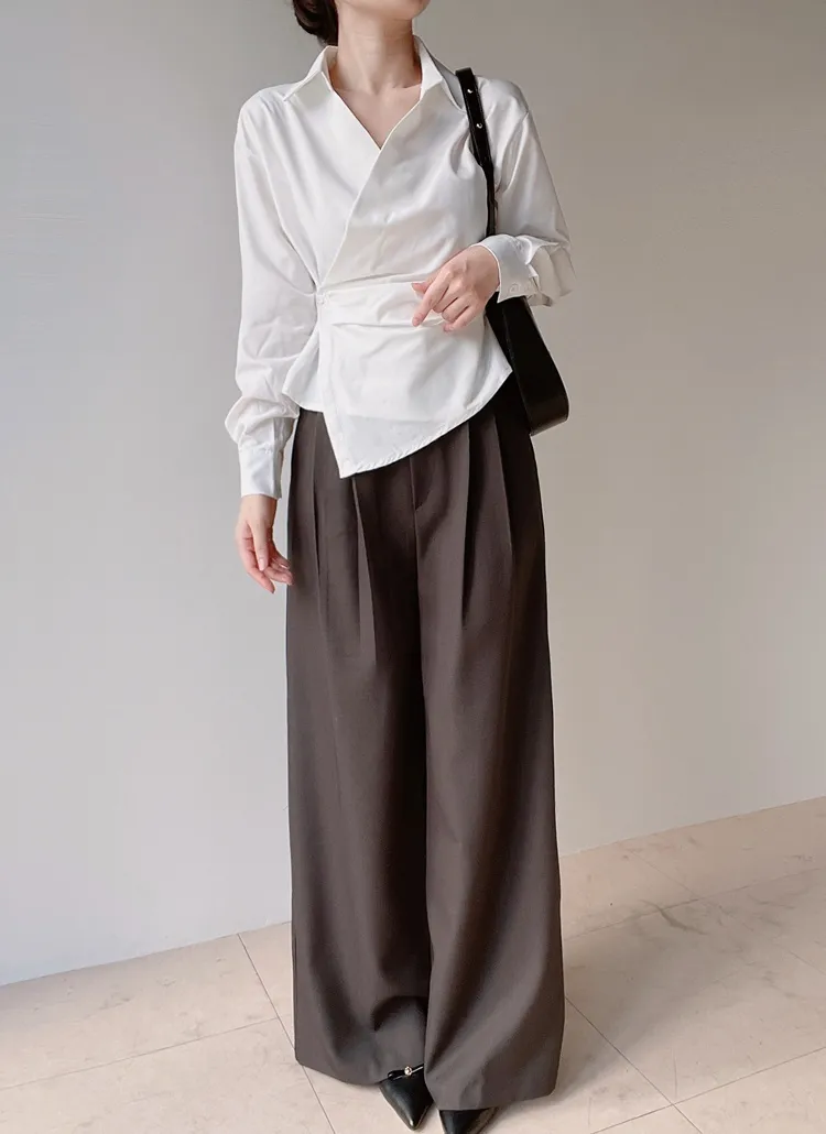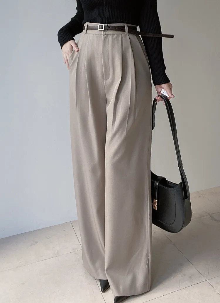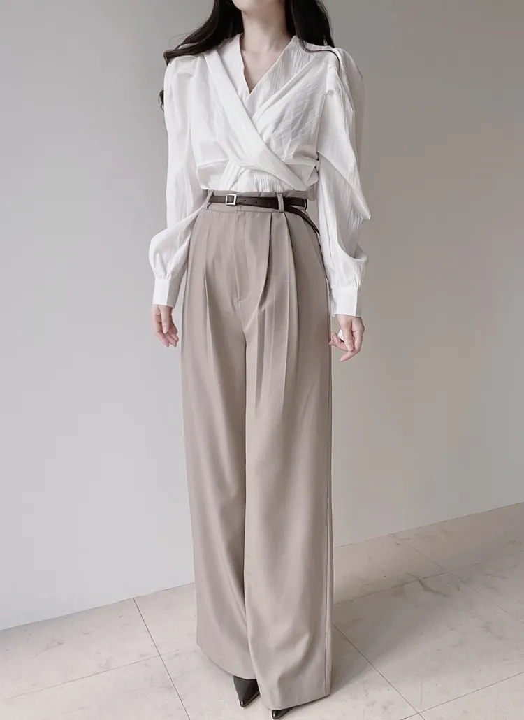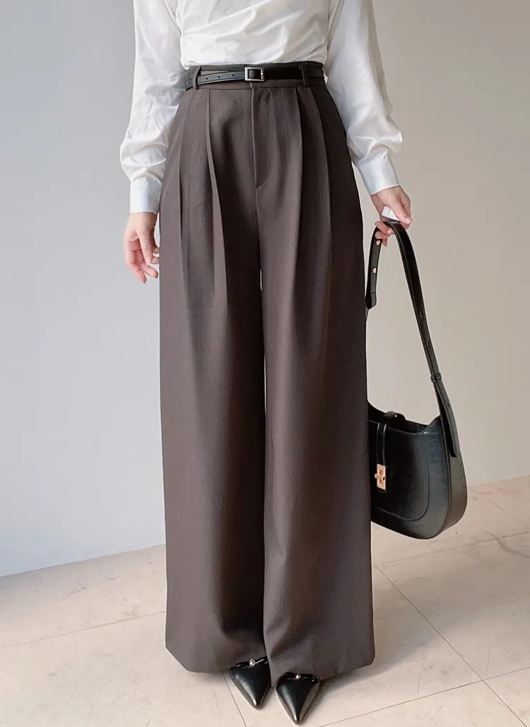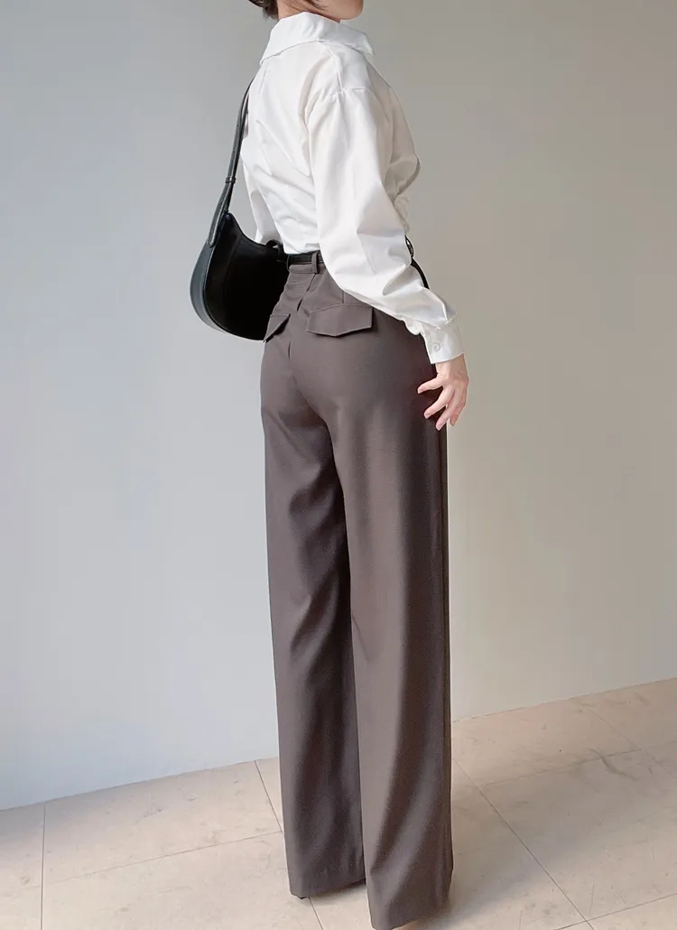 [選べる丈]バックルハイウエストワイドスラックス