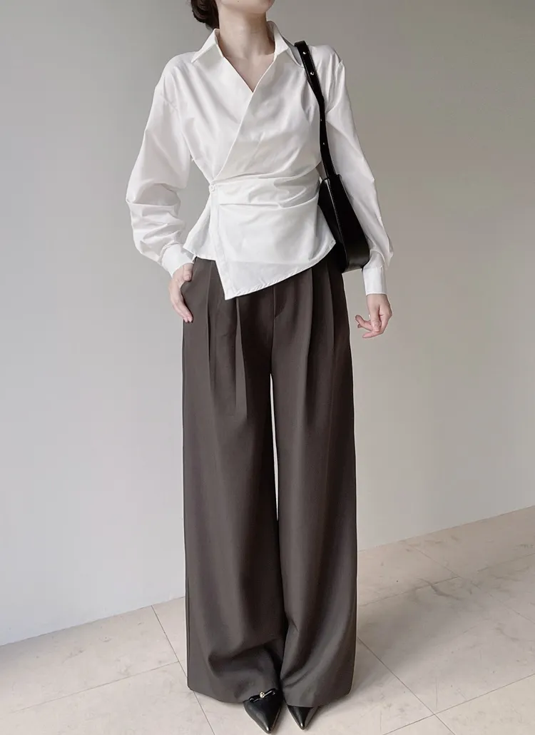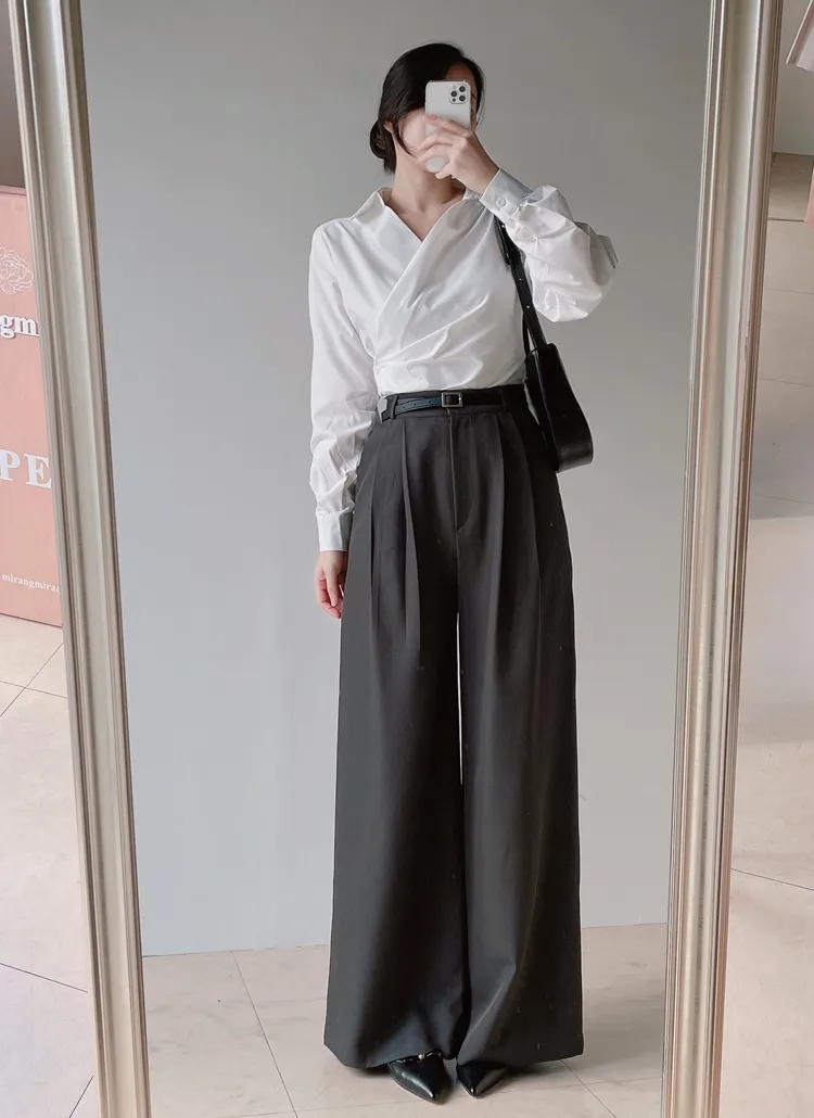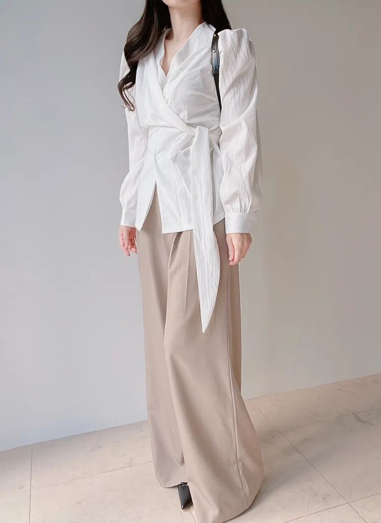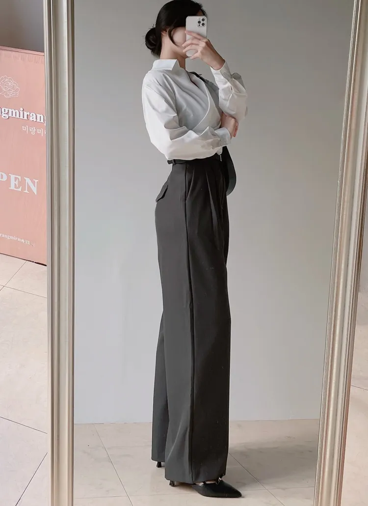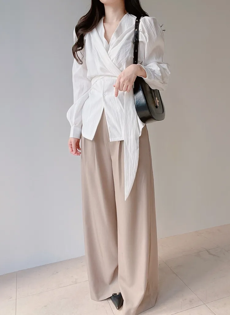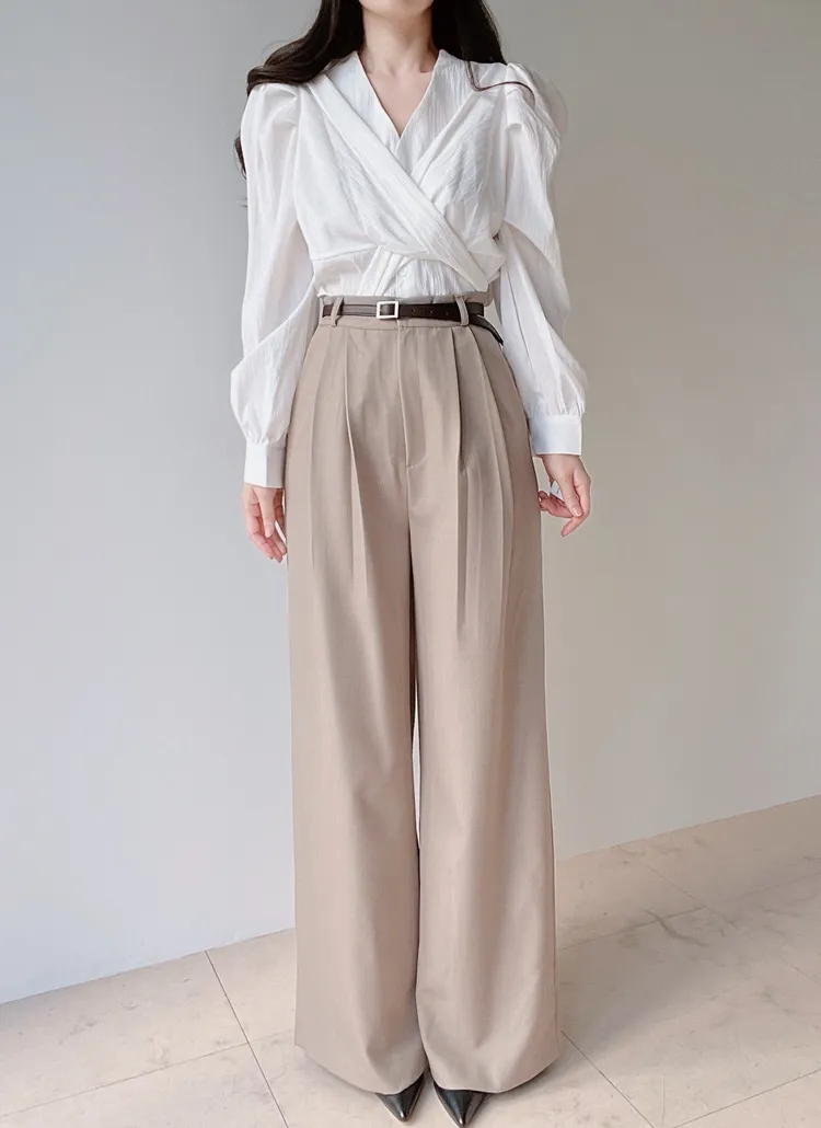 [選べる丈]バックルハイウエストワイドスラックス