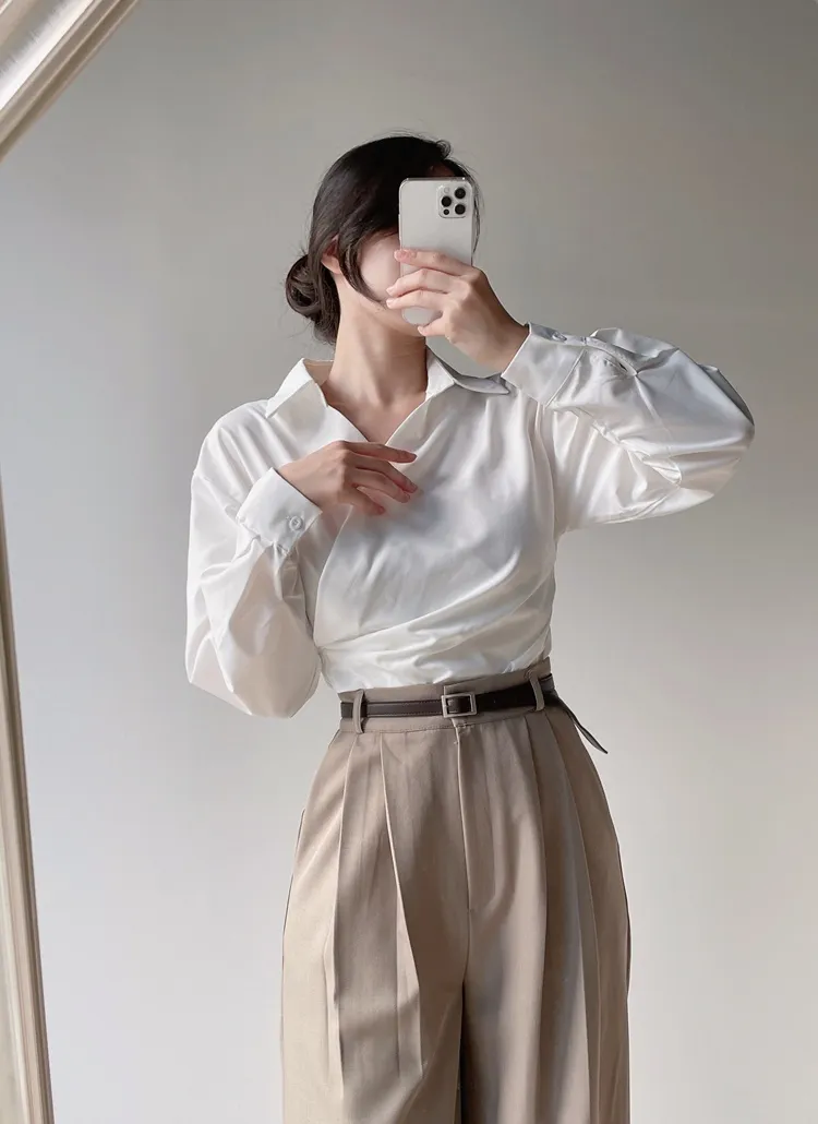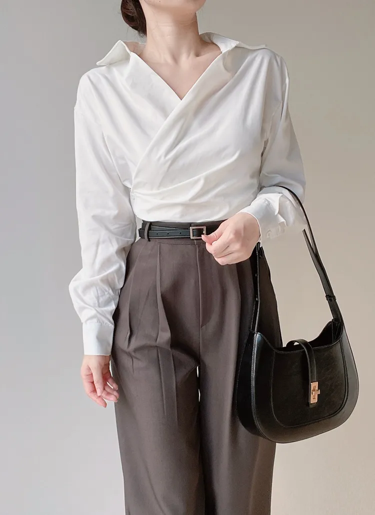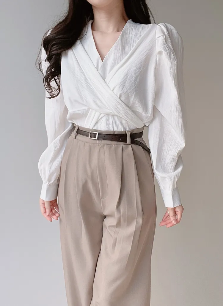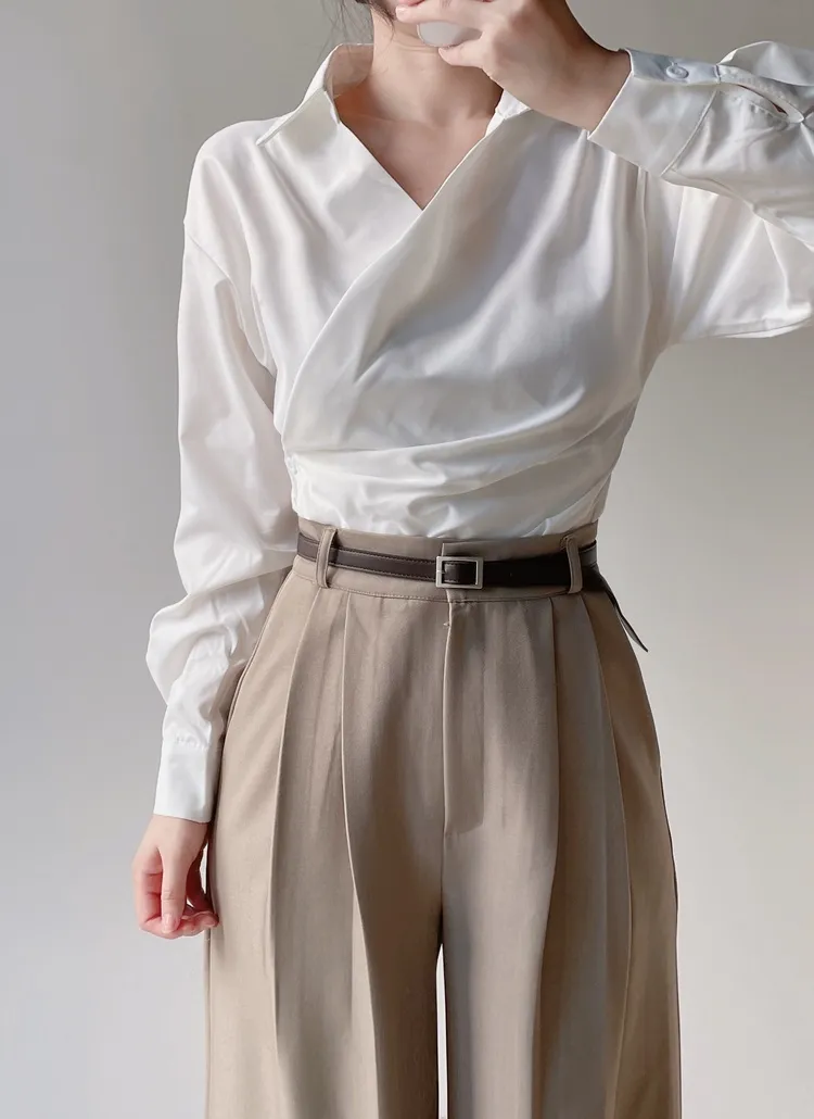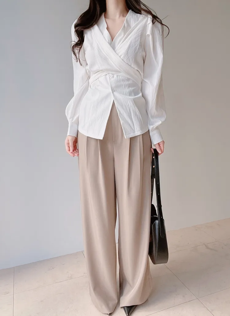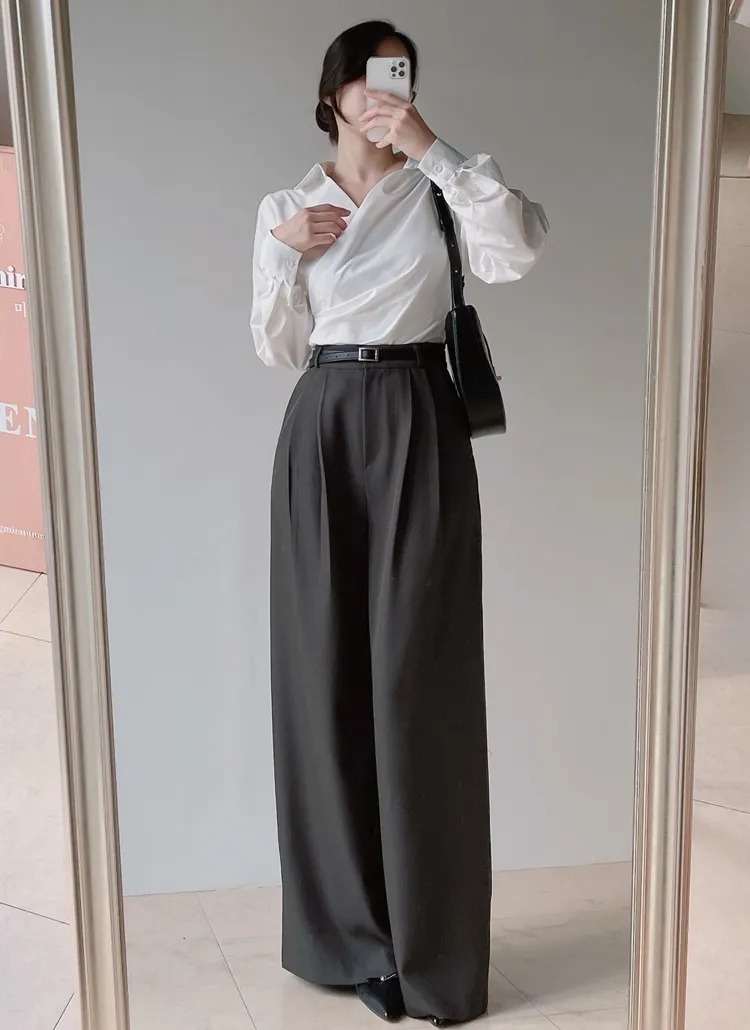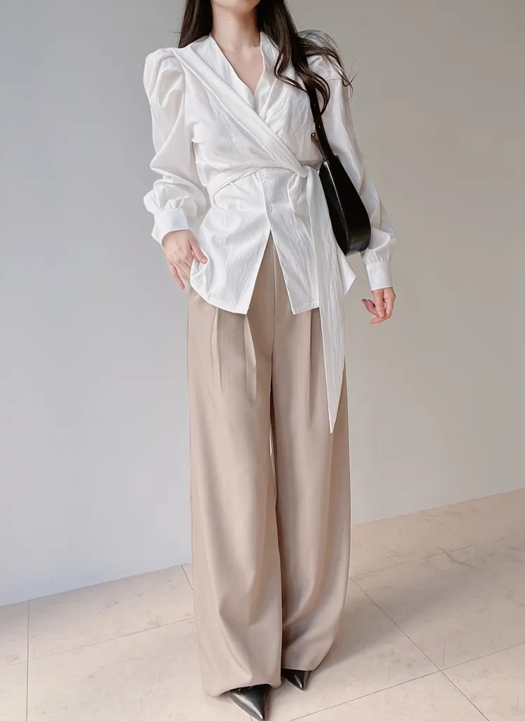 [選べる丈]バックルハイウエストワイドスラックス