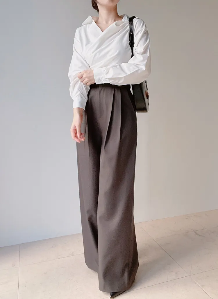 ハイウエストワンタックワイドカラースラックス
