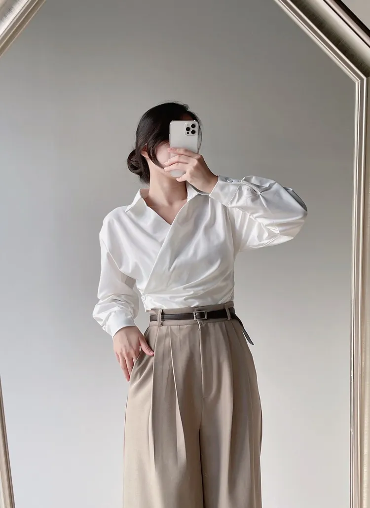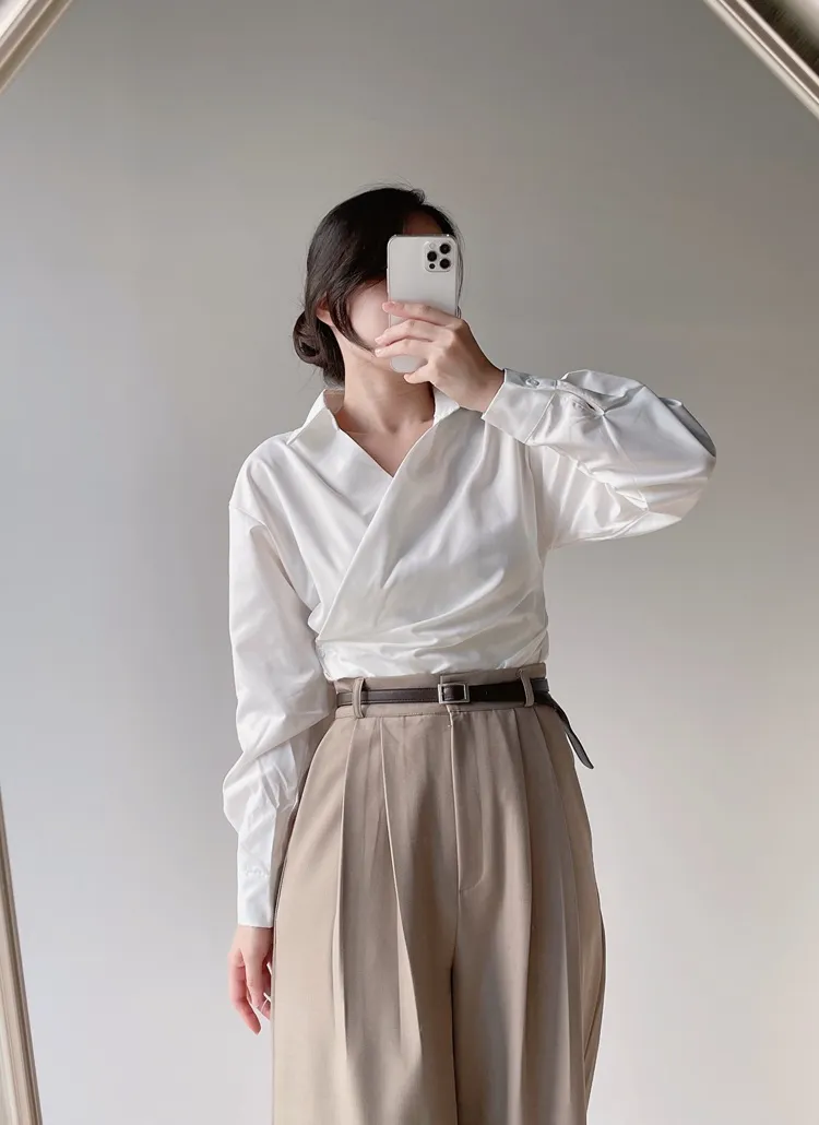 ソフトドレープクロップド長袖Tシャツ
