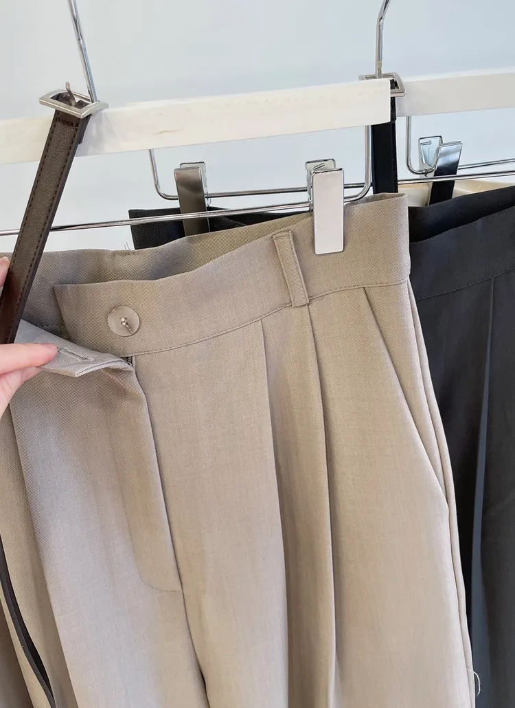 ボタンジップアップハイウエストツータックワイドブーツカットポケットスラックス