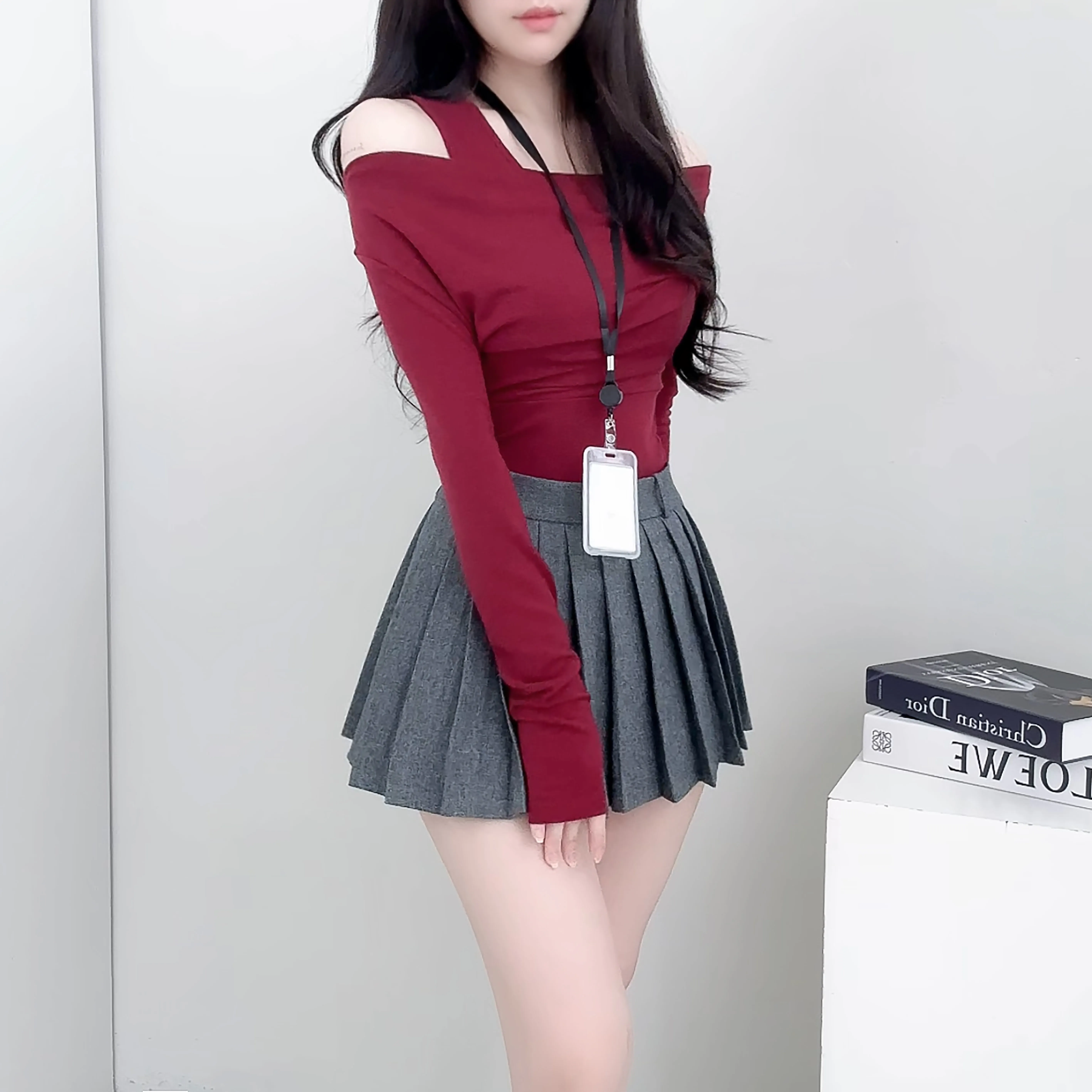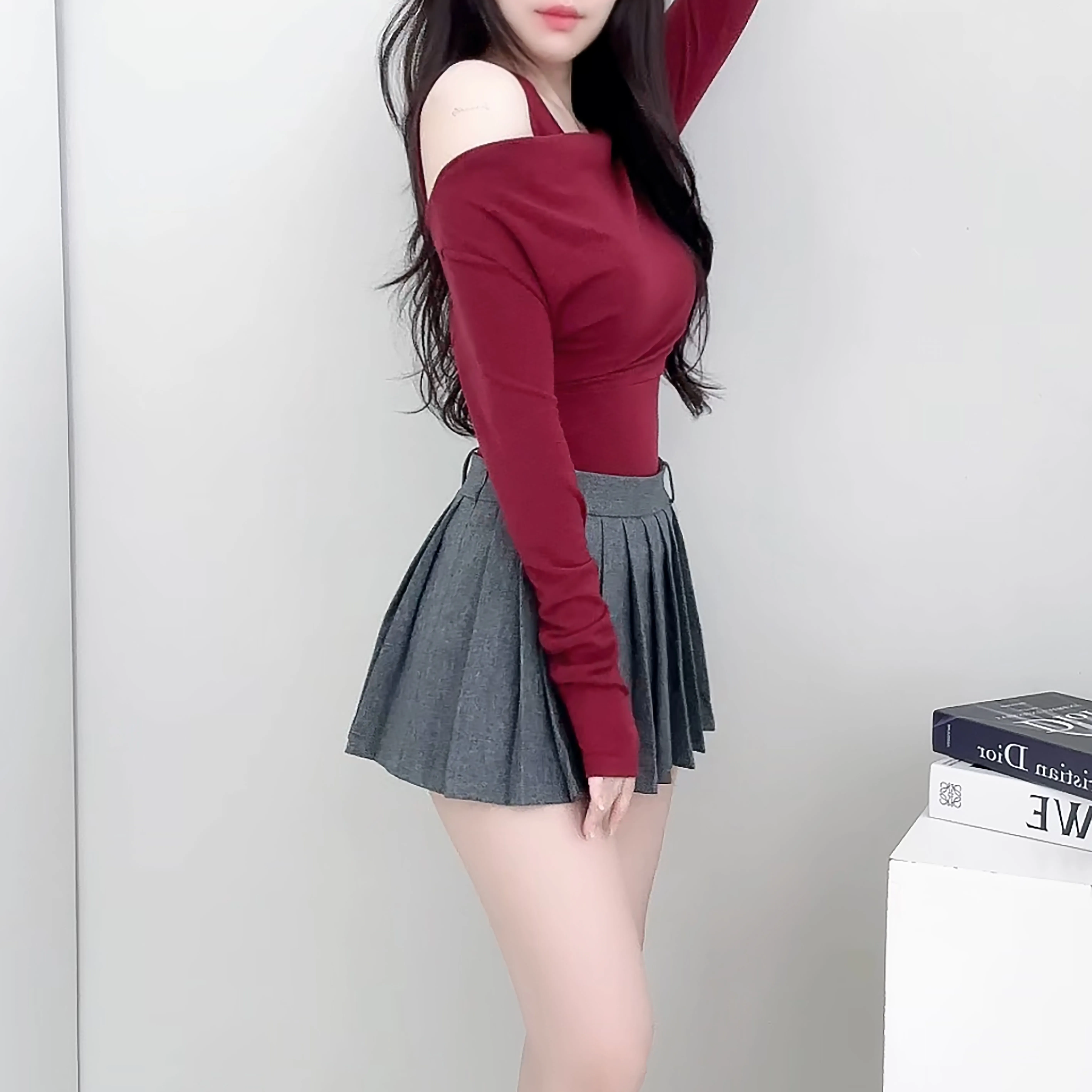 着用 : ワイン / FREE,グレー / FREE