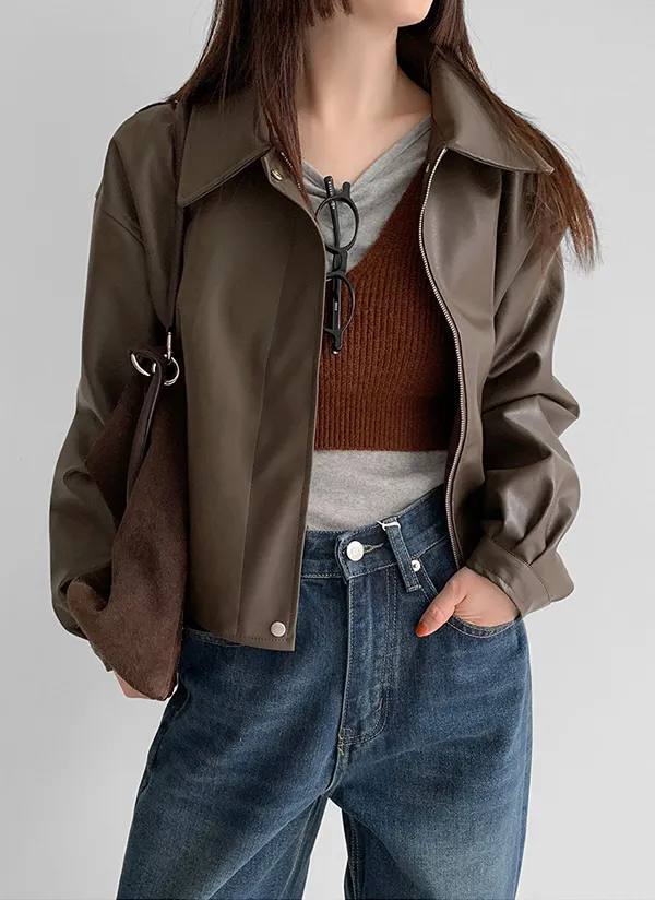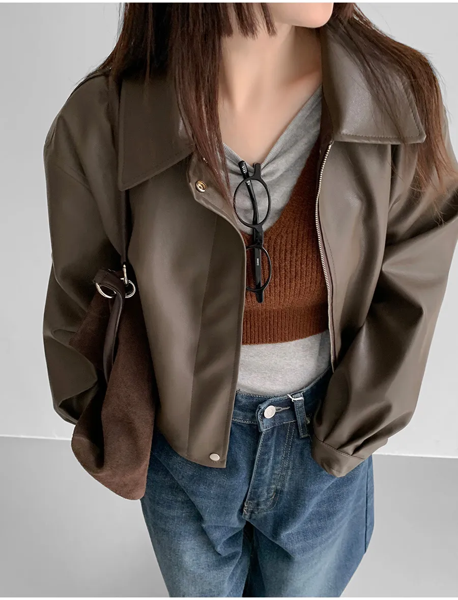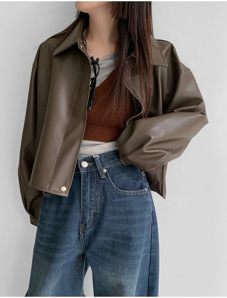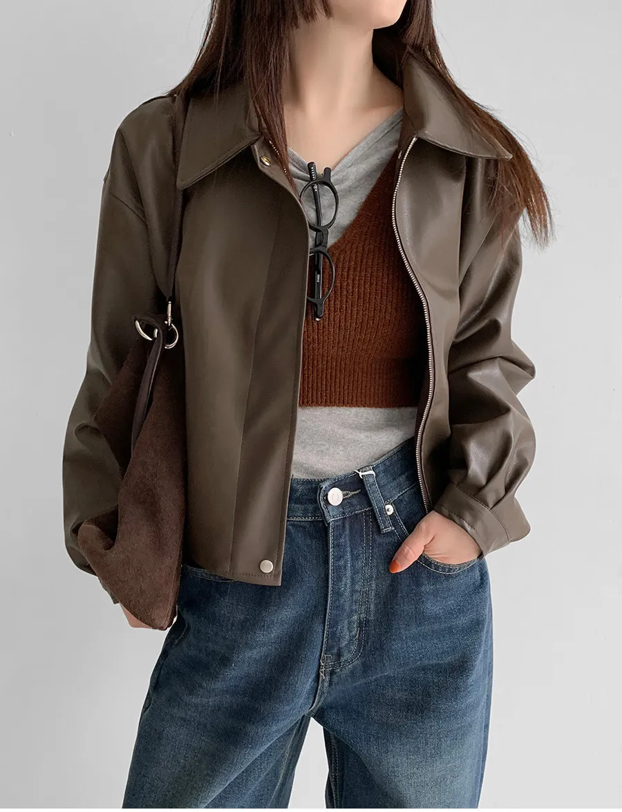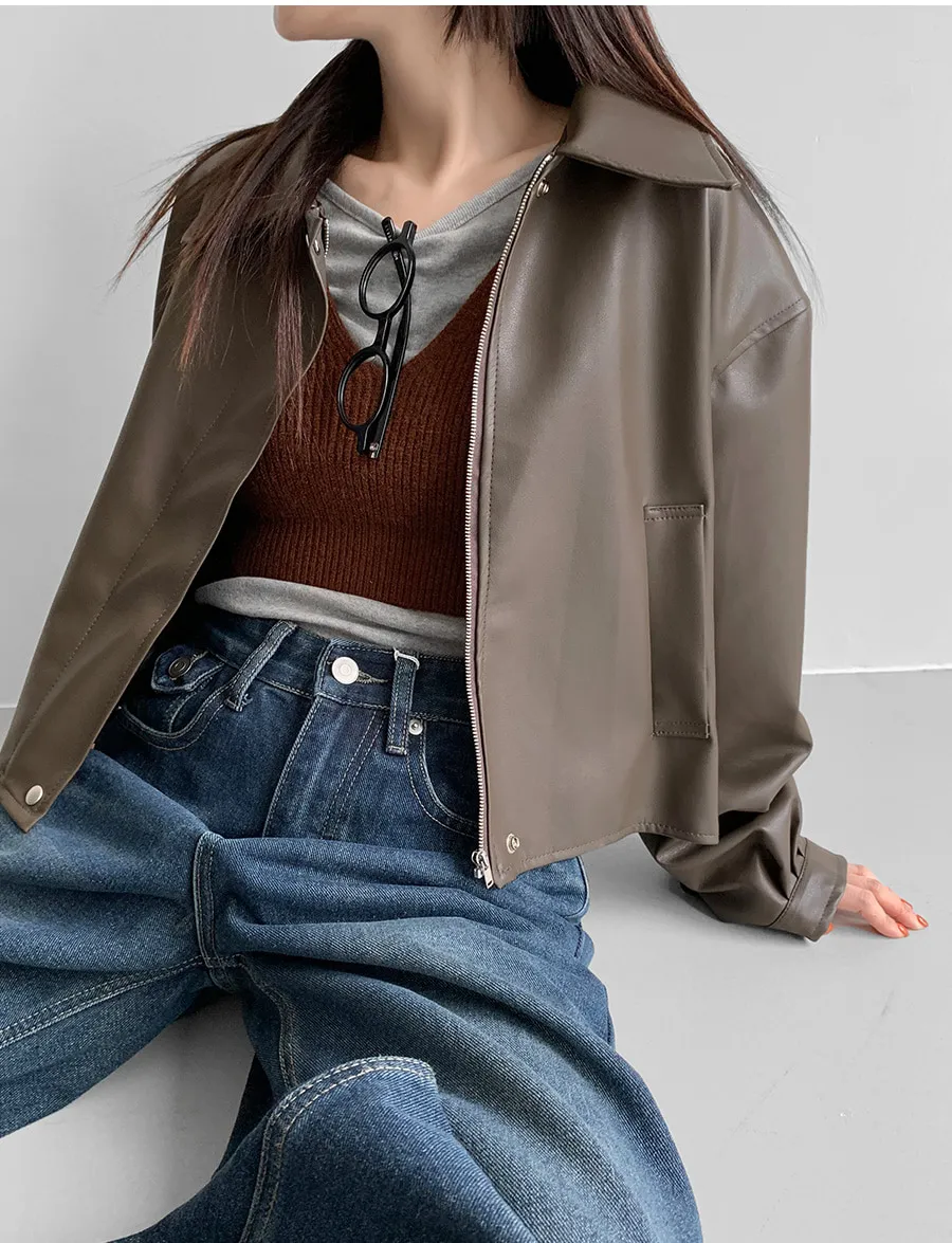 ボタンVネッククロップドスリム長袖カーディガン