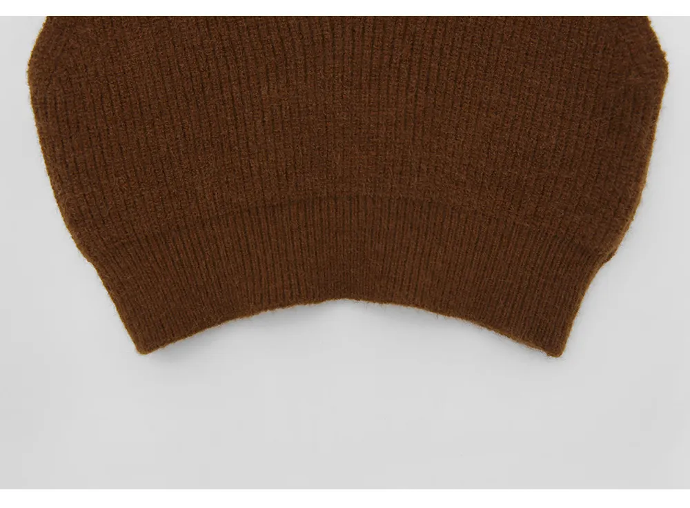 リブボタンラウンドネックカラーニット
