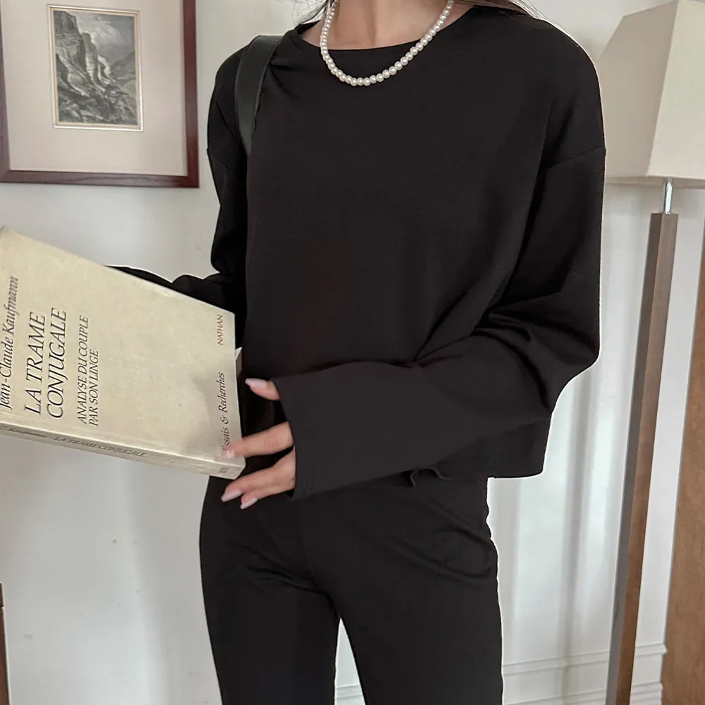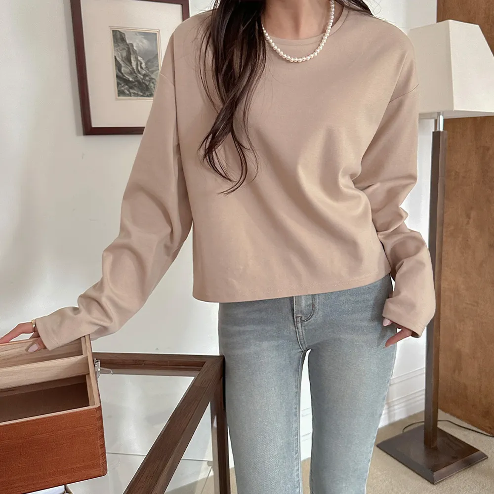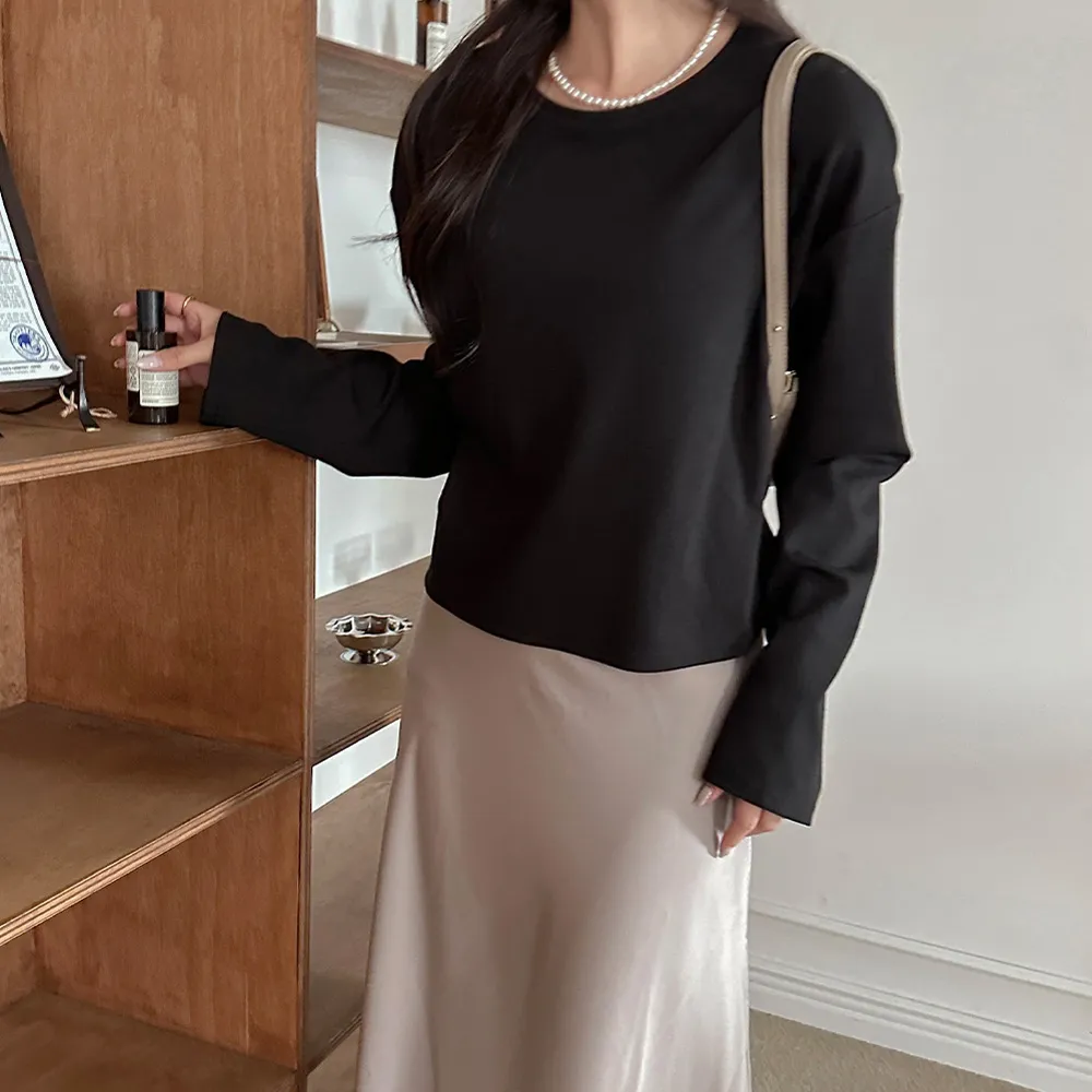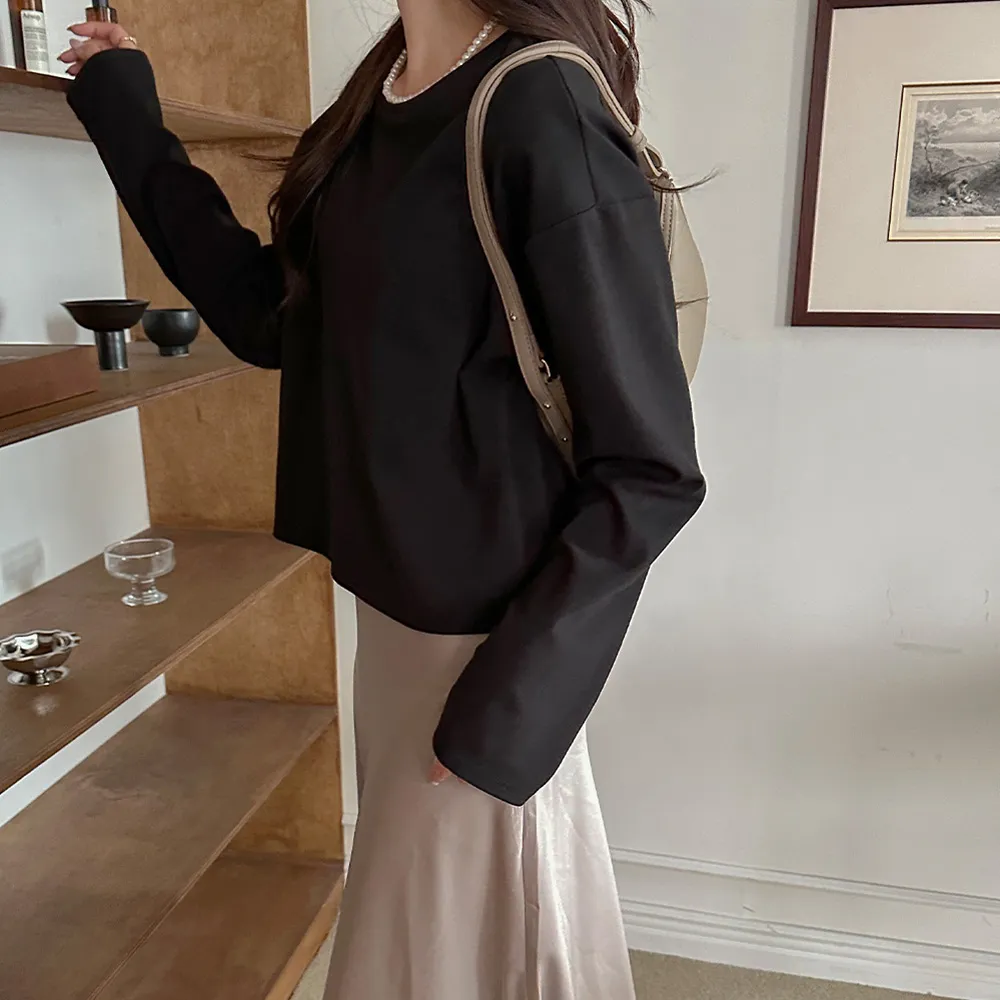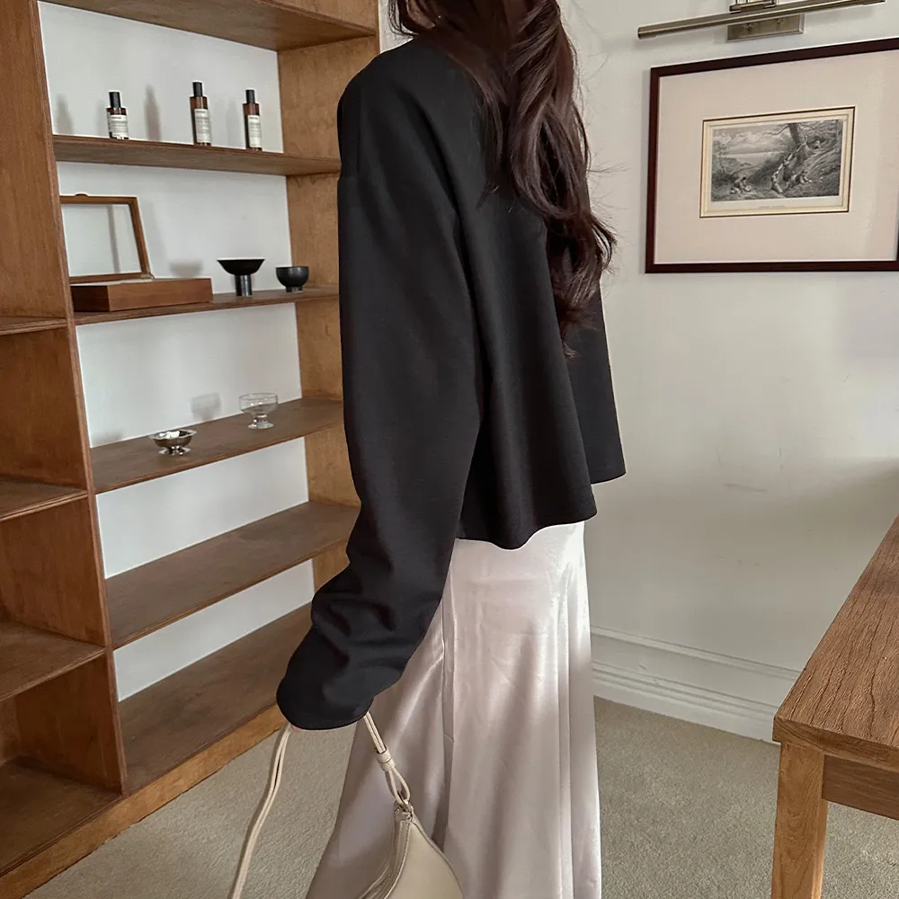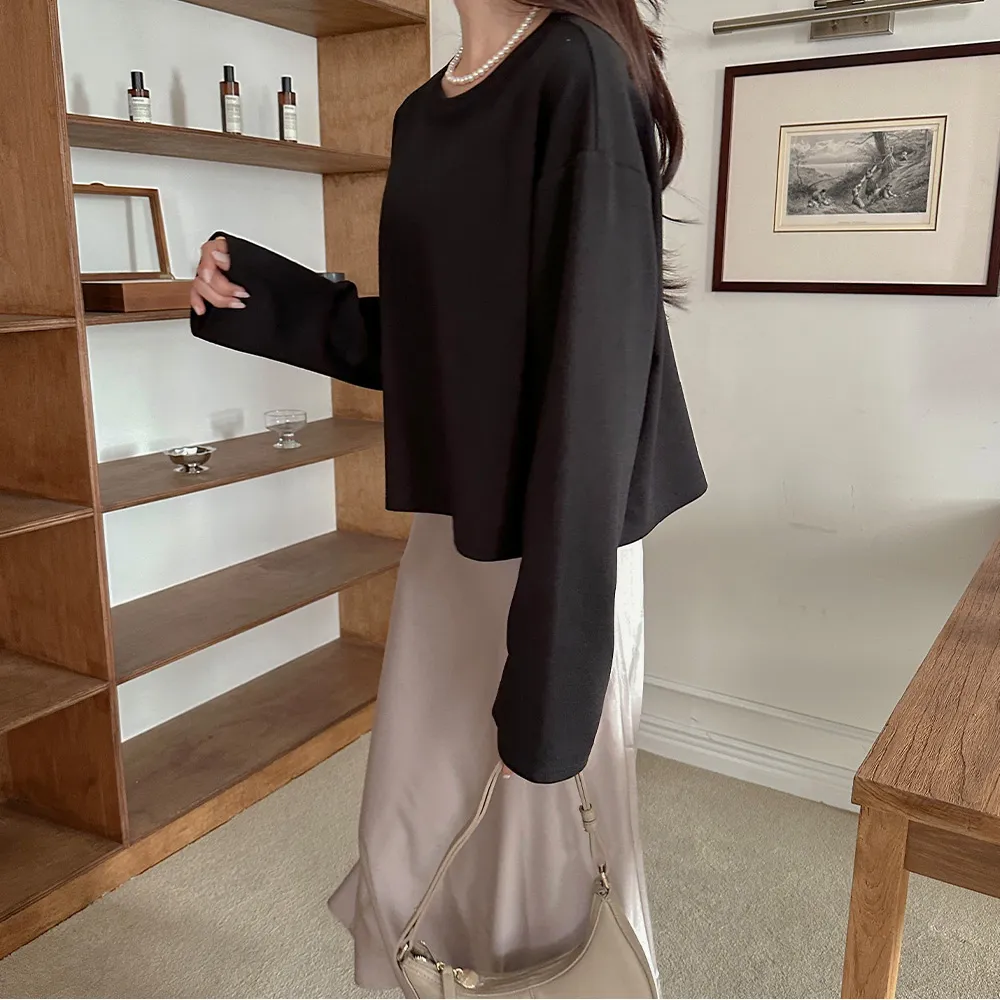 完全なクロップドスタイルではなく、クロップ丈が気になる方でもハイウエストパンツと合わせれば誰でも気軽に着られますよ~ ボトムにインして着るより、そのままストンと着るのが一番可愛いデザインです。