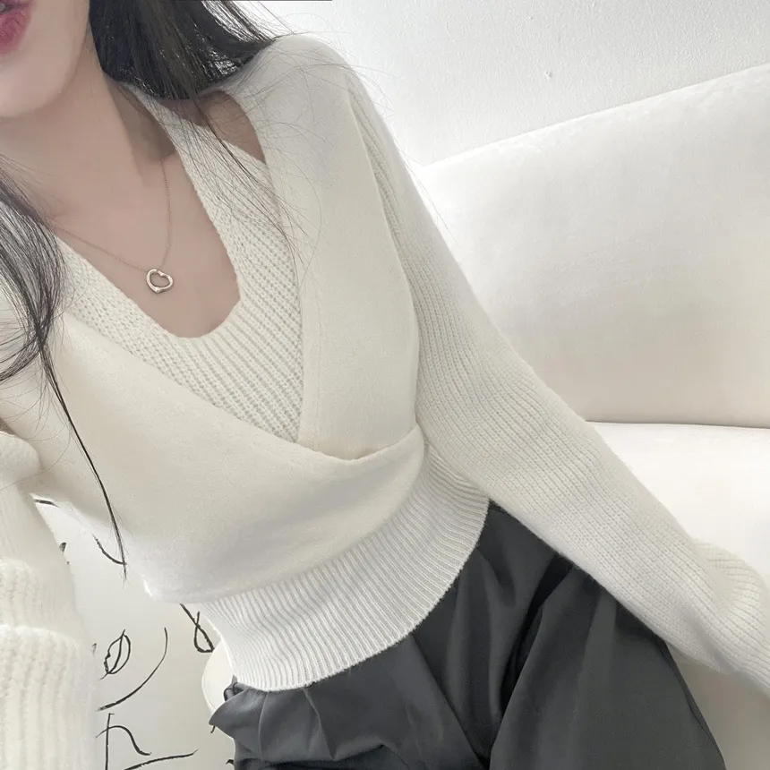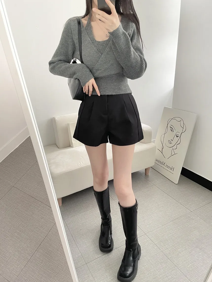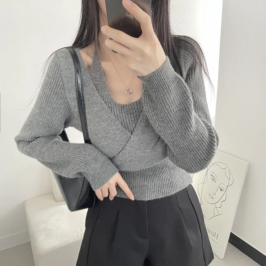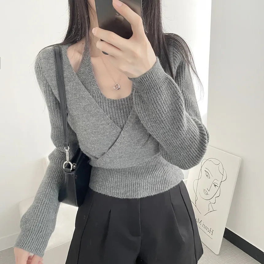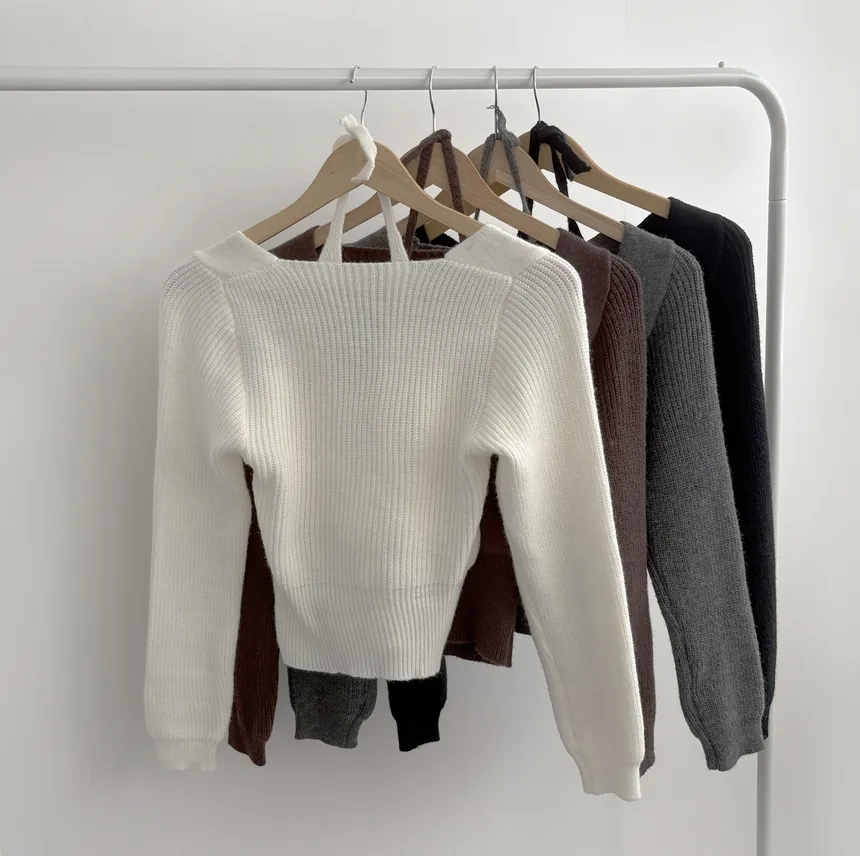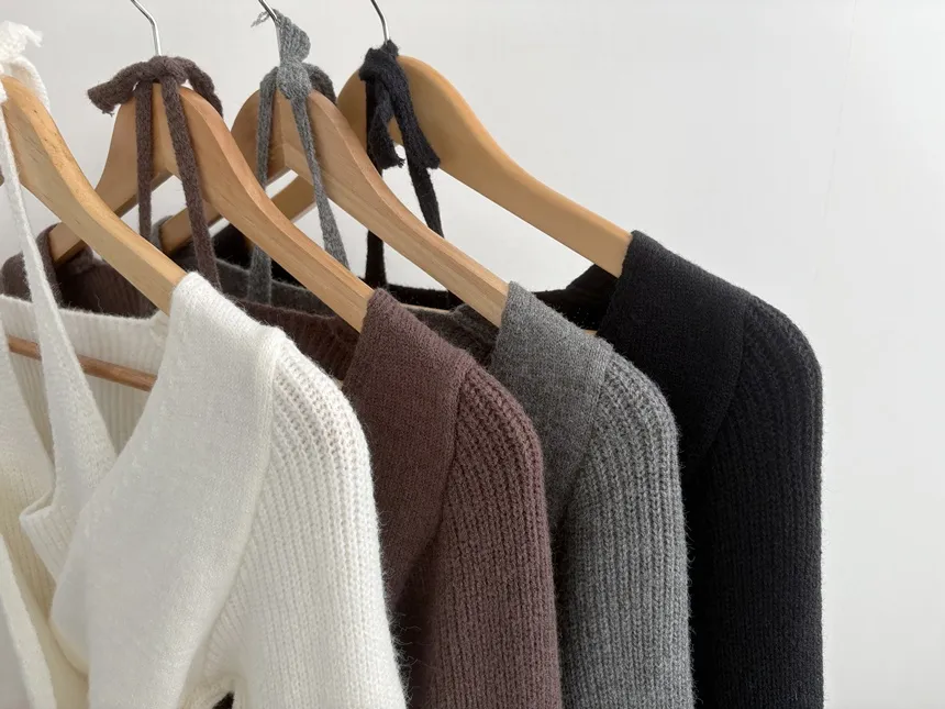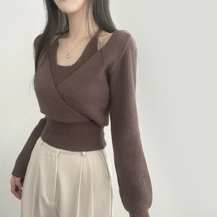 リブホルターネッククロップドレイヤード風ラップ調ニット・S1937755