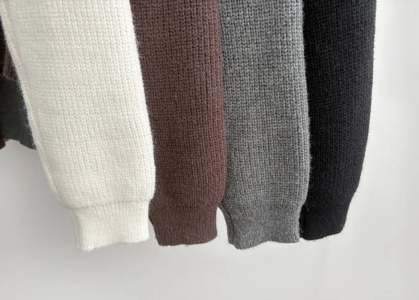 リブボタンラウンドネックカラーニット